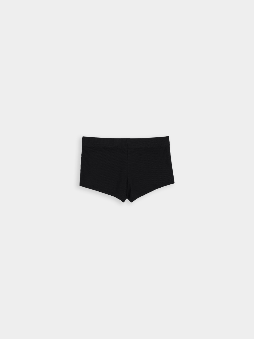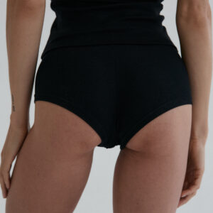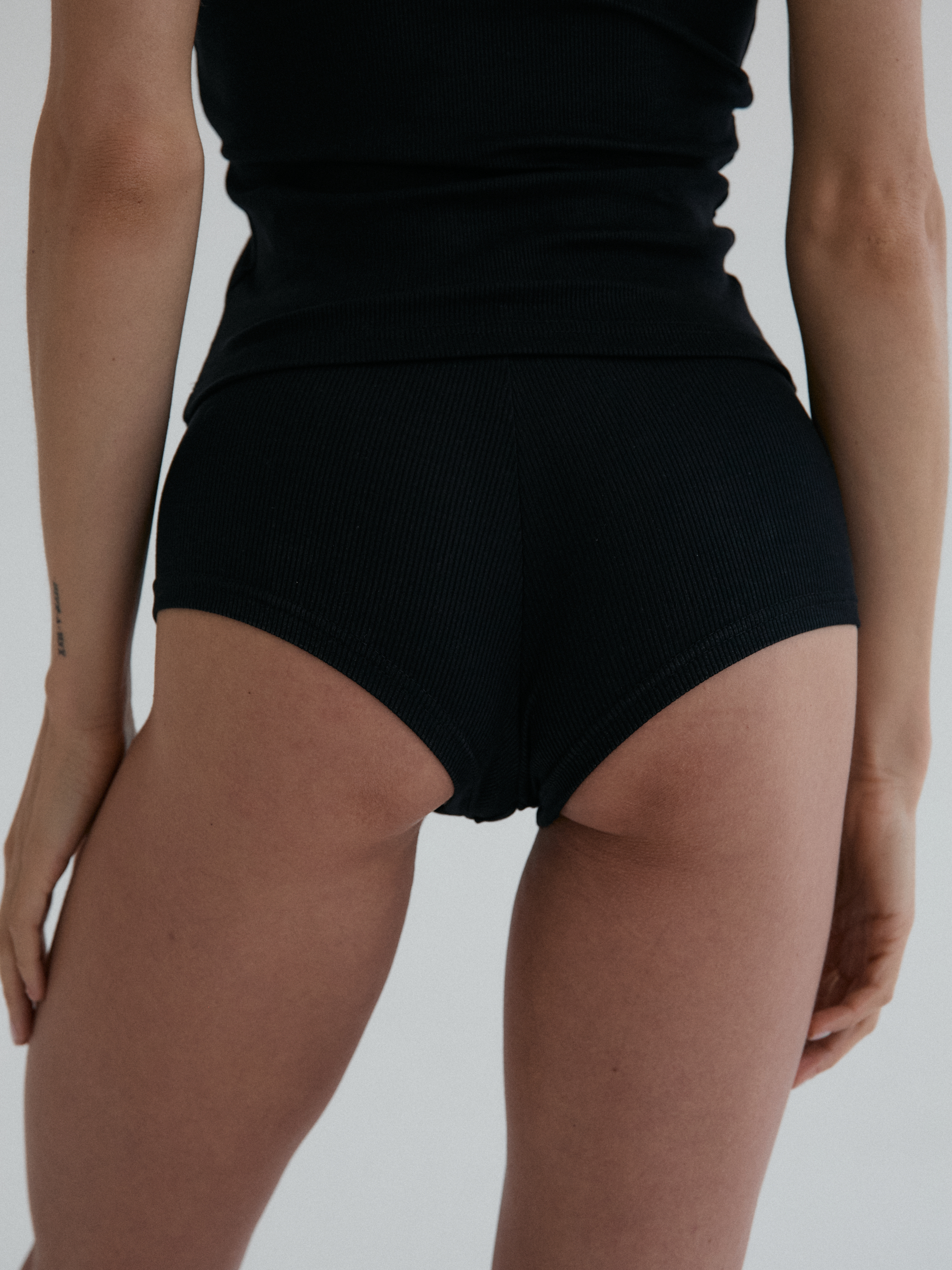 Mocno wycięte szorty z obniżonym stanem. Noś je jako bieliznę, do spania lub jako część wygodnego zestawu po domu. Świetnie komponują się z topem na ramiączkach z tej samej serii JORDE.