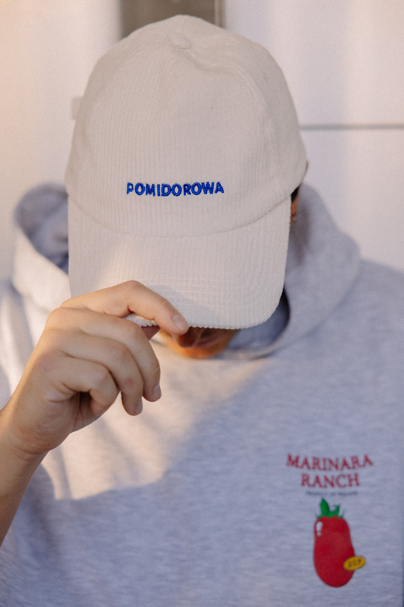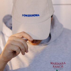 Klasyczna czapka z daszkiem, która łączy streetwear’owy styl z funkcjonalnością. Wykonana z wysokogatunkowego bawełnianego sztruksu, zapewnia komfort noszenia i trwałość. Całości dopełnia haft w kolorze kobaltowym z napisem “POMIDOROWA”. Model posiada regulowane zapięcie z tyłu, które pozwala na indywidualne dopasowanie czapki do obwodu głowy. Z tyłu widnieje żakardowa metka GIEWONT. Idealna propozycja na co dzień, zarówno do miejskich stylizacji, jak i aktywnego wypoczynku.