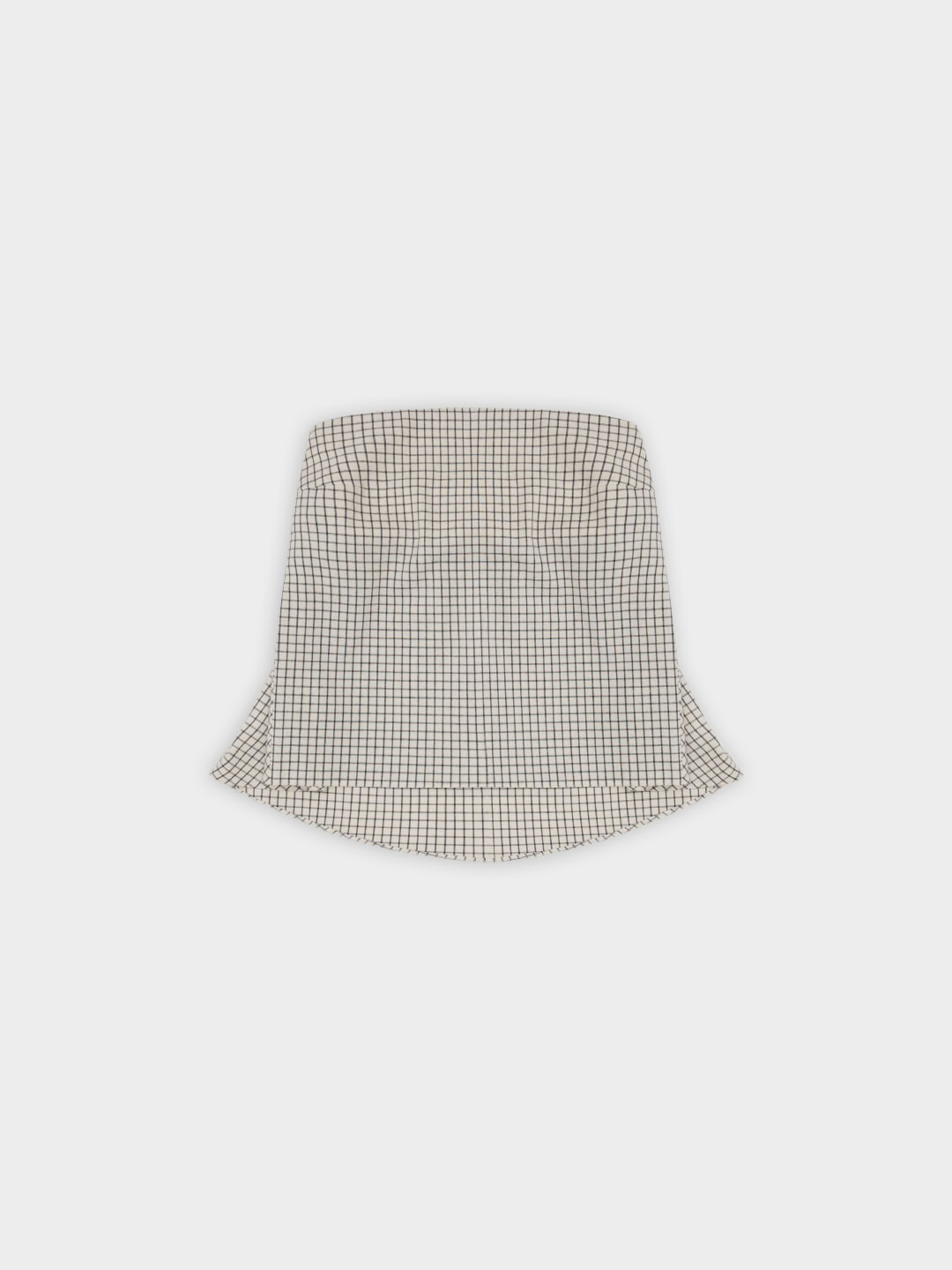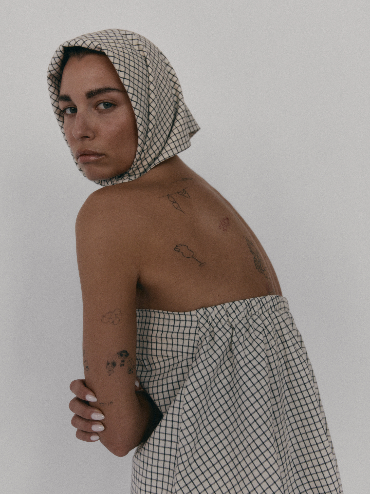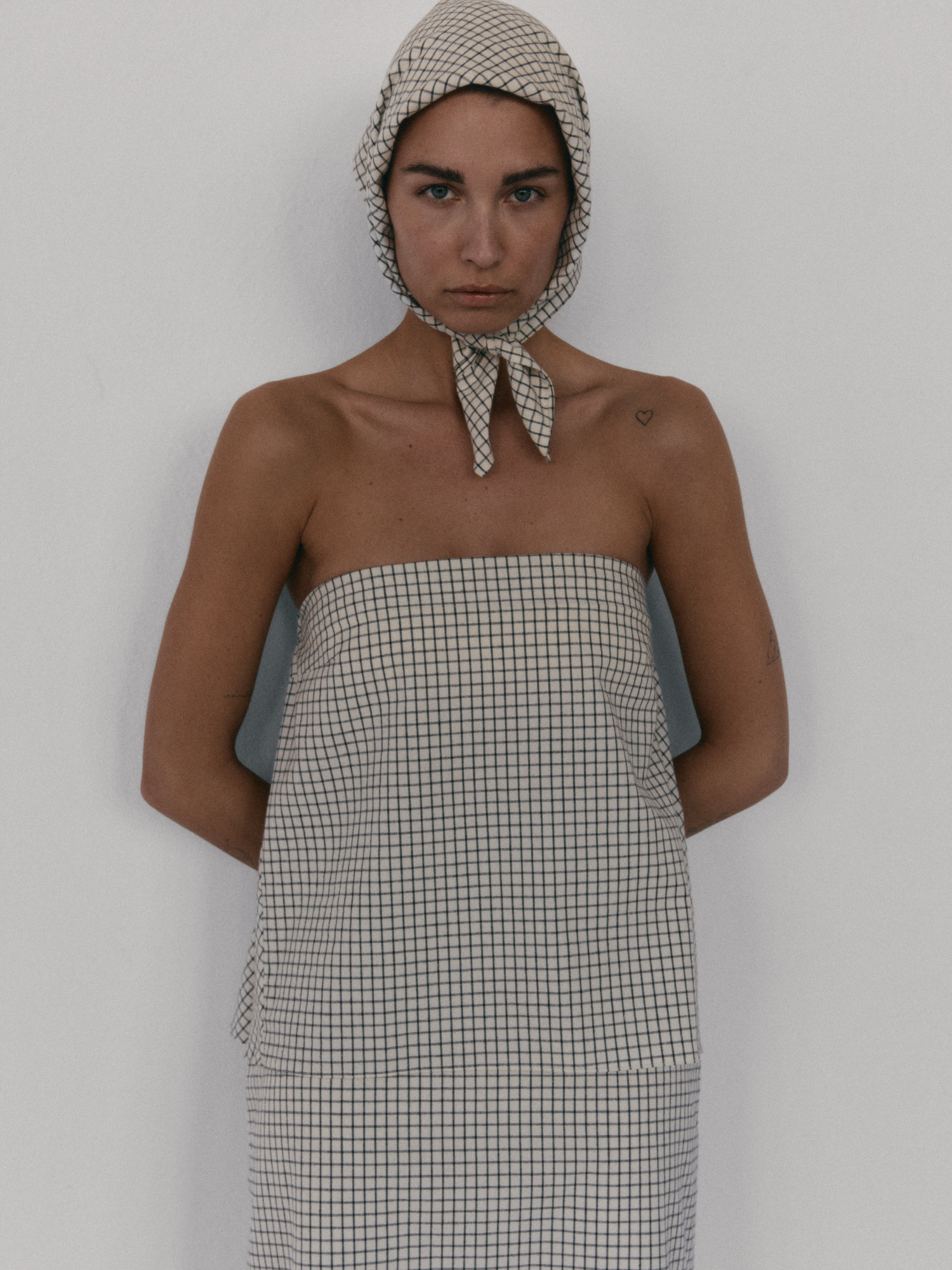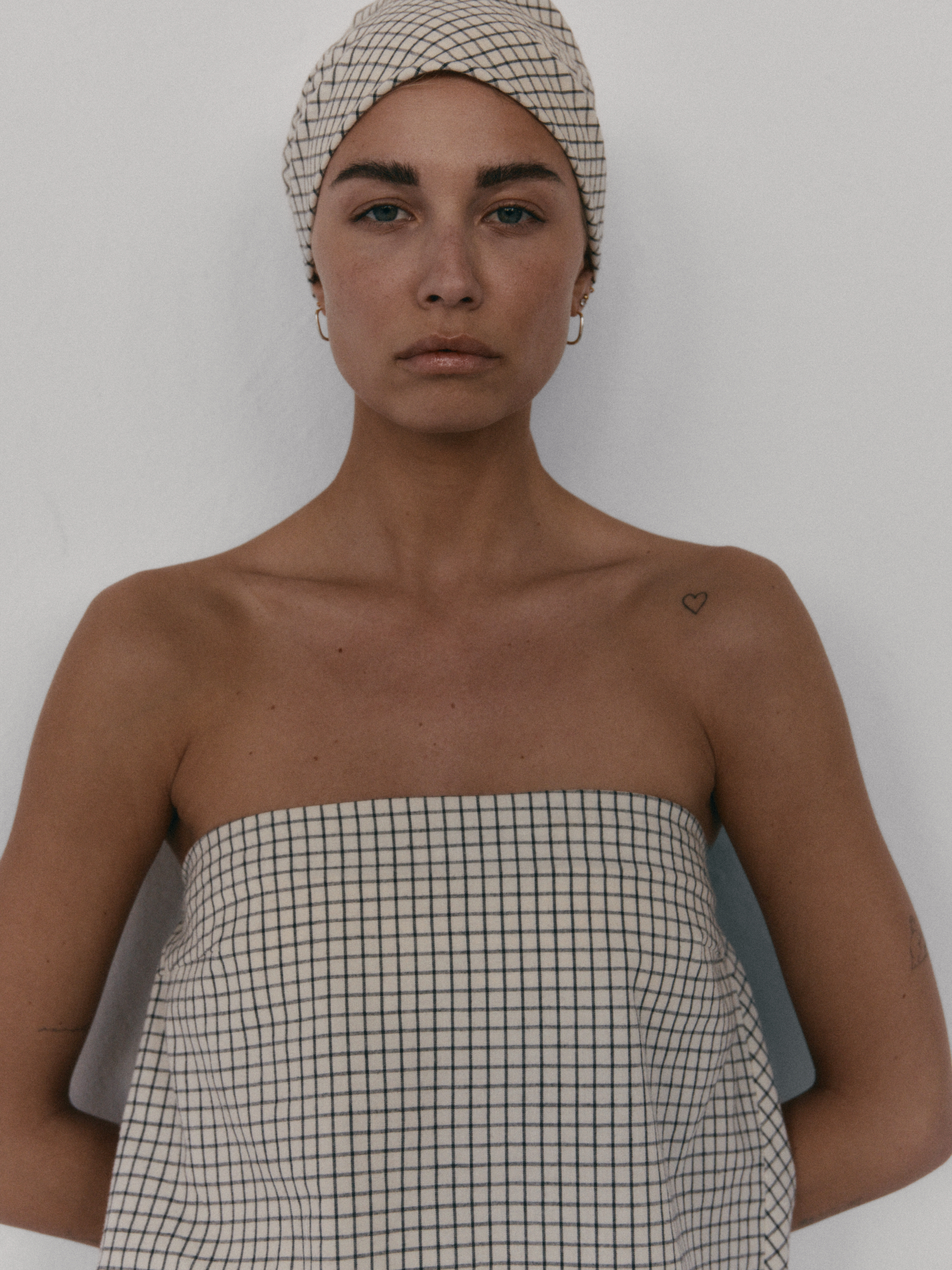 Top bez ramiączek o luźnym kroju. Wbudowany w środku stanik oraz guma wszyta z tyłu sprawiają, że top nie opada zapewniając komfort noszenia. Idealnie sprawdzi się w zestawie z spódnicą i apaszką MIE.