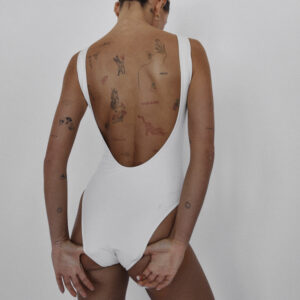 Jednoczęściowy kostium kąpielowy z bardzo dużym wycięciami na biodrach oraz plecach. Model podkreśla linię pleców i optycznie wydłuża nogi.