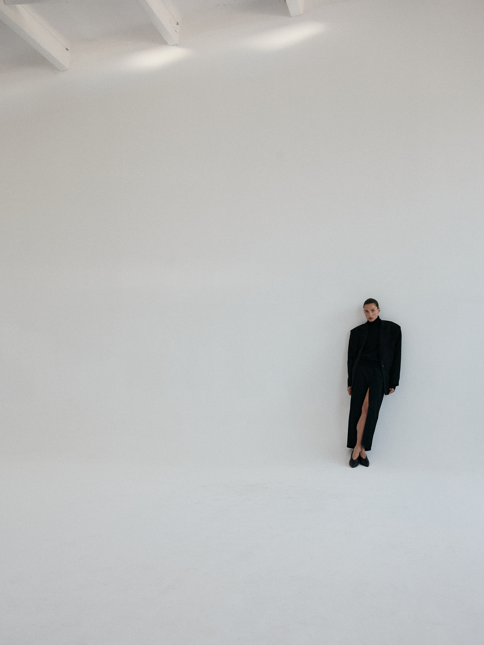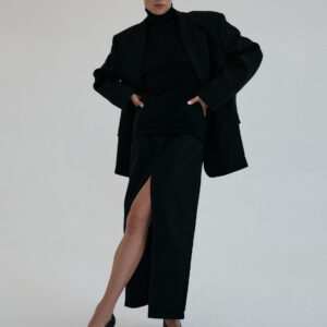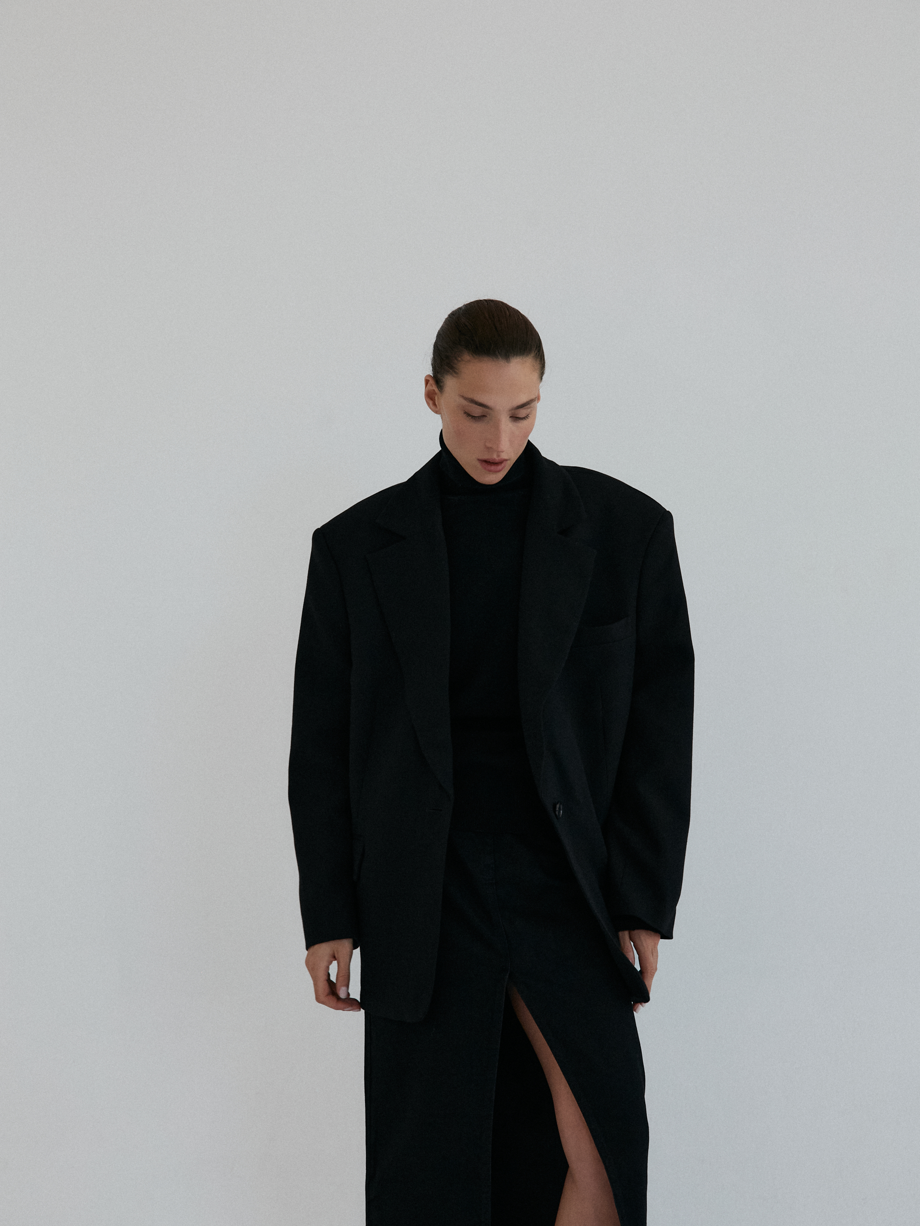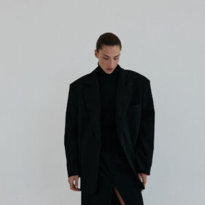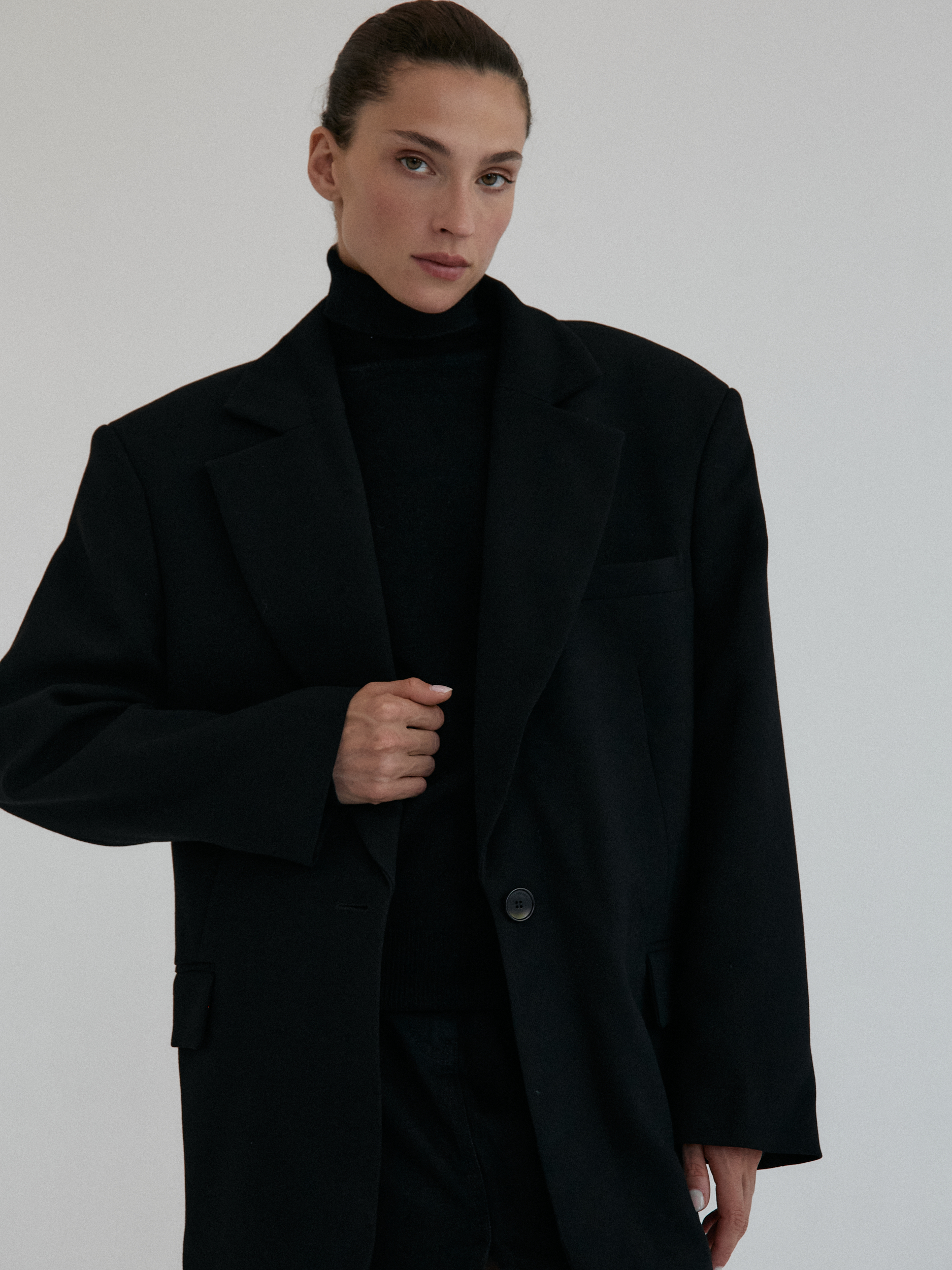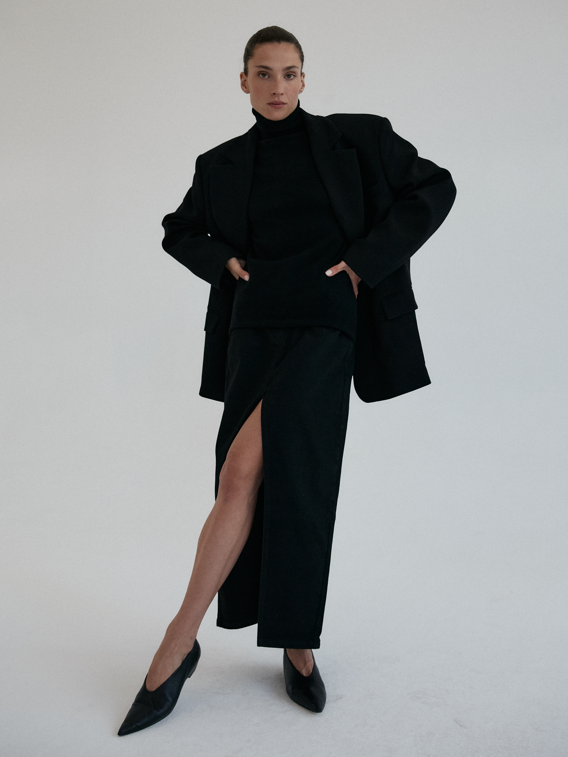 Minimalistyczny sweter z golfem. Klasyczny i ponadczasowy krój doskonale sprawdzi się zarówno jako warstwa wierzchnia na sukienkę, jak i z eleganckimi spodniami, czy jeansami. Ściągacze przy mankietach, w dekolcie i u dołu swetra dodają całości subtelnej struktury i wykończenia. Wełna i kaszmir zapewniają ciepło bez zbędnej objętości. Wysoki, miękki golf  dodaje szyku i dopełnia całości.