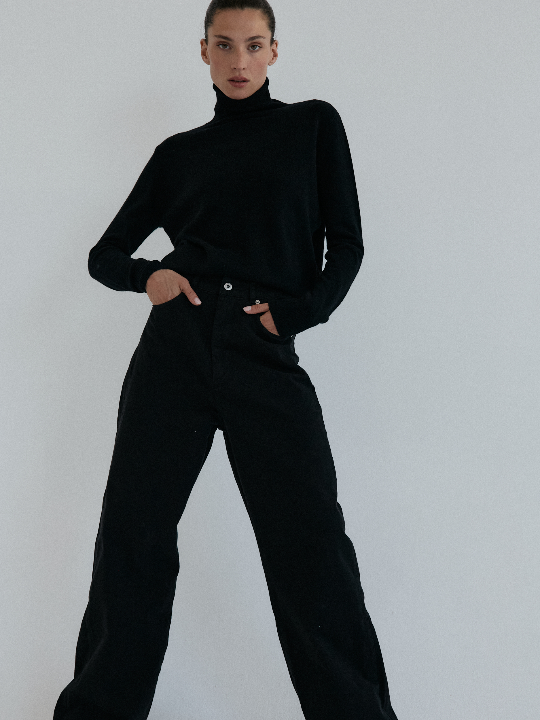 wełniany sweter z golfem z domieszką kaszmiru RARE black