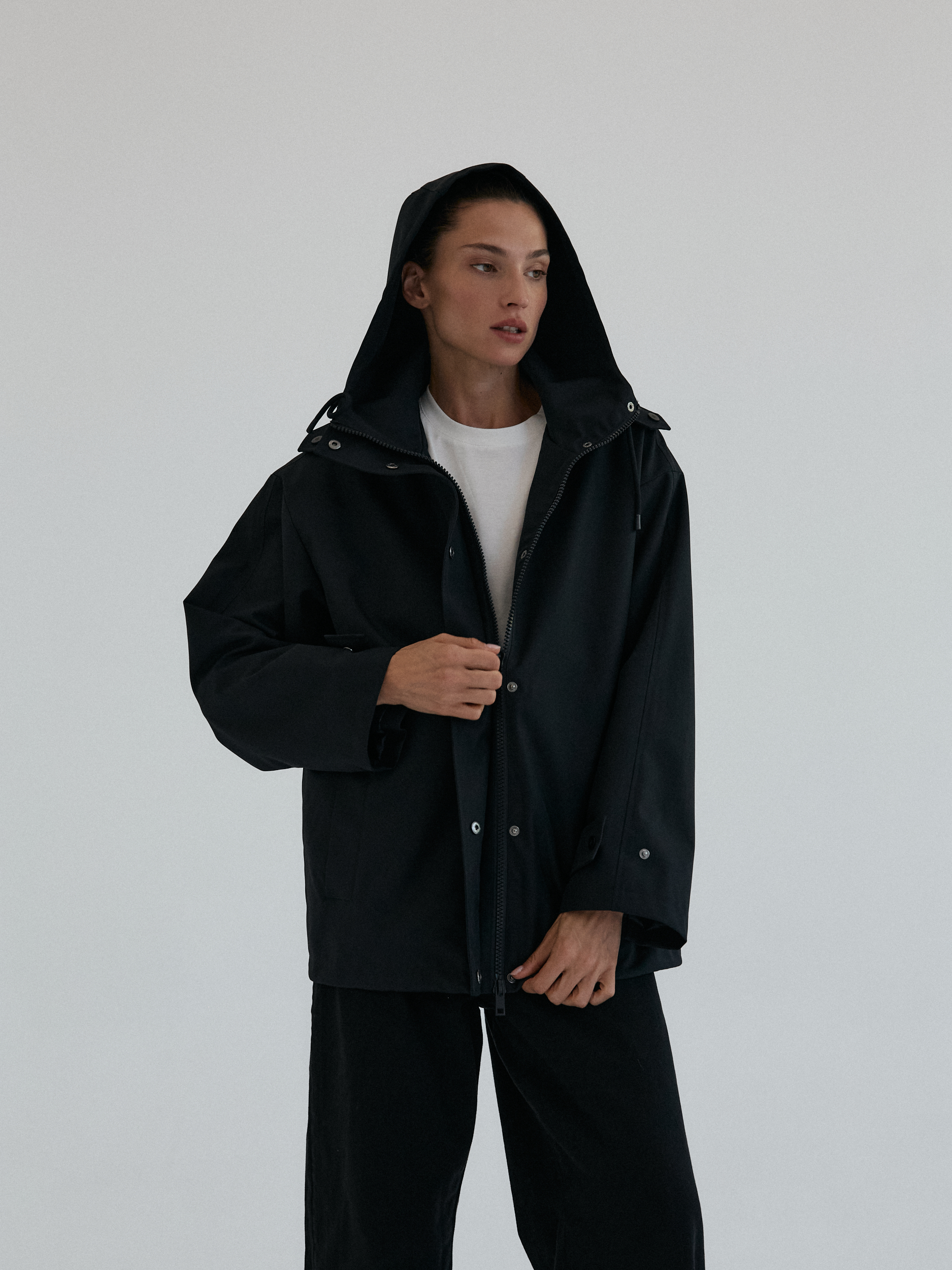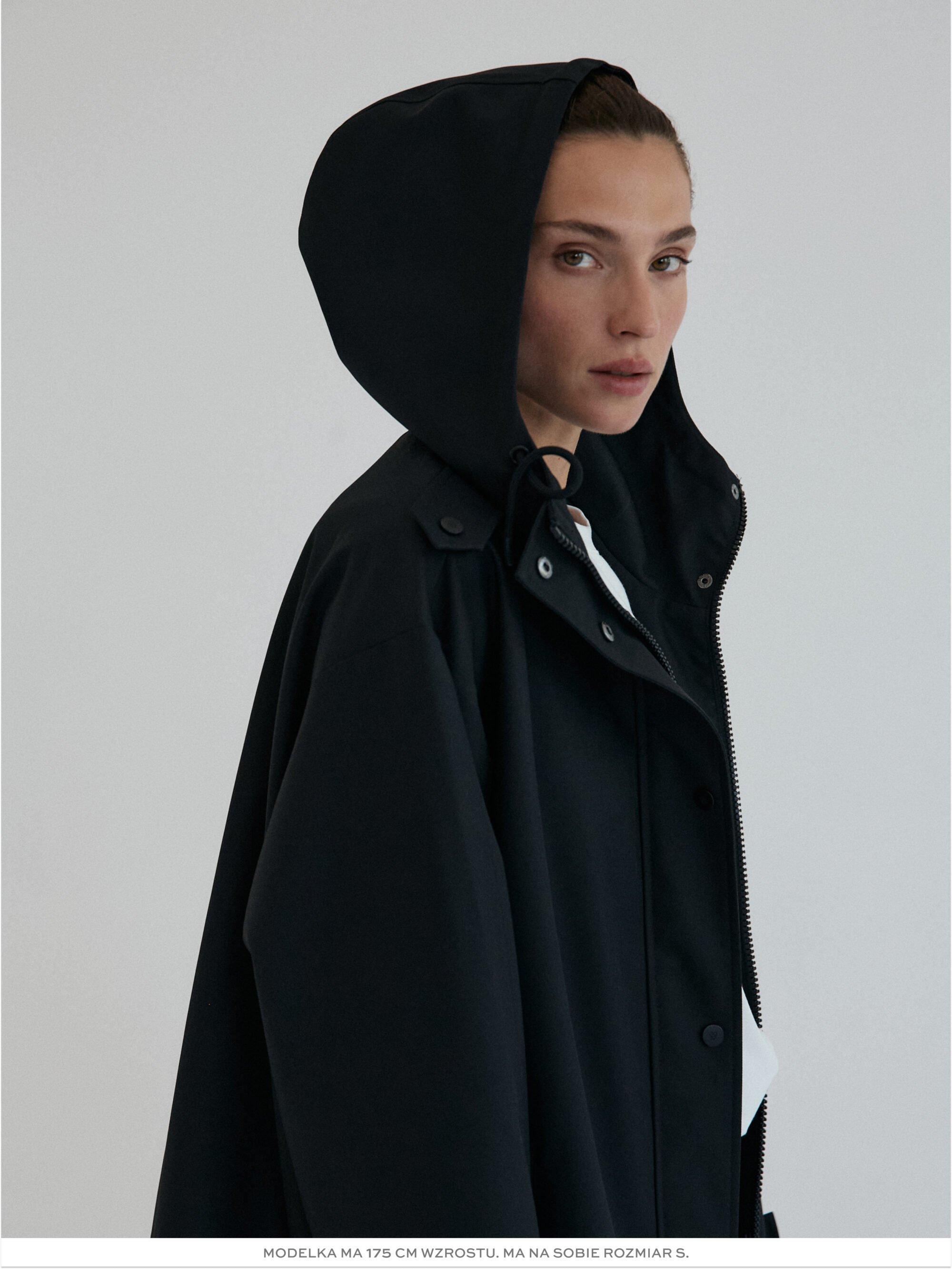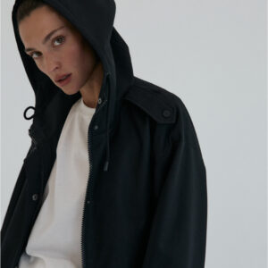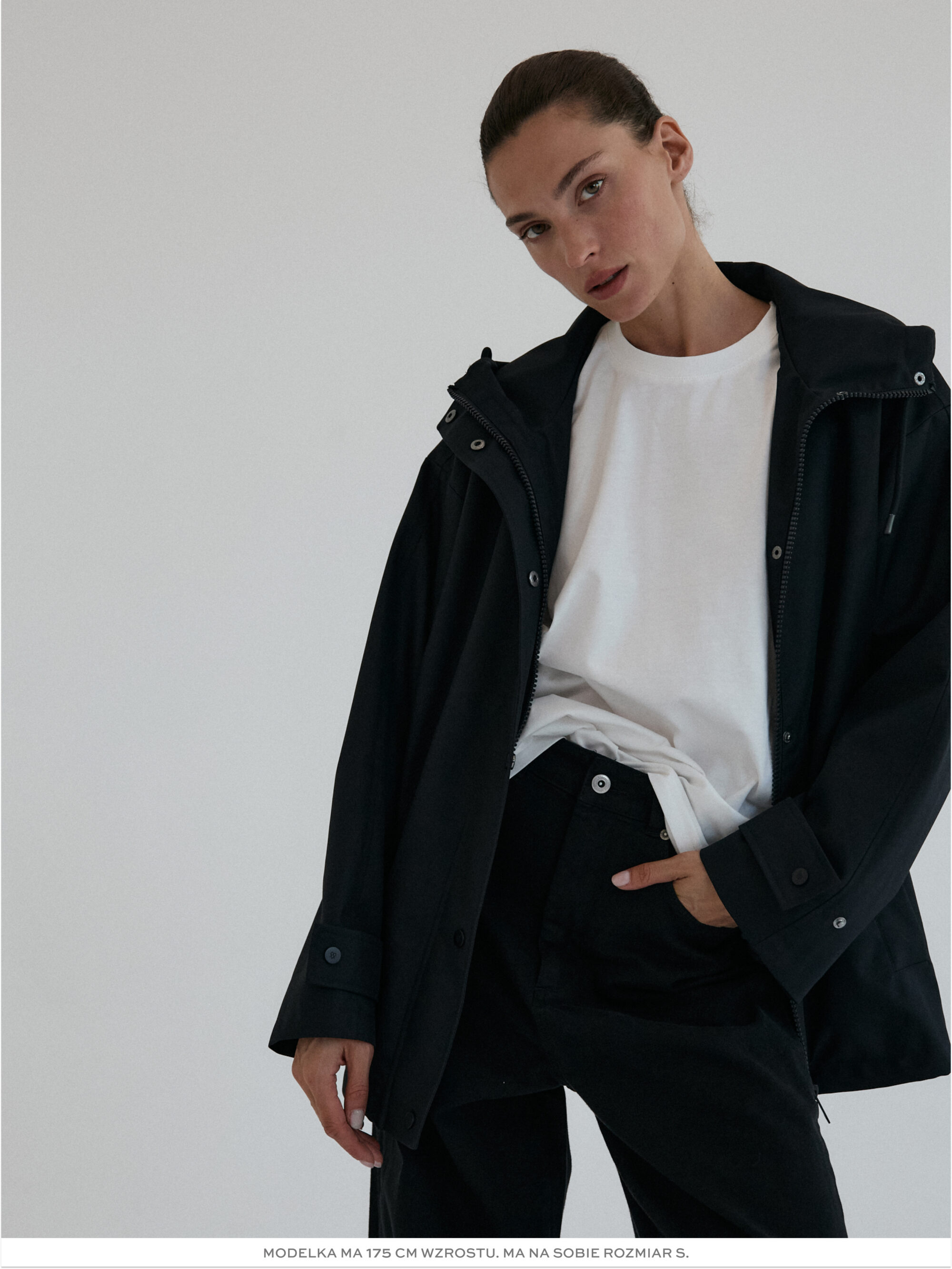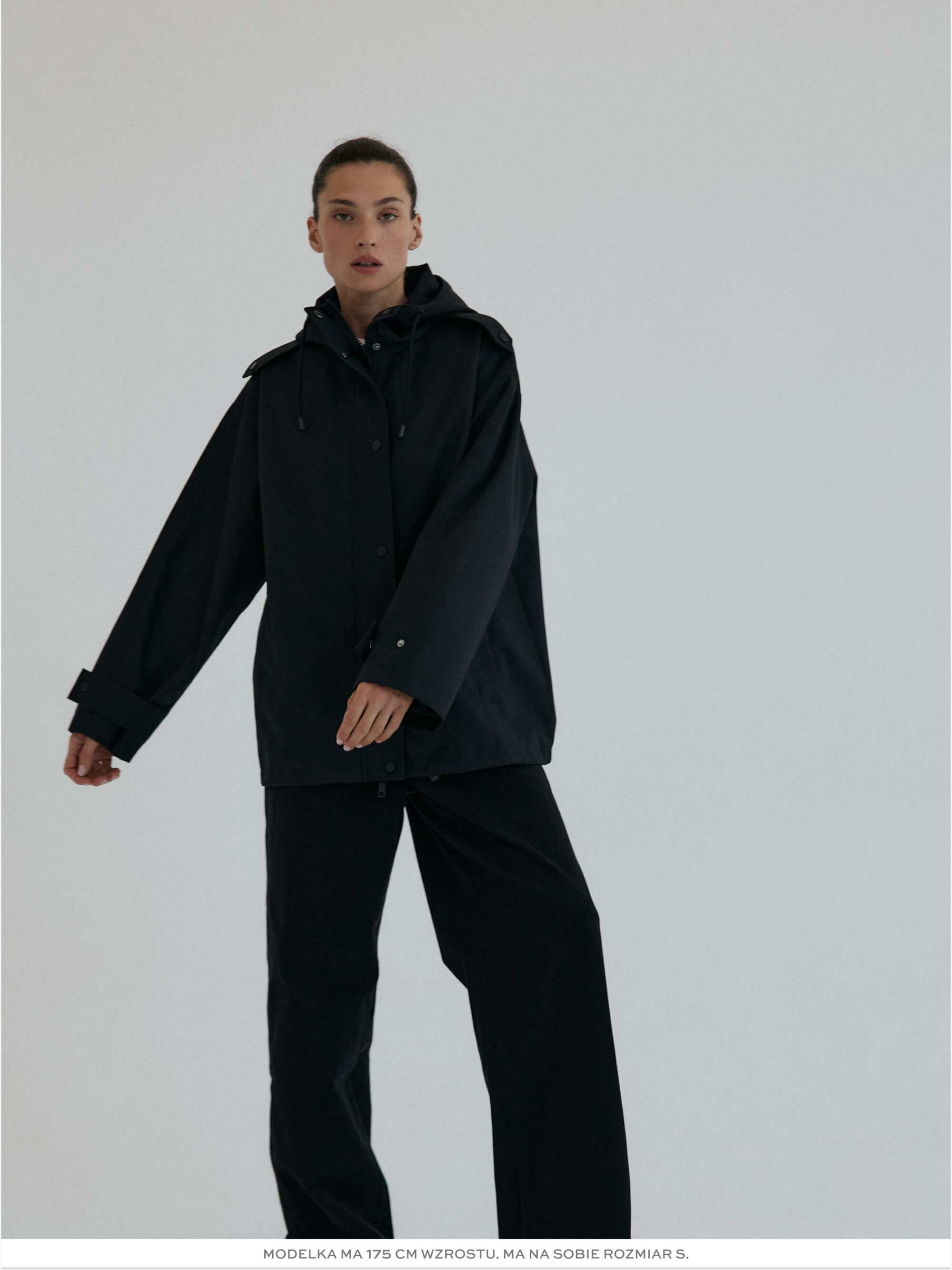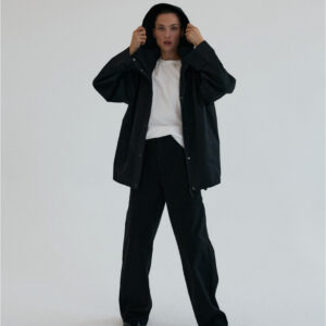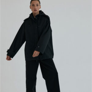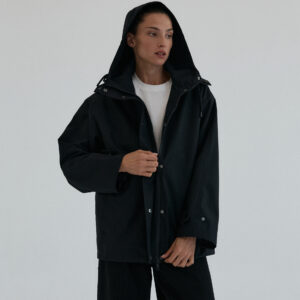 Funkcjonalna i minimalistyczna kurtka typu parka. Wykonana z wodoodpornego materiału, skutecznie chroni przed deszczem i wiatrem, nie rezygnując przy tym ze stylu. Jej luźny, oversize’owy krój zapewnia pełną swobodę ruchów i komfort noszenia, a regulowany kaptur i dół ze ściągaczem pozwalają dopasować fason do sylwetki i warunków atmosferycznych. Ukryte zapięcie na napy, głębokie kieszenie i matowe wykończenie nadają jej nowoczesnego i miejskiego charakteru.