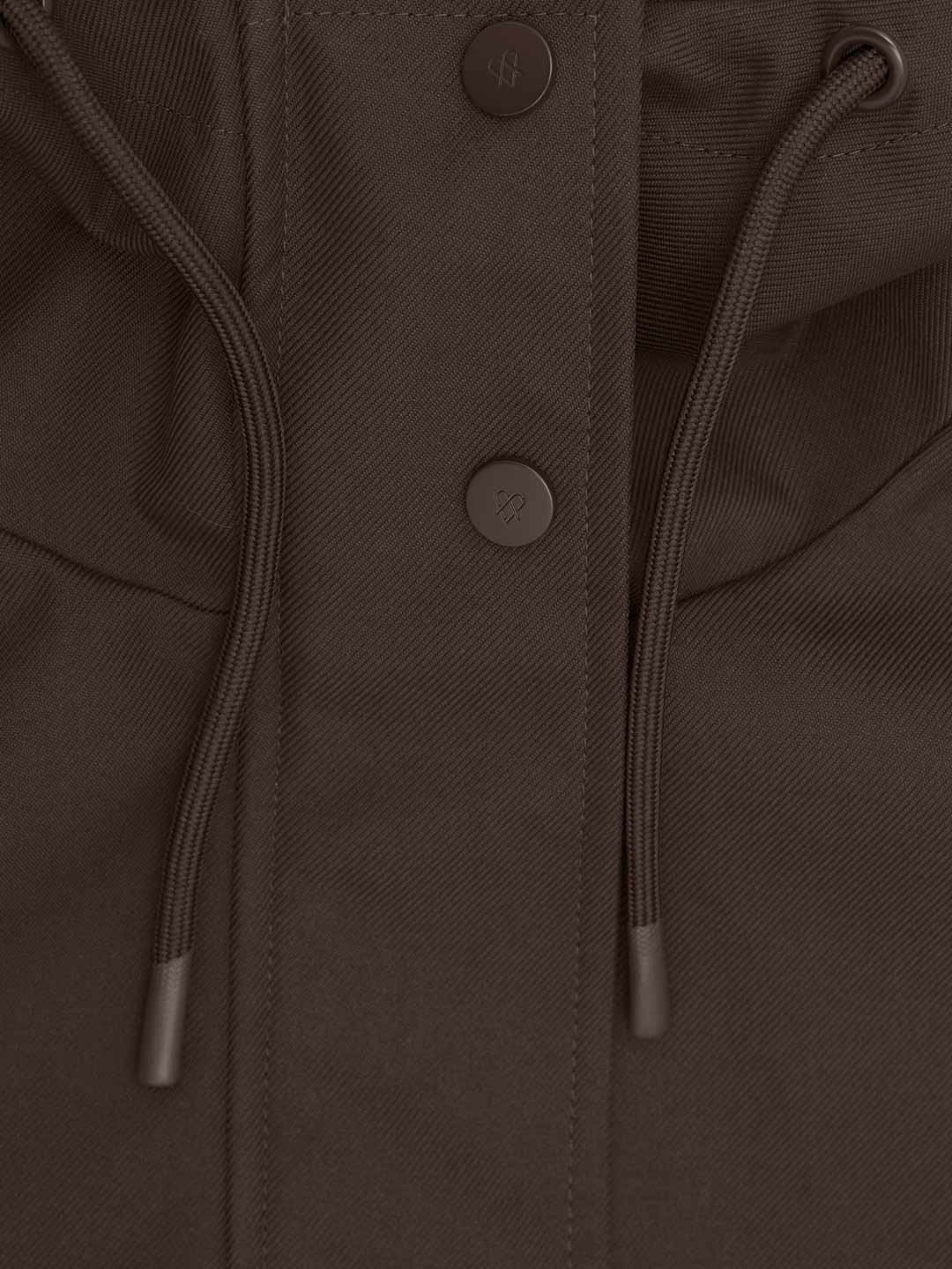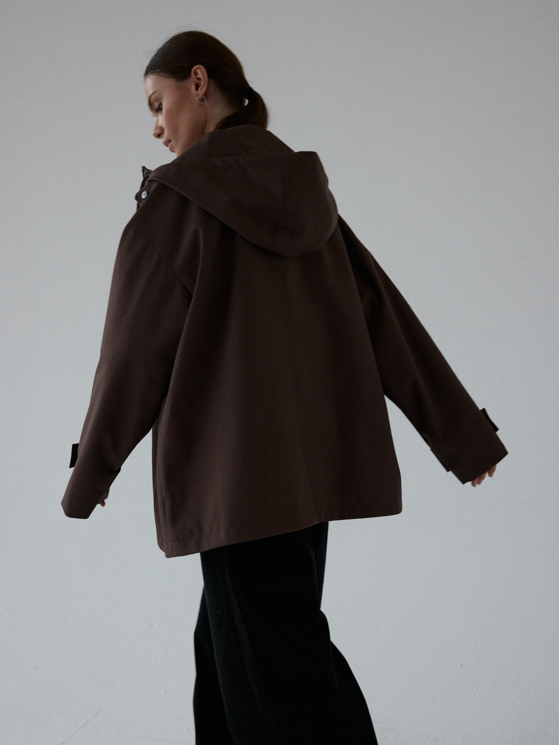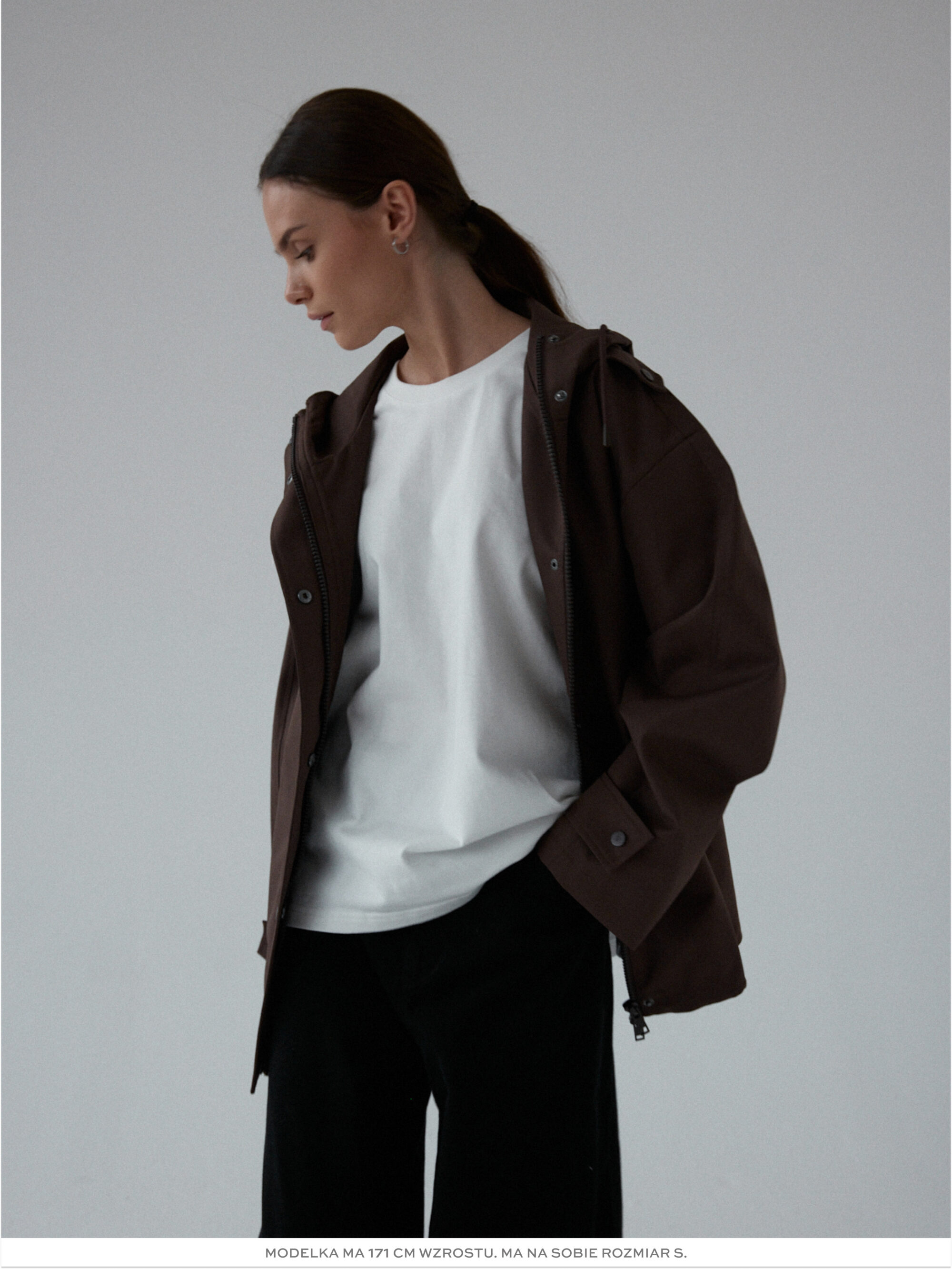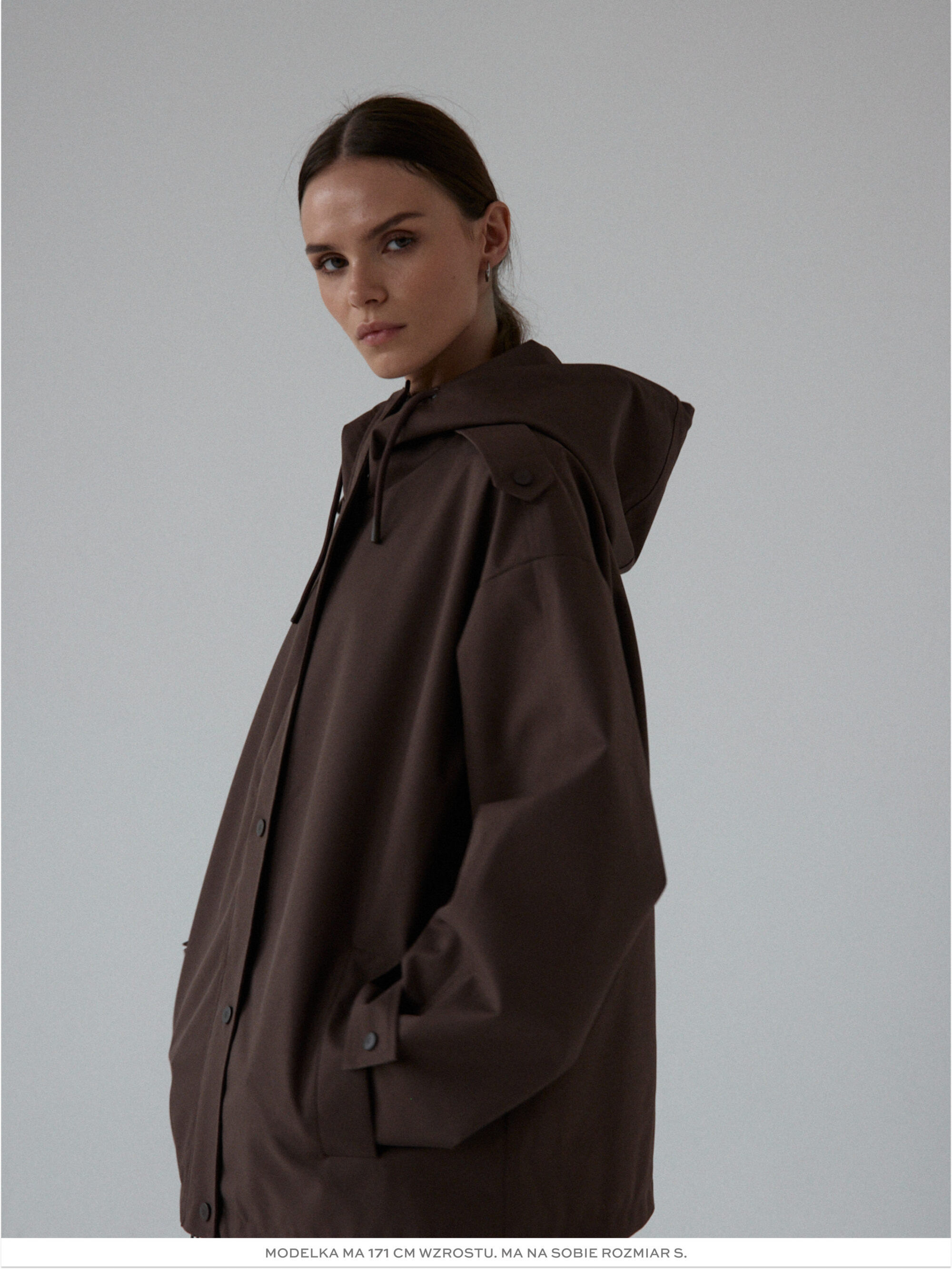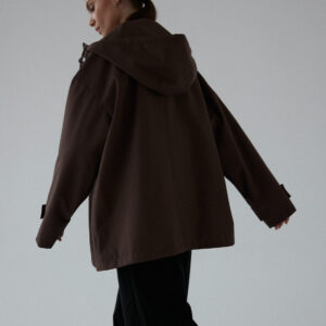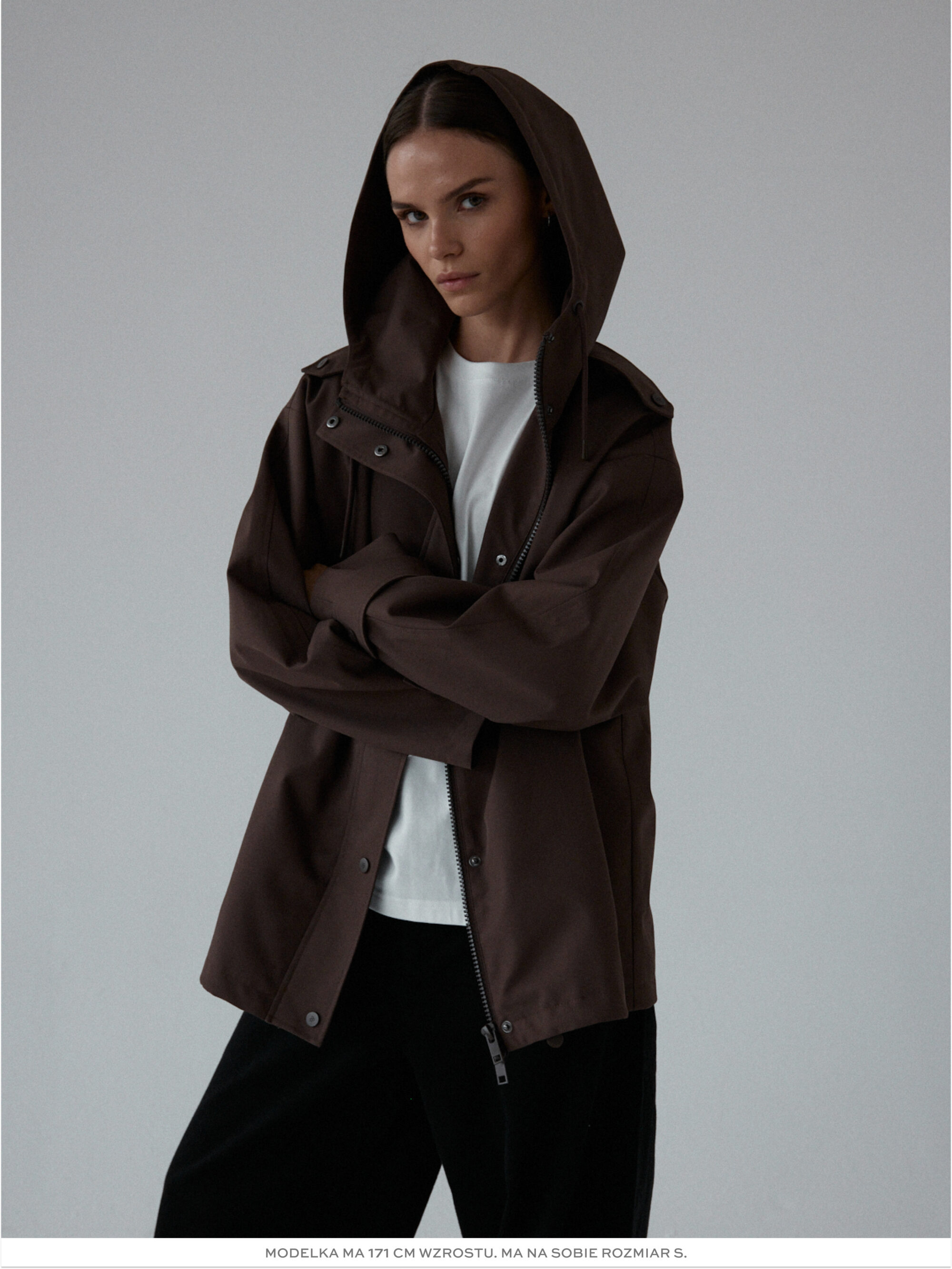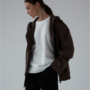 Funkcjonalna i minimalistyczna kurtka typu parka. Wykonana z wodoodpornego materiału, skutecznie chroni przed deszczem i wiatrem, nie rezygnując przy tym ze stylu. Jej luźny, oversize’owy krój zapewnia pełną swobodę ruchów i komfort noszenia, a regulowany kaptur i dół ze ściągaczem pozwalają dopasować fason do sylwetki i warunków atmosferycznych. Ukryte zapięcie na napy, głębokie kieszenie i matowe wykończenie nadają jej nowoczesnego i miejskiego charakteru.