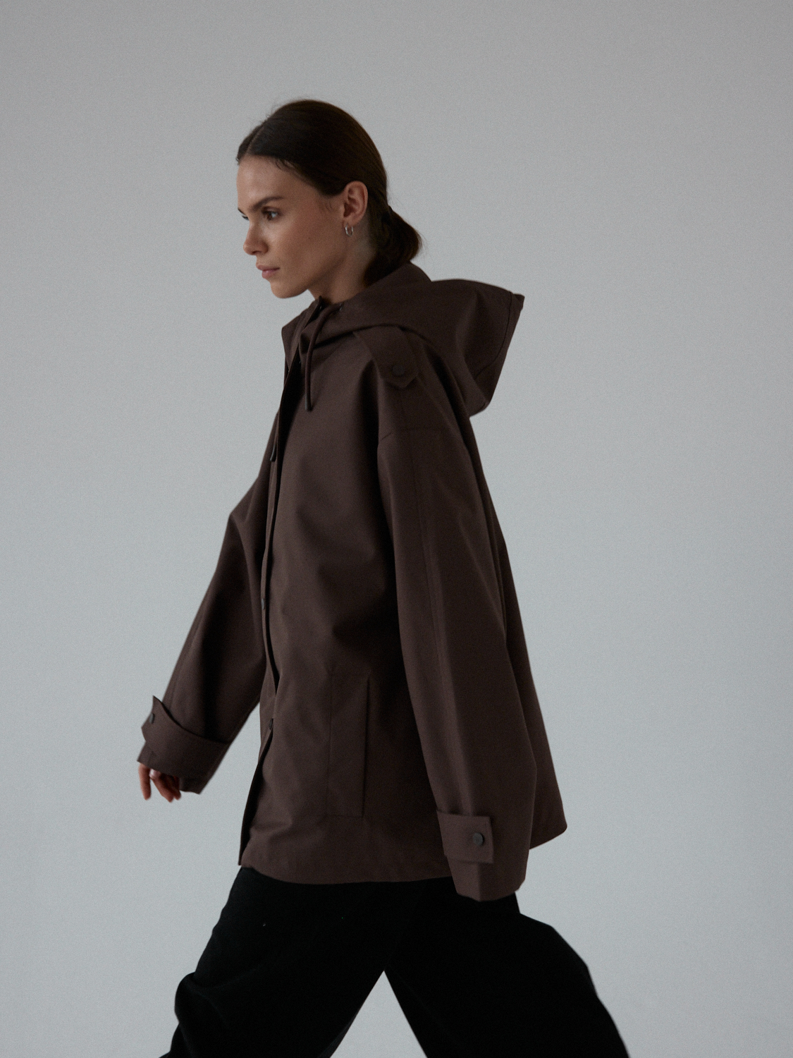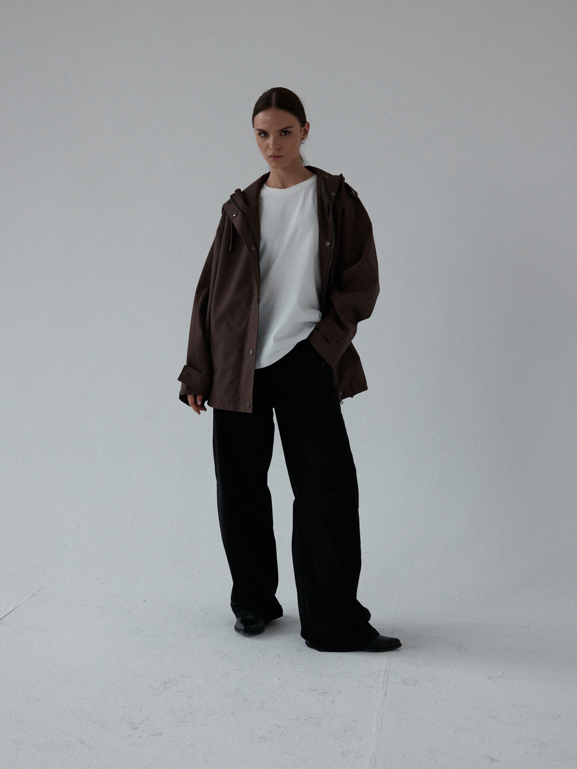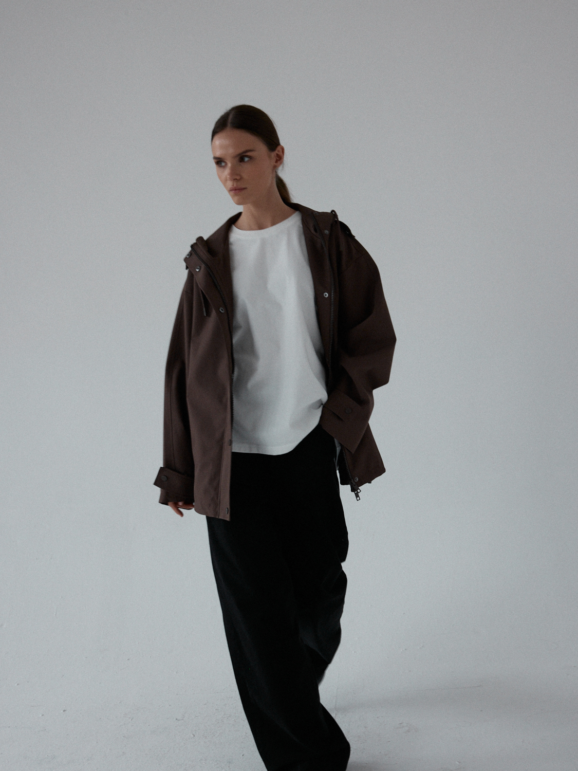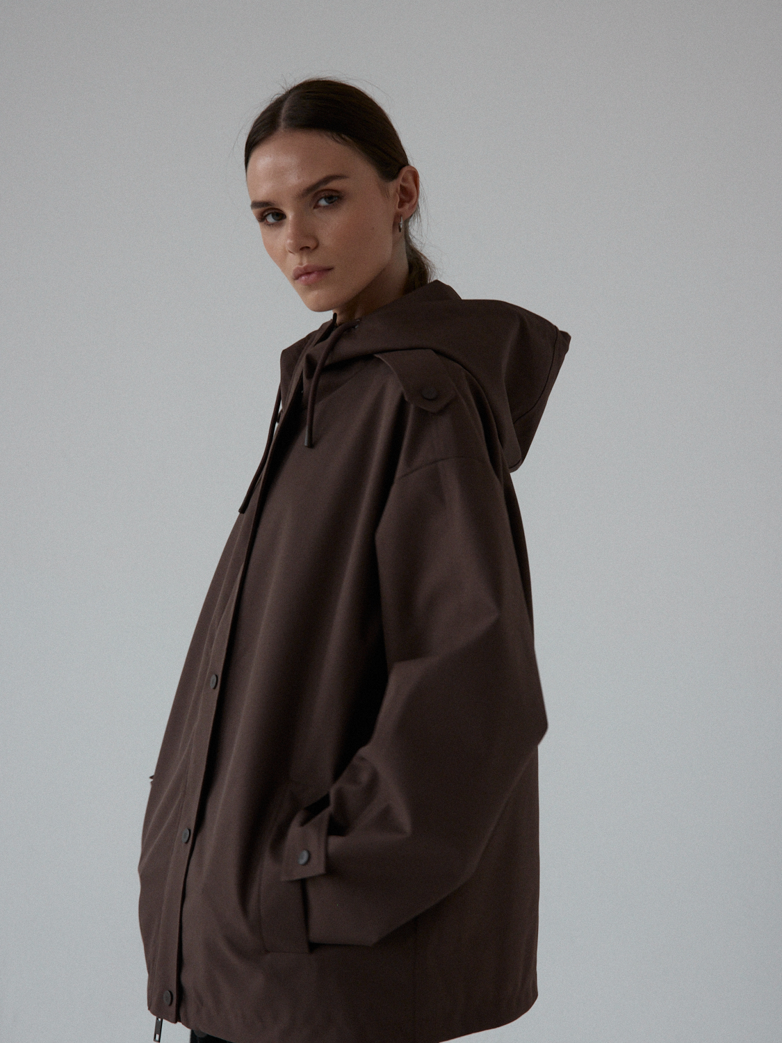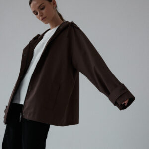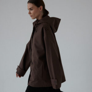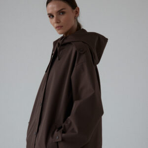 Funkcjonalna i minimalistyczna kurtka typu parka. Wykonana z wodoodpornego materiału, skutecznie chroni przed deszczem i wiatrem, nie rezygnując przy tym ze stylu. Jej luźny, oversize’owy krój zapewnia pełną swobodę ruchów i komfort noszenia, a regulowany kaptur i dół ze ściągaczem pozwalają dopasować fason do sylwetki i warunków atmosferycznych. Ukryte zapięcie na napy, głębokie kieszenie i matowe wykończenie nadają jej nowoczesnego i miejskiego charakteru.
