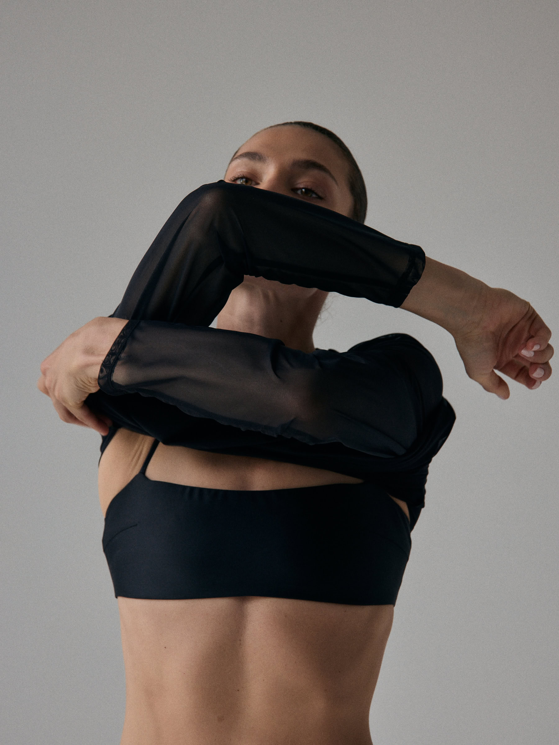 Biustonosz CREO wykonany jest ze specjalnej przędzy, która pochodzi w 100% z recyklingu. Dzięki odpowiedniemu splotowi włókien, jest on także dwa razy bardziej odporny na działanie chloru, kremów i olejków do opalania niż tradycyjny materiał. Zapobiega namnażaniu się bakterii. Niezwykle miękki i przyjemny w dotyku cienki materiał jest przyjazny dla skóry i zapewnia maksymalny komfort noszenia. Nie kulkuje się.