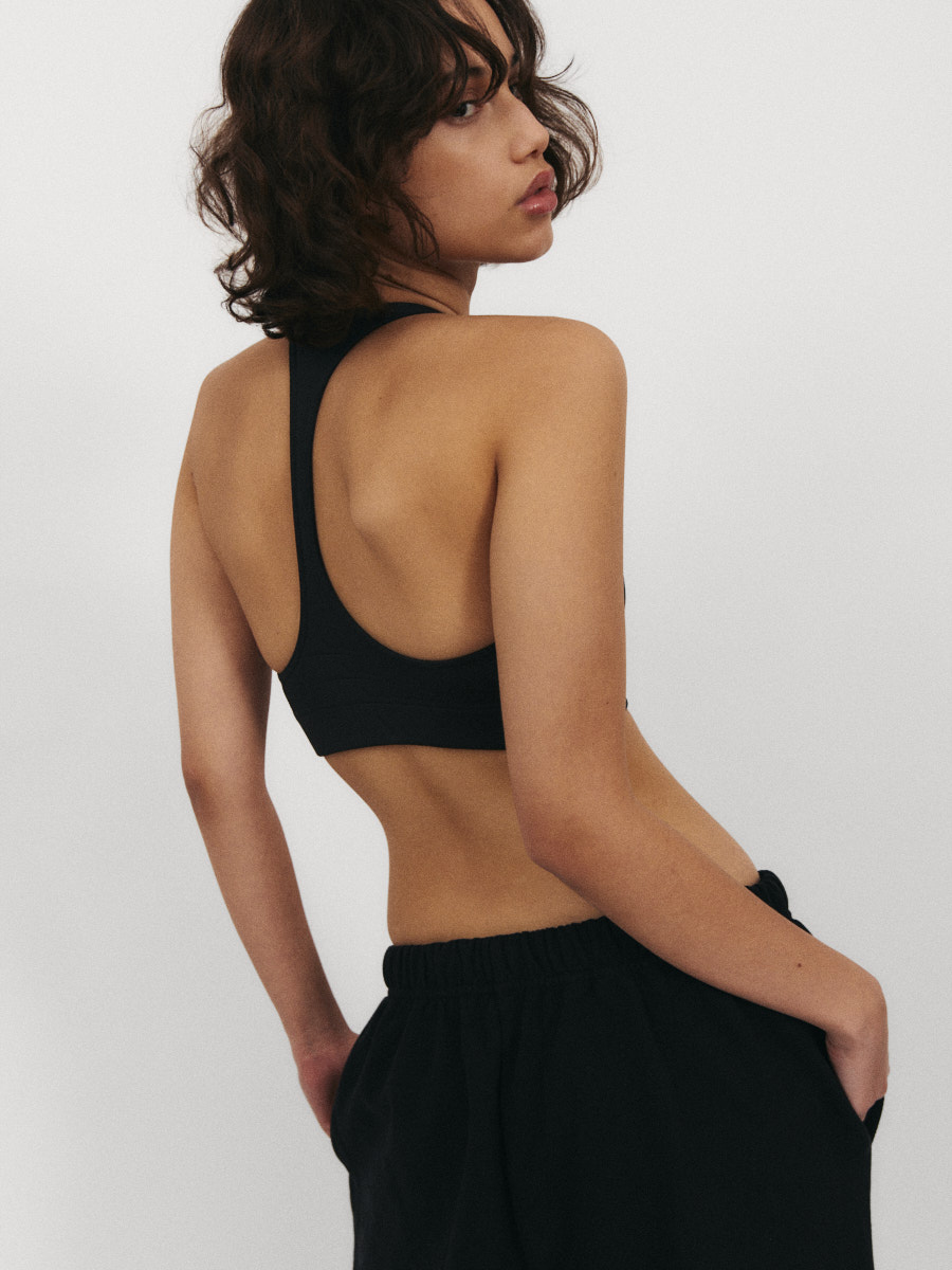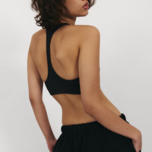 Biustonosz sportowy z kolekcji BASIC uszyty z dwóch warstw sportowego, elastycznego materiału. Model wzmocniony gumą produkowaną na specjalne zamówienie, która zapewnia perfekcyjne trzymanie nawet podczas bardzo wymagającego wysiłku fizycznego. Odpowiednio skonstruowane boki nie wrzynają się w ciało, a smukłe ramiączko z tyłu ładnie podkreśla linię pleców. Z tyłu metka z ekoskóry. Must have na treningu i w zestawach casualowych.