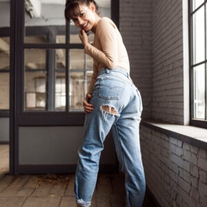 Modelka na zdjęciu ma 174 cm wzrostu i rozmiar XS/S. Dla Klientek poniżej 165 cm powstał rozmiar MINI.