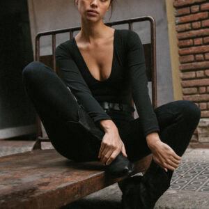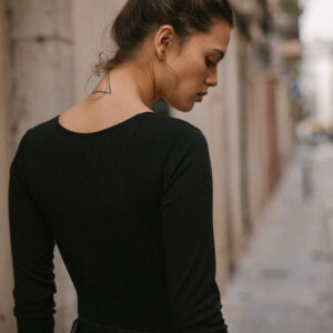 Body z długim rękawem z kolekcji GRLS GO PLACES. Uszyte ręcznie z szybkoschnącego, elastycznego materiału o delikatnie prążkowanej strukturze. Mocno przylegająca sportowa dzianina ma właściwości modelujące. Z przodu mocne wycięcie. Duża elastyczność materiału oraz specjalistyczne gumy wszyte w dekolcie sprawiają, że body doskonale trzyma piersi, nadając im okrągły kształt. Body nadaje się również do wody. Z tyłu wszyta metka z logotypem z eko skóry.