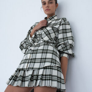 Spódnica mini o lekko rozkloszowanym kroju biodrówki z zakładkami, które nadają lekkości. Długość jest wyraźnie skrócona co sprawia, że spódnica podkreśla nogi i nadaje odważnego charakteru. Pas ze szlufkami zapewnia wygodne dopasowanie i podkreśla sylwetkę. Miękka, przyjemna w dotyku flanela sprawia, że spódnica jest bardzo wygodna. Świetnie sprawdzi się w stylizacjach na każdą okazję.