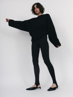 wysokiej jakości legginsy, wykonane z matowej, gładkiej tkaniny, czyli bawełny z dodatkiem elastanu, doskonale sprawdzą się w eleganckich stylizacjach. jeżeli szukasz czegoś naprawdę oryginalnego, koniecznie zwróć uwagę na legginsy z rozcięciem SOIR. lekko wydłużone nogawki o kroju oversize prezentują się bardzo oryginalnie, wręcz zadziornie, dzięki temu legginsy bardziej niż na siłownię nadają się na eleganckie wyjścia.