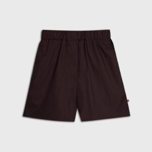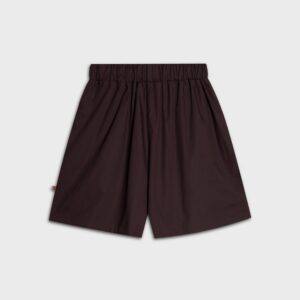 Bawełniane spodenki z wysokim stanem. Minimalistyczny krój z szeroką gumą w pasie i dekoracyjną zakładką z przodu. Model nie posiada suwaka. Dwie kieszenie i delikatne rozcięcia po bokach dopełniają całości. Najlepiej prezentują się w monochromatycznych zestawach. Idealnie komponują się z koszulą DE BASE w tym samym odcieniu.