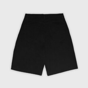 Szorty typu bermudy o luźnym, prostym kroju. O długości za kolano. Wysoki stan idealnie podkreśla talię. Model posiada funkcjonalne kieszenie z przodu i z tyłu. Spodnie zapinane na zamek i guzik. Sprawdzą się doskonale w stylizacji z kowbojkami, jak i sportowym obuwiem.