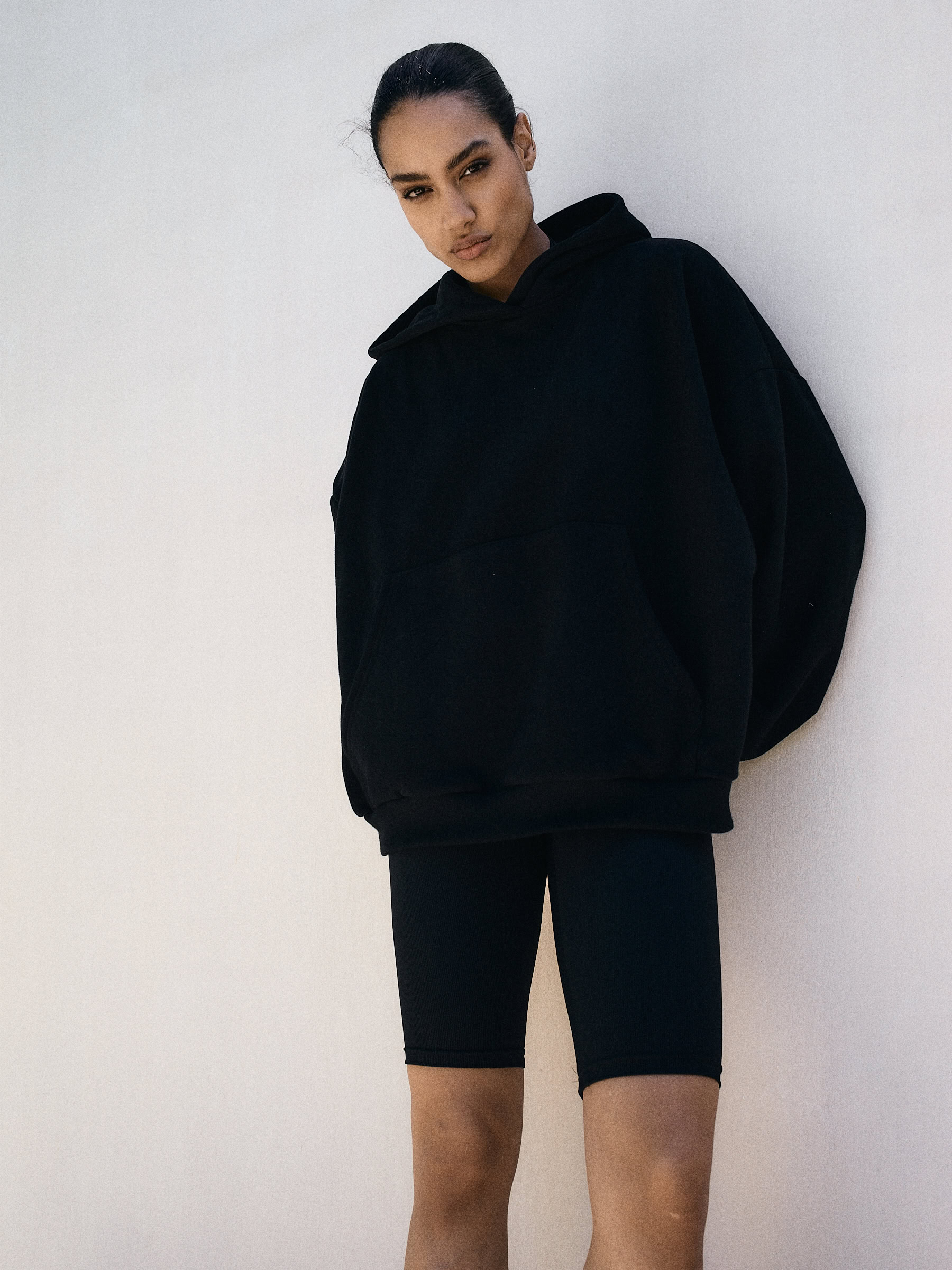 Szorty typu biker z wysokim stanem o prostym, minimalistycznym kroju. Elastyczny materiał doskonale dopasowuje się do sylwetki delikatnie opinając ciało. Szorty o długości do połowy uda. Świetnie sprawdzą się do casualowych stylizacji i sportowych butów, a także w zestawieniu z ciężkimi butami w wersji wieczorowej.