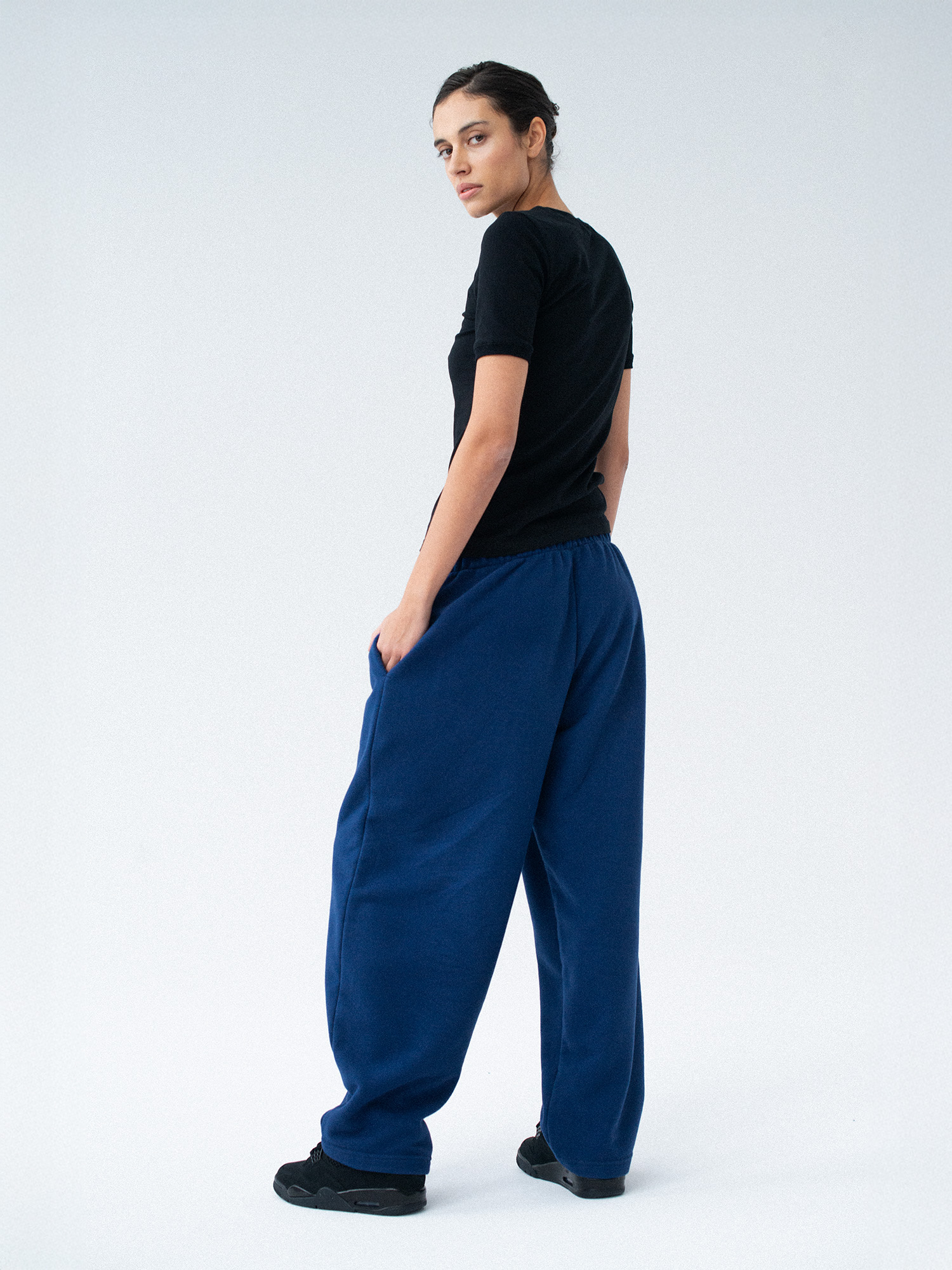 Spodnie LE PUMP uszyte są z wysokogatunkowej bawełny z domieszką recyklingowego poliestru. Specjalne uszlachetnienie – szmerglowanie z prawej strony sprawia, że jest niezwykle przyjemna dla ciała.
