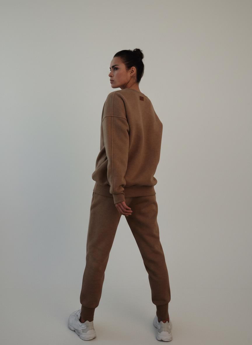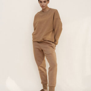 Lekko oversize’owy krój zapewnia ultra komfort i wygodę podczas noszenia. Dzięki specjalnej konstrukcji, materiał estetycznie układa się w kroku. Nogawki są wykończone ściągaczem typu ribb. W pasie wszyty został bawełniany sznurek, który umożliwia regulację obwodu. Z boku funkcjonalne kieszenie zapinane na suwak. Idealnie sprawdzają się do zestawów casualowych i na sali treningowej.