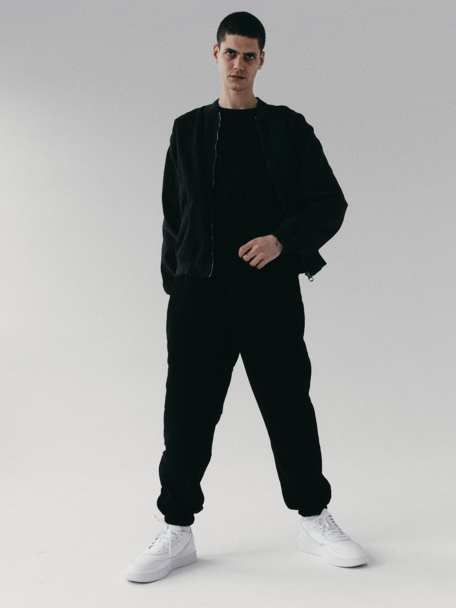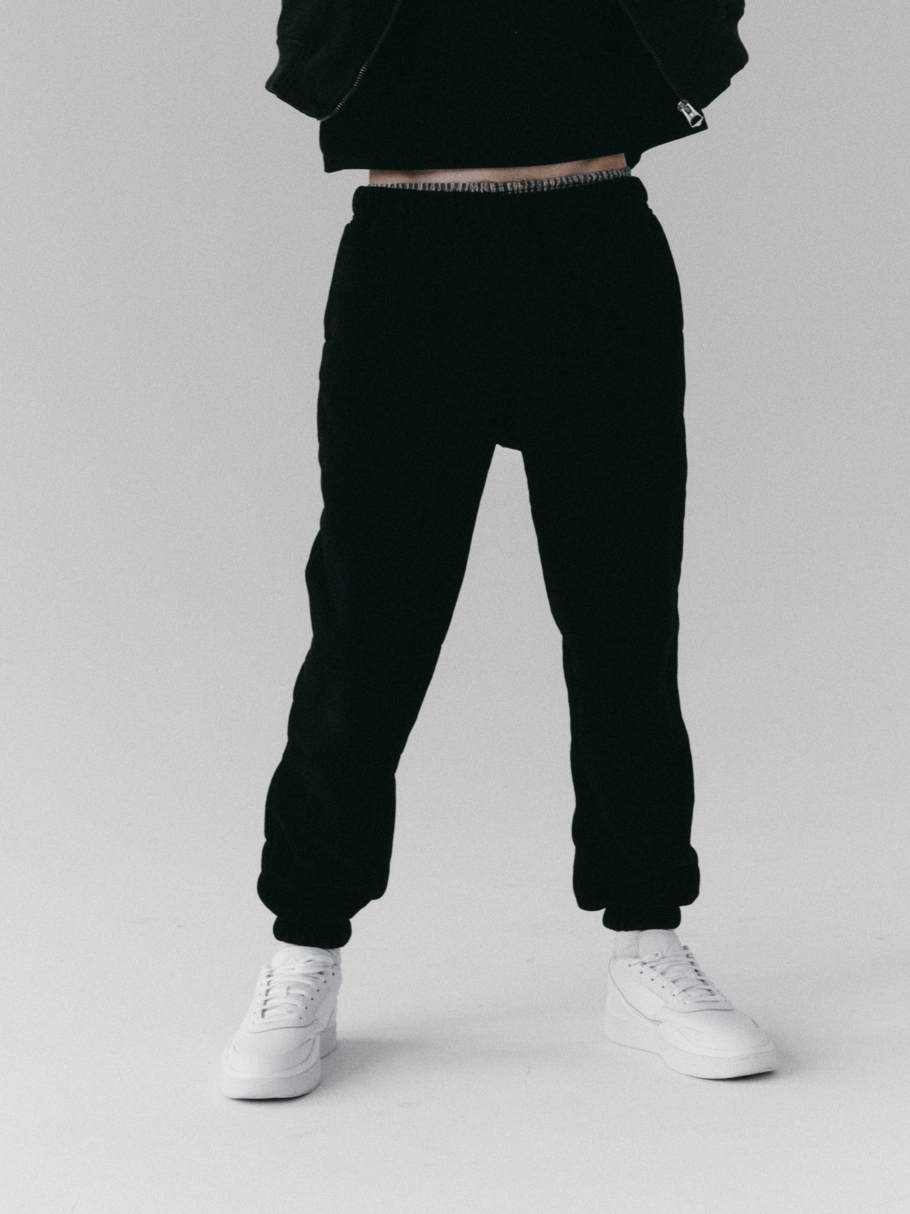 Spodnie dresowe o kroju baggy, z niskim stanem, obniżoną linią kroku i dłuższymi nogawkami. Model posiada głębokie kieszenie i możemy nosić go na dwa sposoby: z lekko podniesioną nogawką, bądź swobodnie opuszczoną przy kostce. Idealnie prezentują się z bluzą oversize unisex 1990 black.