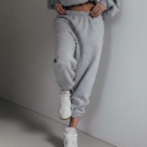 Spodnie dresowe o kroju baggy, z niskim stanem, obniżoną linią kroku i dłuższymi nogawkami. Model posiada głębokie kieszenie i możemy nosić go na dwa sposoby: z lekko podniesioną nogawką, bądź swobodnie opuszczoną przy kostce. Idealnie prezentują się z bluzą oversize unisex 1990 grey.