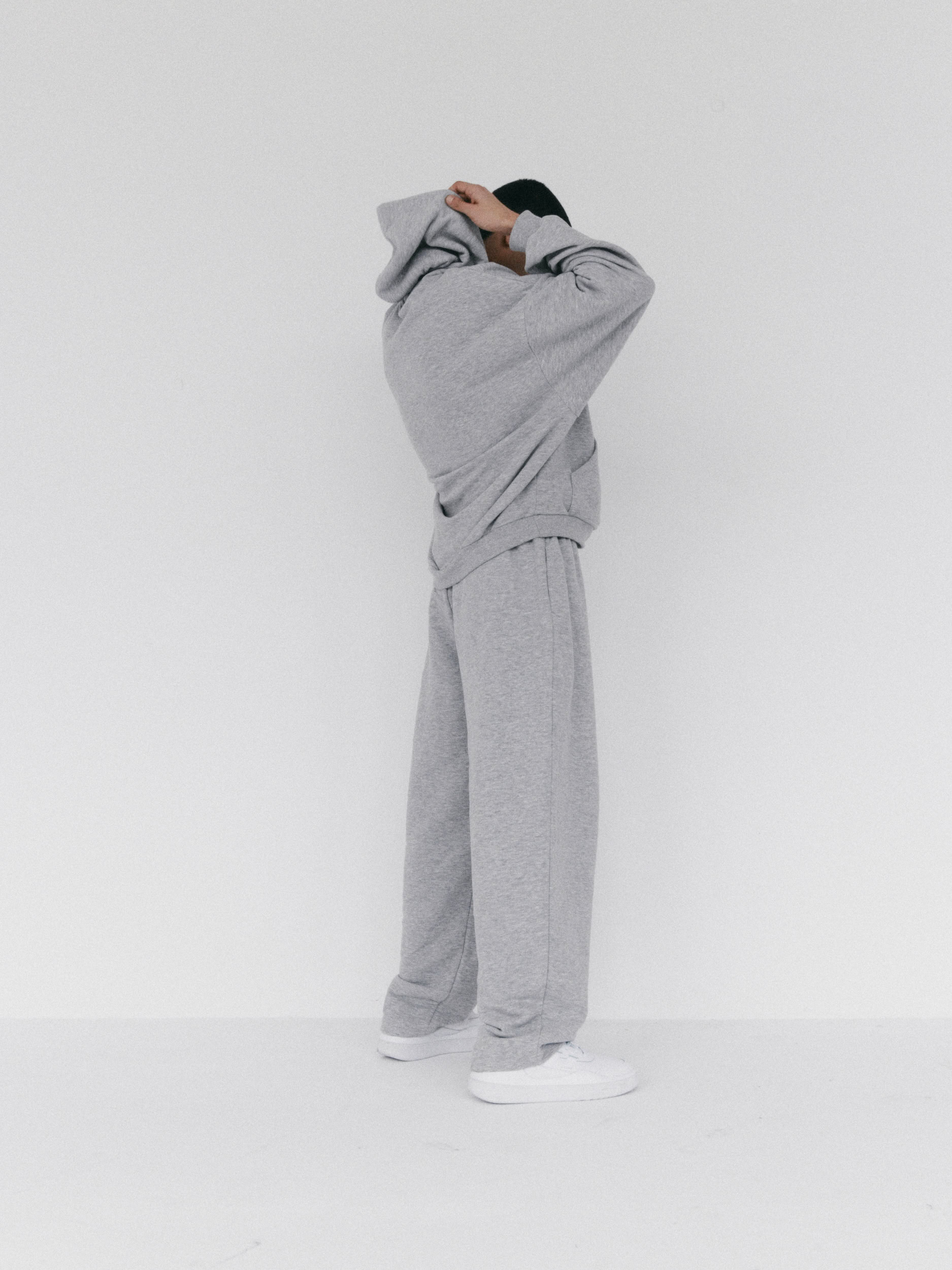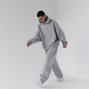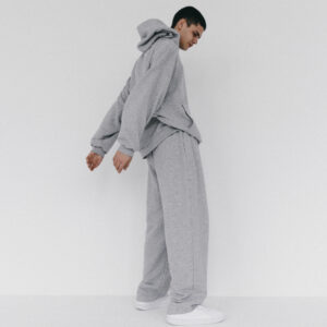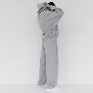 Spodnie dresowe o luźniejszym kroju z wysokim stanem i zaczepnie przydługimi nogawkami. Charakterystyczna dla tego modelu jest szeroka guma w pasie oraz proste nogawki swobodnie opadające na stopy. Model posiada funkcjonalne kieszenie po bokach, Razem z oversize’ową bluzą z kapturem LE PUMP stanowią zestaw doskonały.
