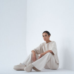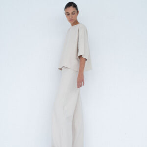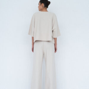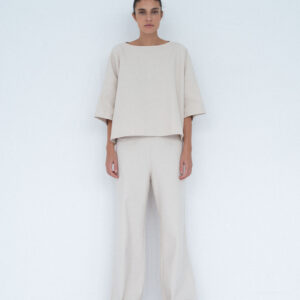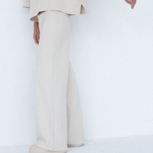 Spodnie z szeroką nogawką MOAI zostały uszyte ze 100% bawełny organicznej o wyższej gramaturze, dzięki czemu materiał dobrze trzyma formę.