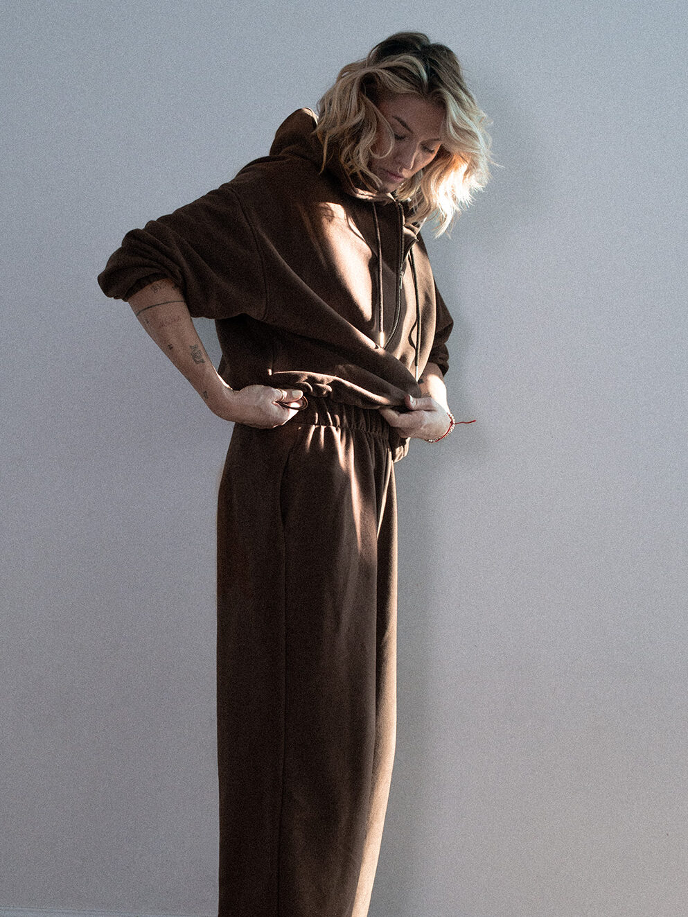 Spodnie LE PUMP uszyte są z wysokogatunkowej bawełny z domieszką poliestru, o delikatnie niższej gramaturze niż bestsellerowy model SOFT TOUCH z kolekcji WHAT IF. Specjalne uszlachetnienie – szmerglowanie z prawej strony sprawia, że jest niezwykle przyjemna w dotyku. Dzianina ma drobną pętelkę w środku, co czyni ją perfekcyjną na sezon wiosenno-letni, a także sprawia, że materiał miękko się układa. Nie podrażnia skóry, nie elektryzuje się.
