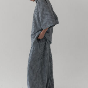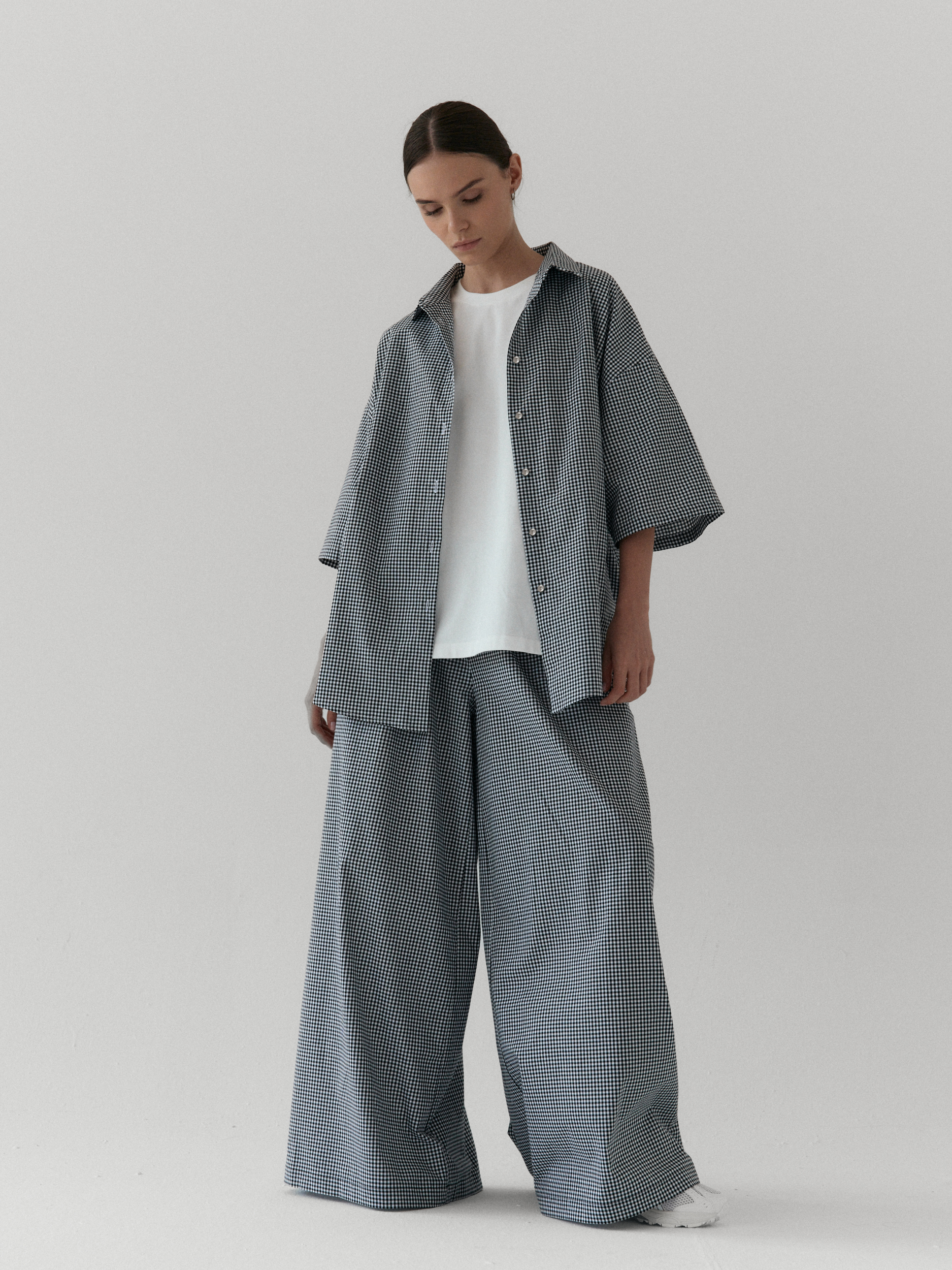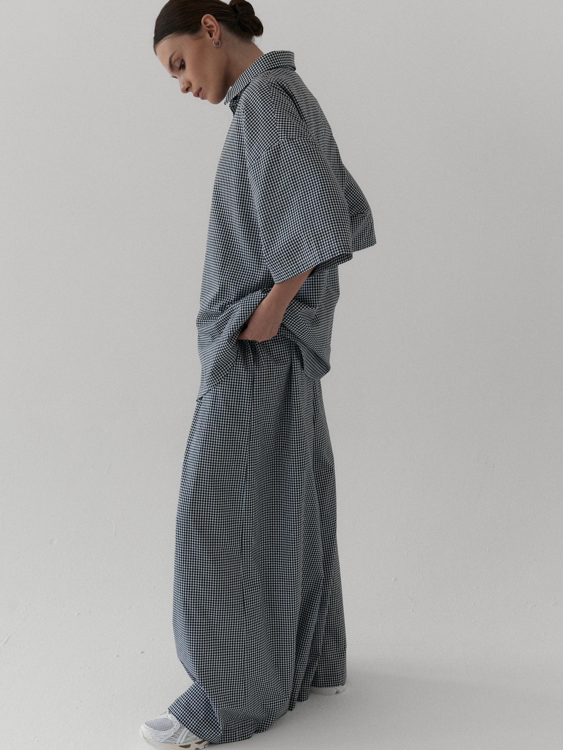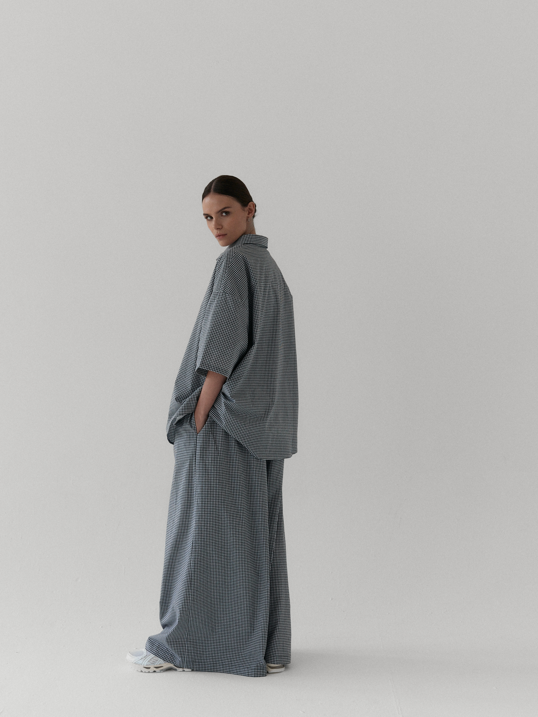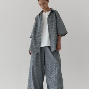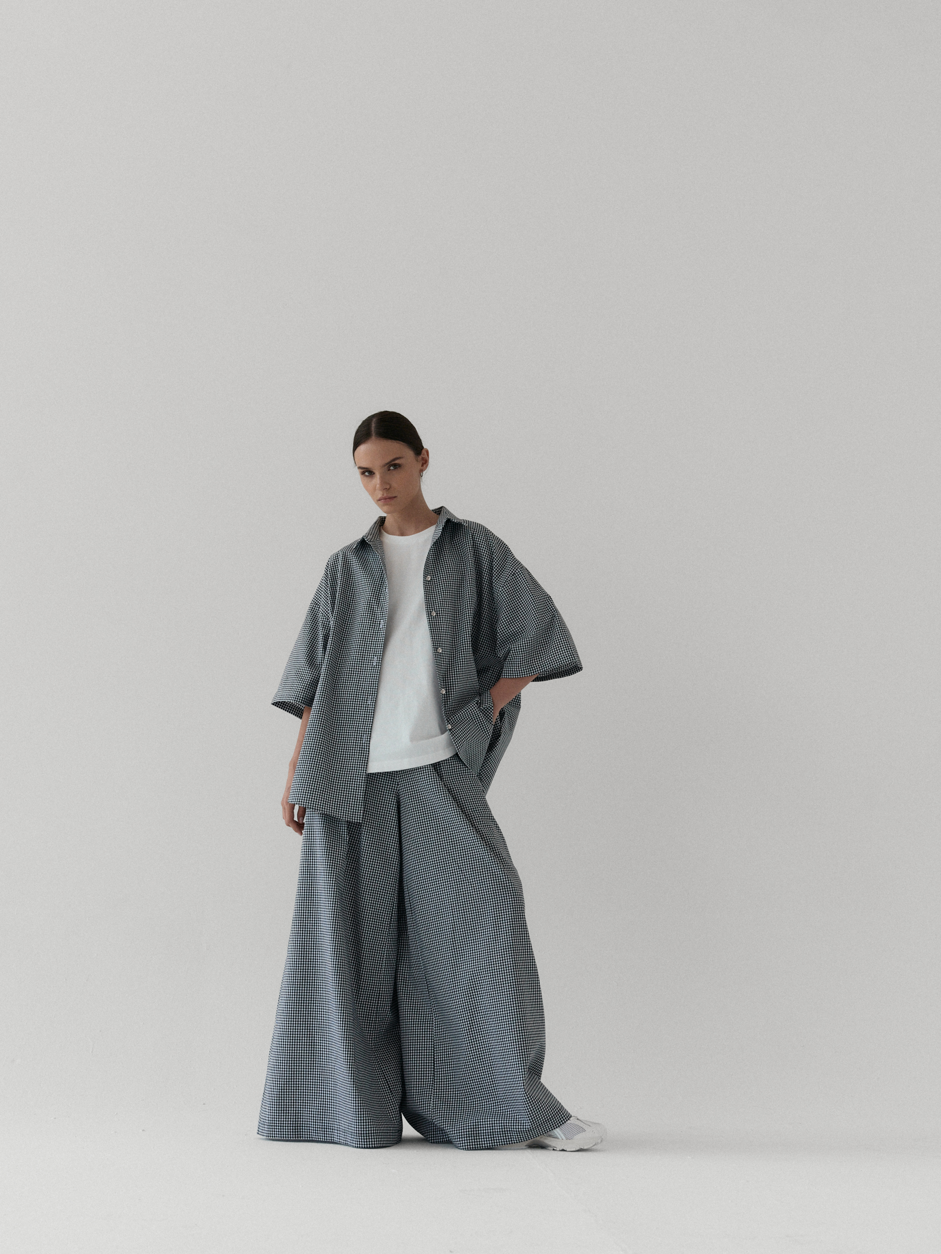 Koszula o luźnym, ultra oversize’owym, męskim kroju z krótkim rękawem. Klasyczna, nieco wydłużona forma, o pudełkowym kształcie. Prosty, duży kołnierzyk oraz szerokie rękawy dopełniają całości. Model zapinany na guziki. Solidna baza pod każdy look. Świetnie wygląda w zestawie z naszymi spodniami MAU.