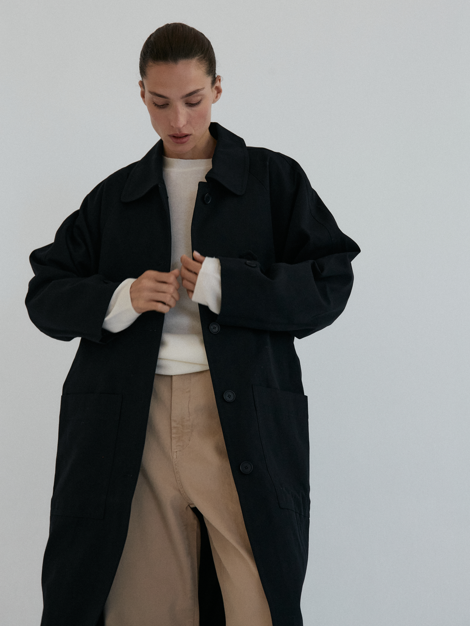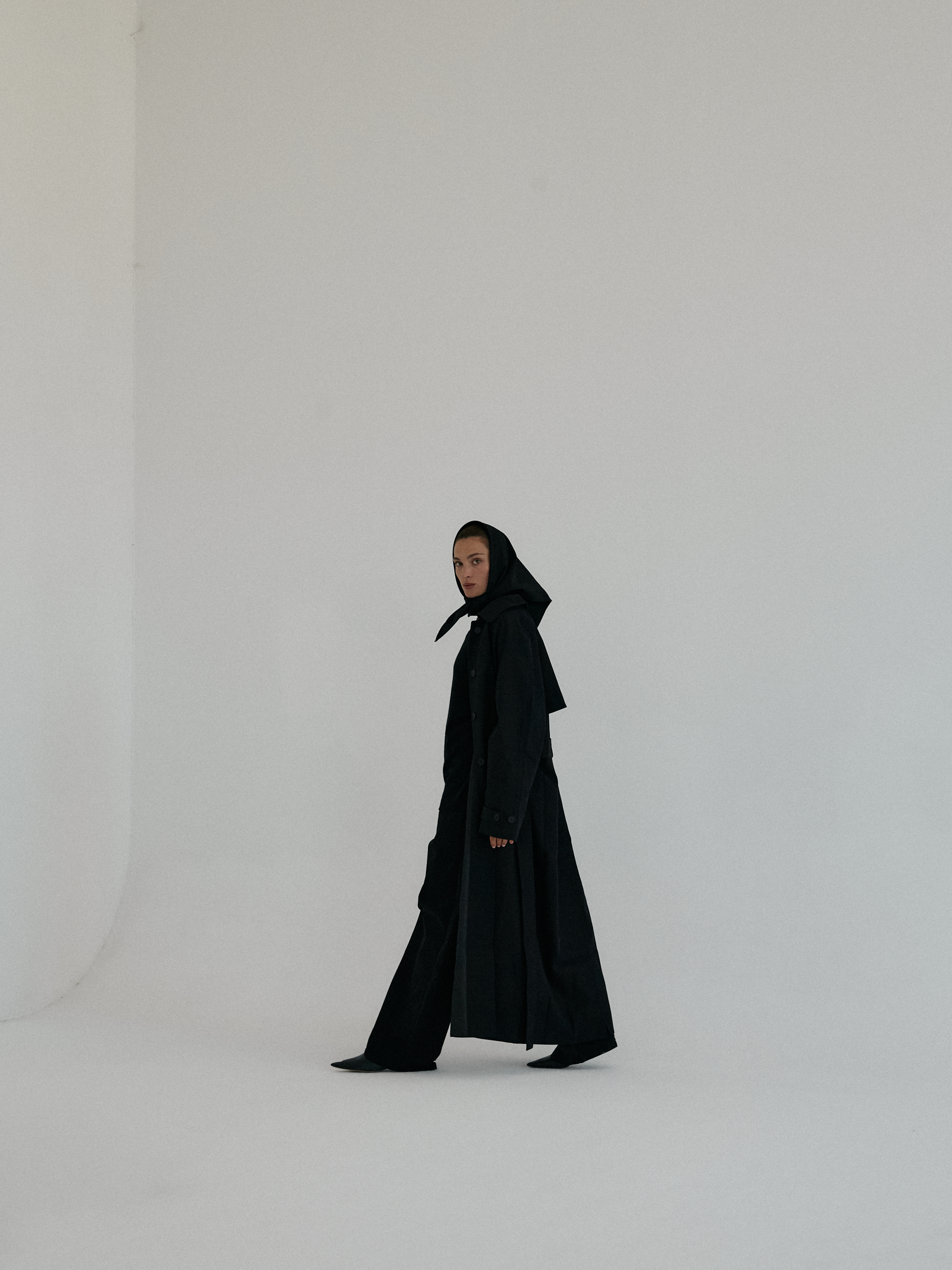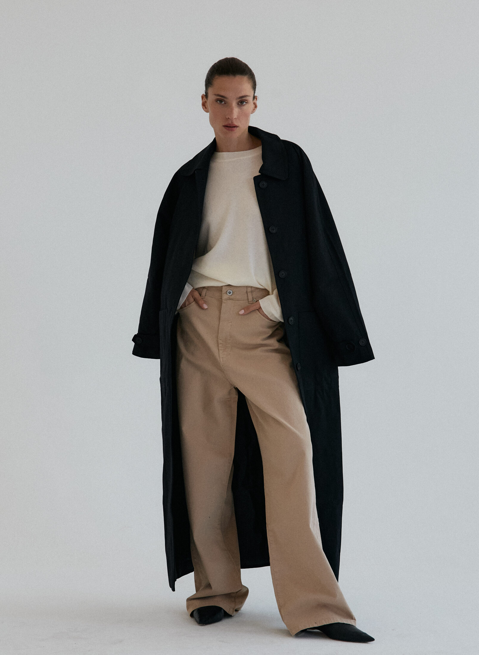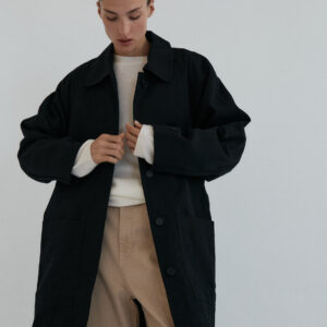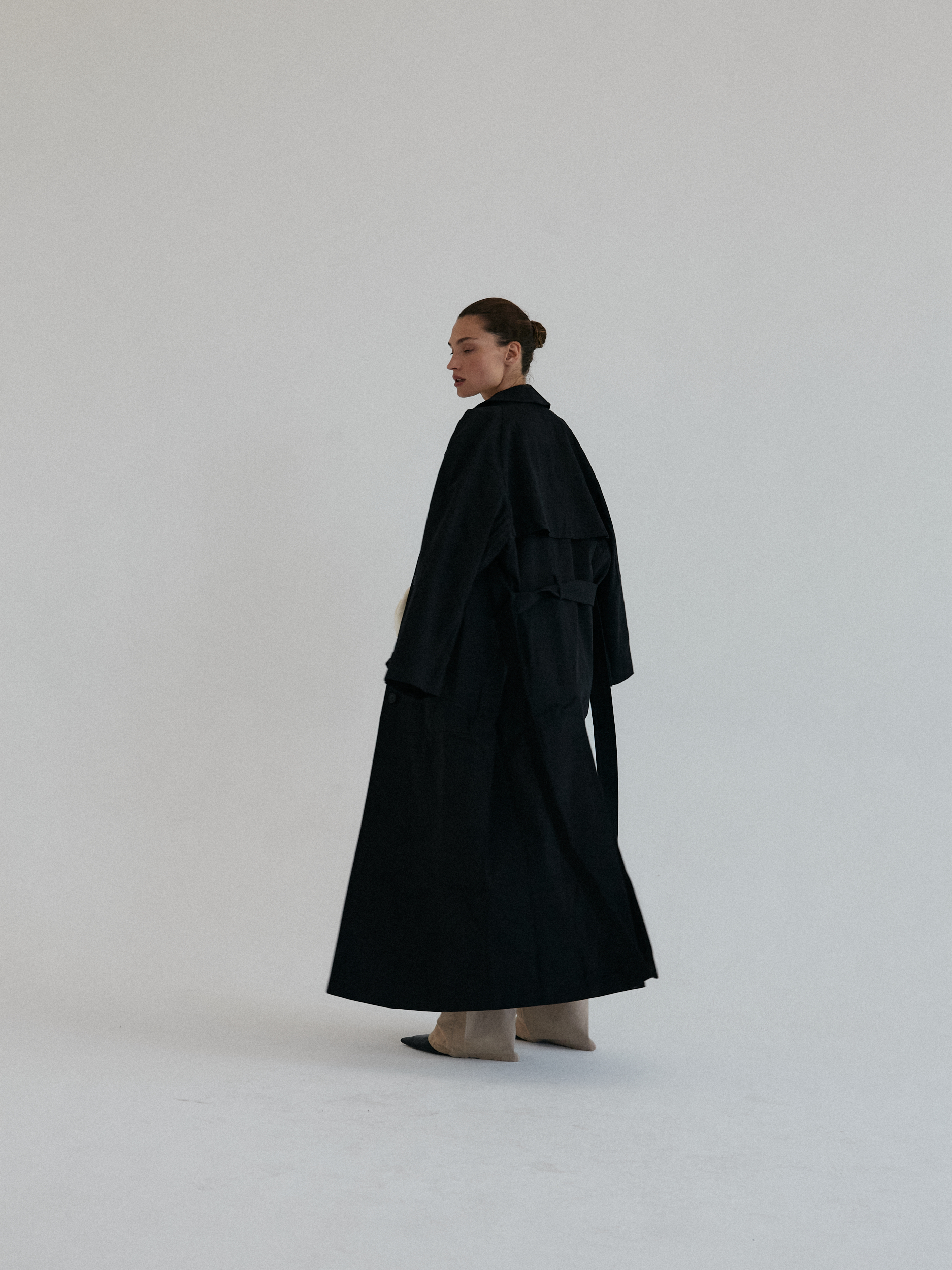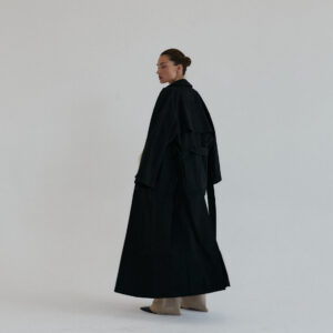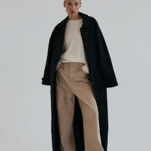 Oversize’owy, ultra-długi prochowiec o męskim kroju. Prosty, minimalistyczny. Zapinany na guziki oraz przewiązywany paskiem w talii. Dwie duże, funkcjonalne kieszenie z przodu. Opuszczona linia ramion i duże klapy z przodu dopełniają całości. Dopracowany w najmniejszym detalu idealnie sprawdzi się w sezonie przejściowym. Najlepiej sprawdzi się w monochromatycznych zestawach.