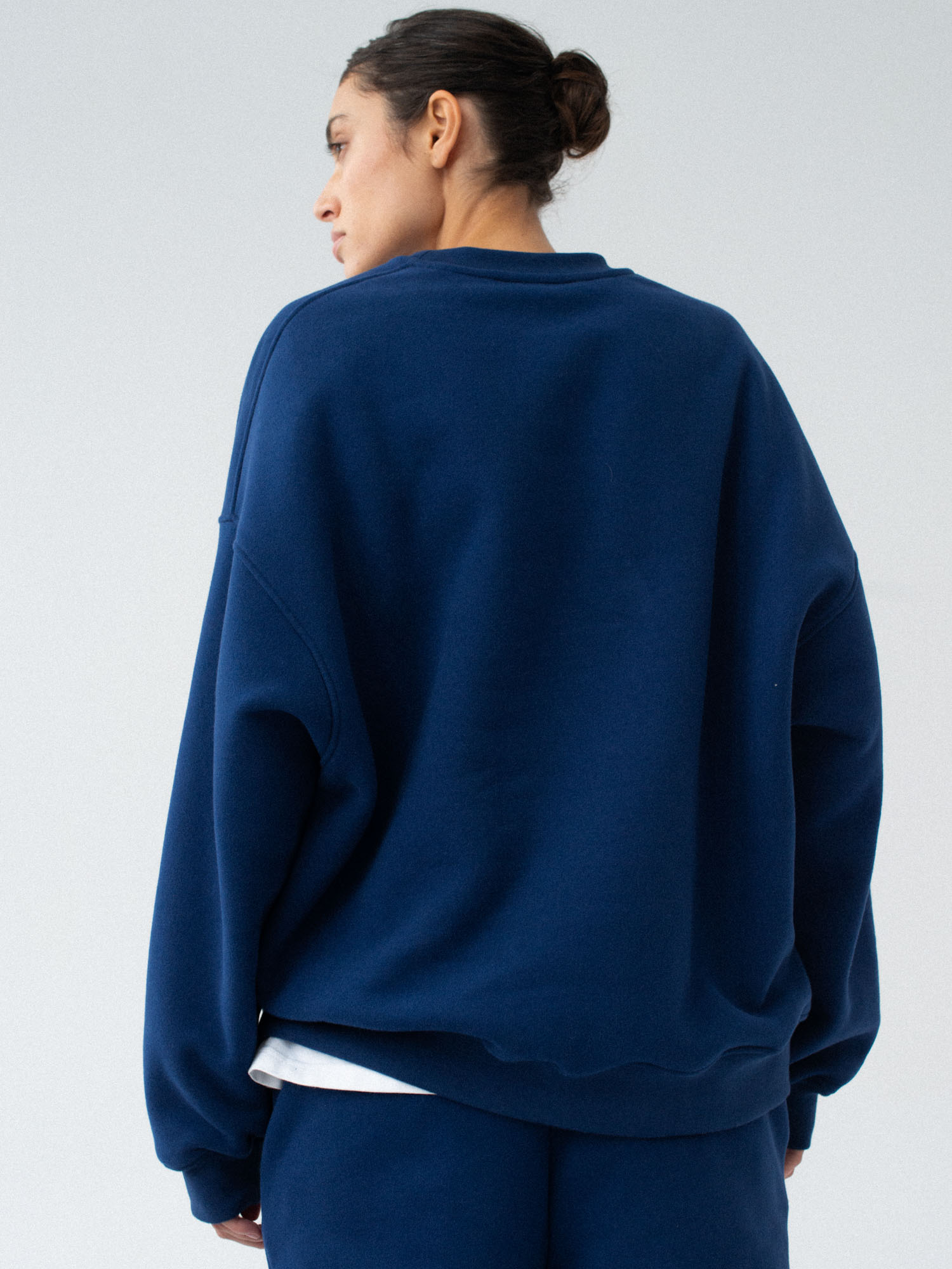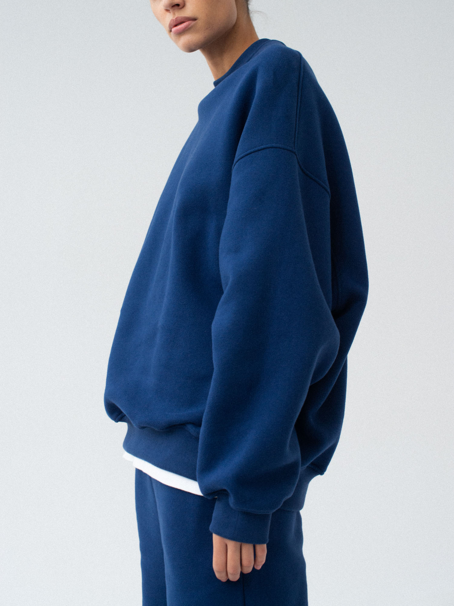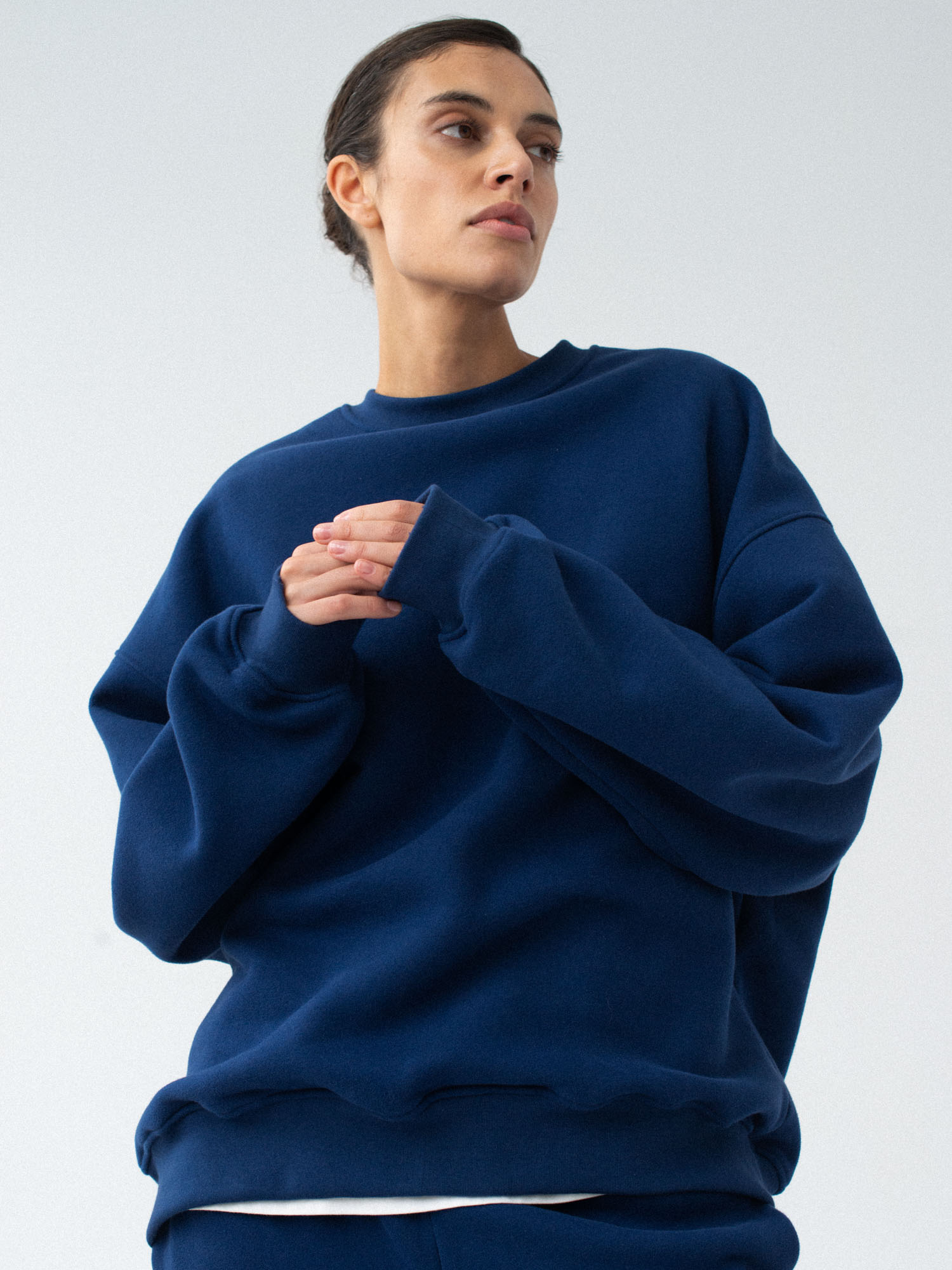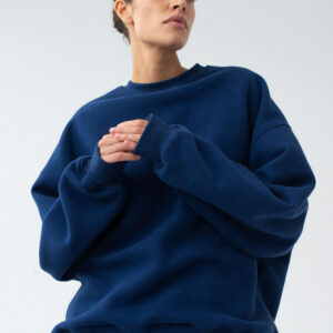 Bluza typu oversize z obniżoną linią ramion. Dół bluzy, rękawy i stójka wykończone są ściągaczem w kolorze materiału. Zaczepnie przydługie rękawy, obniżona linia ramion i nieco wydłużony fason dopełniają całości. Odpowiednia do jeansów, leginsów i spodni dresowych. Razem ze spodniami dresowymi z niskim stanem 1990 stworzy doskonały zestaw.