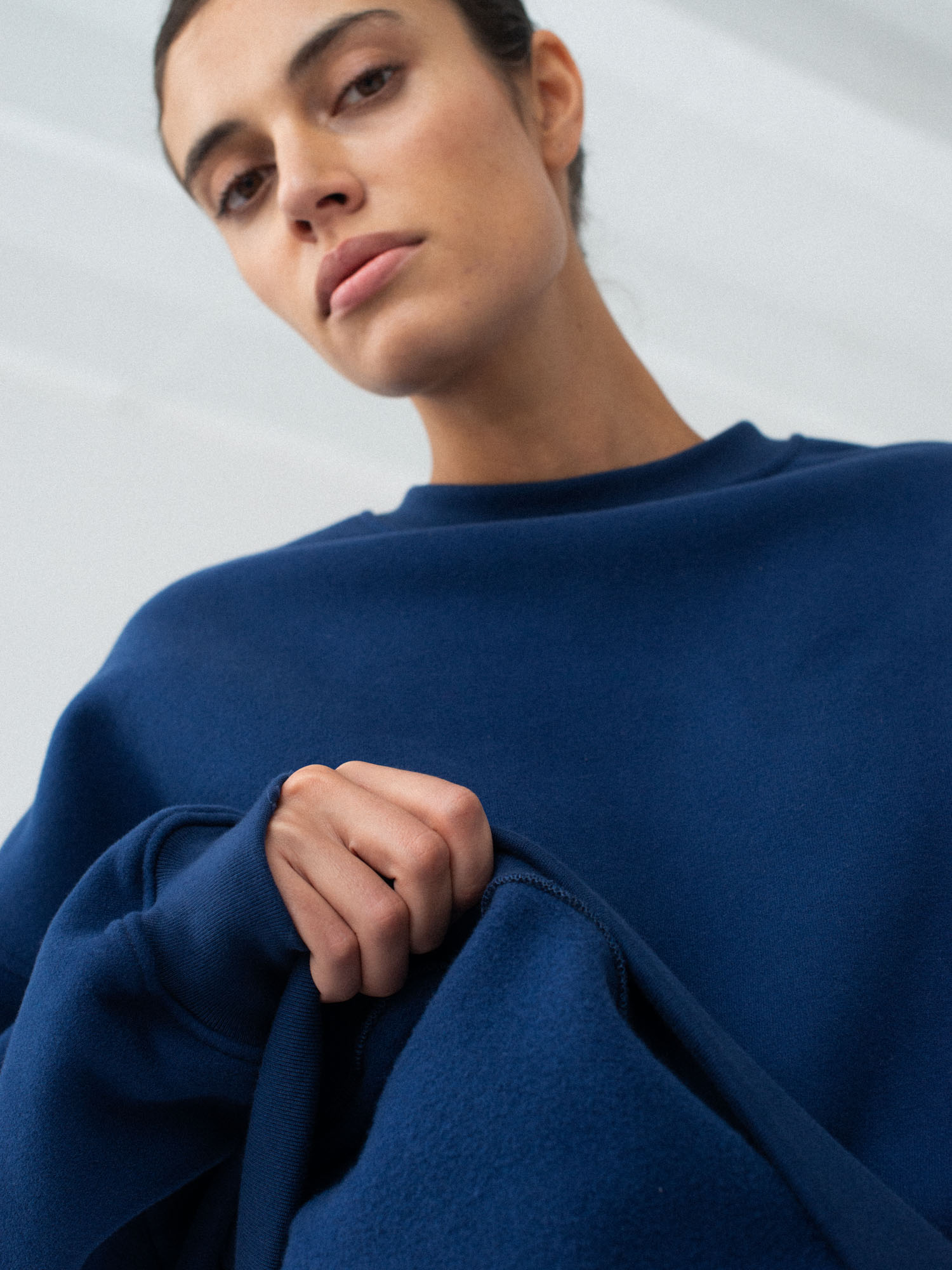 Bluza 1990 uszyta jest z wysokogatunkowej bawełny, o delikatnie niższej gramaturze niż bestsellerowy model SMOOTH COTTON. Specjalne uszlachetnienie – szmerglowanie z prawej strony sprawia, że jest niezwykle przyjemna w dotyku. Miękka dzianina drapana o przyjemnym meszku od spodu.