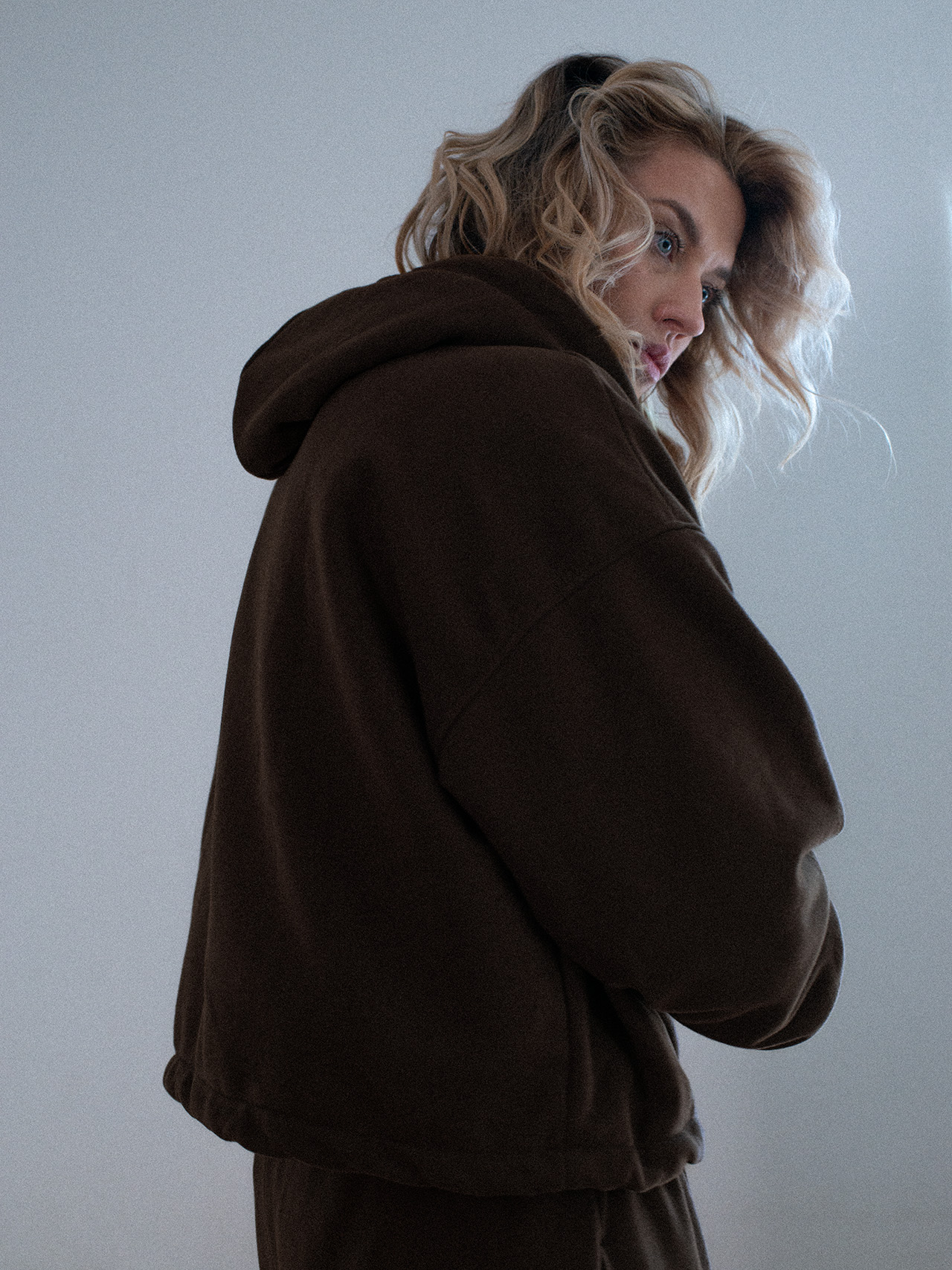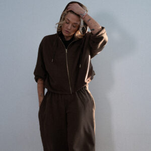Oversize’owa bluza z obszernym kapturem zapinana na zamek. Model wyróżnia się charakterystycznymi bufiastymi rękawami typu balloon sleeve, które nadają całości stylowy charakter. Bluza posiada dwie funkcjonalne kieszenie. Miękka, przyjemna w dotyku tkanina zapewnia komfort noszenia przez cały dzień, a luźny krój sprawia, że doskonale układa się na sylwetce..