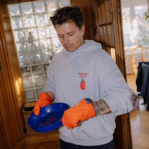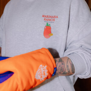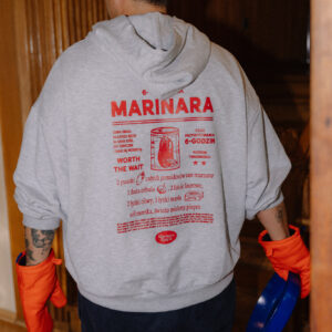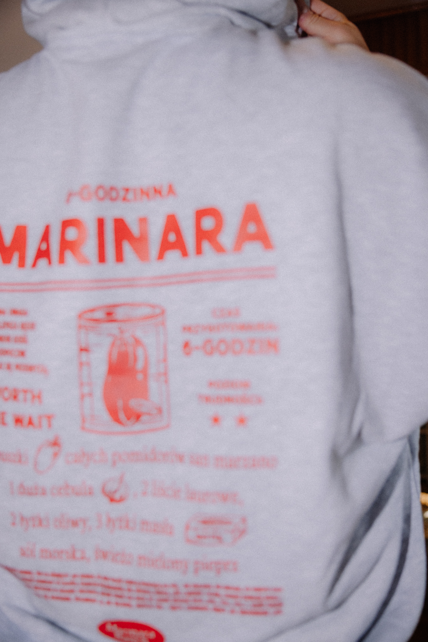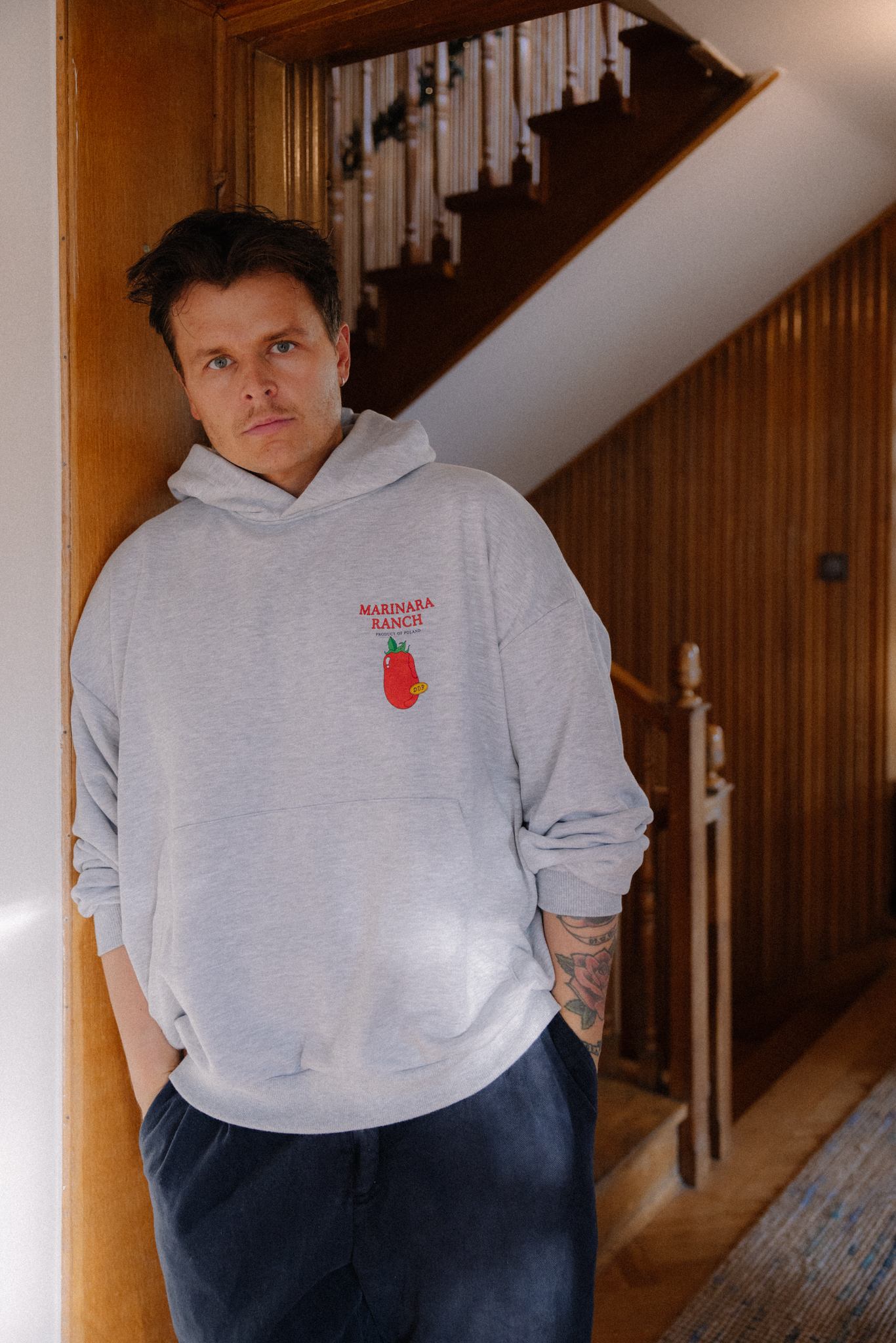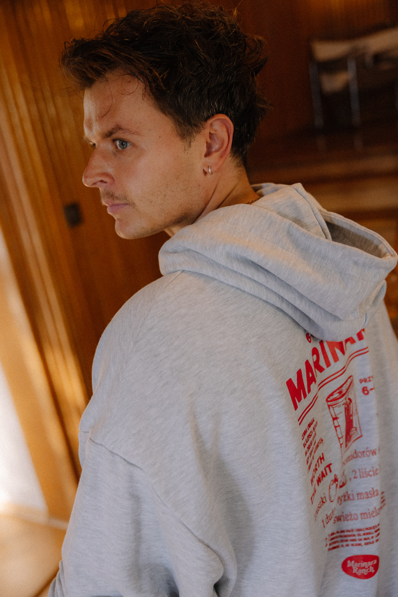 Oversize’owa bluza z kapturem. Z przodu i z tyłu widnieje nadruk MARINARA RANCH. Długość bluzy jest odpowiednia do jeansów, leginsów i spodni dresowych z wysokim stanem. Kieszeń kangurka jest funkcjonalnym i wygodnym urozmaiceniem, a także dodaje jej przytulnego charakteru.