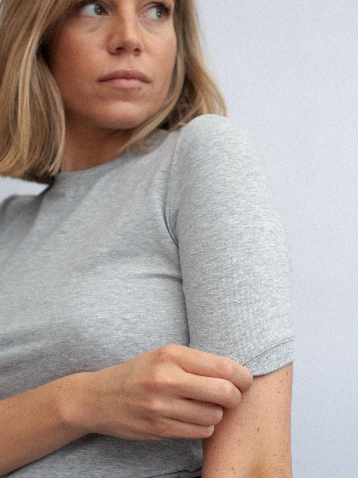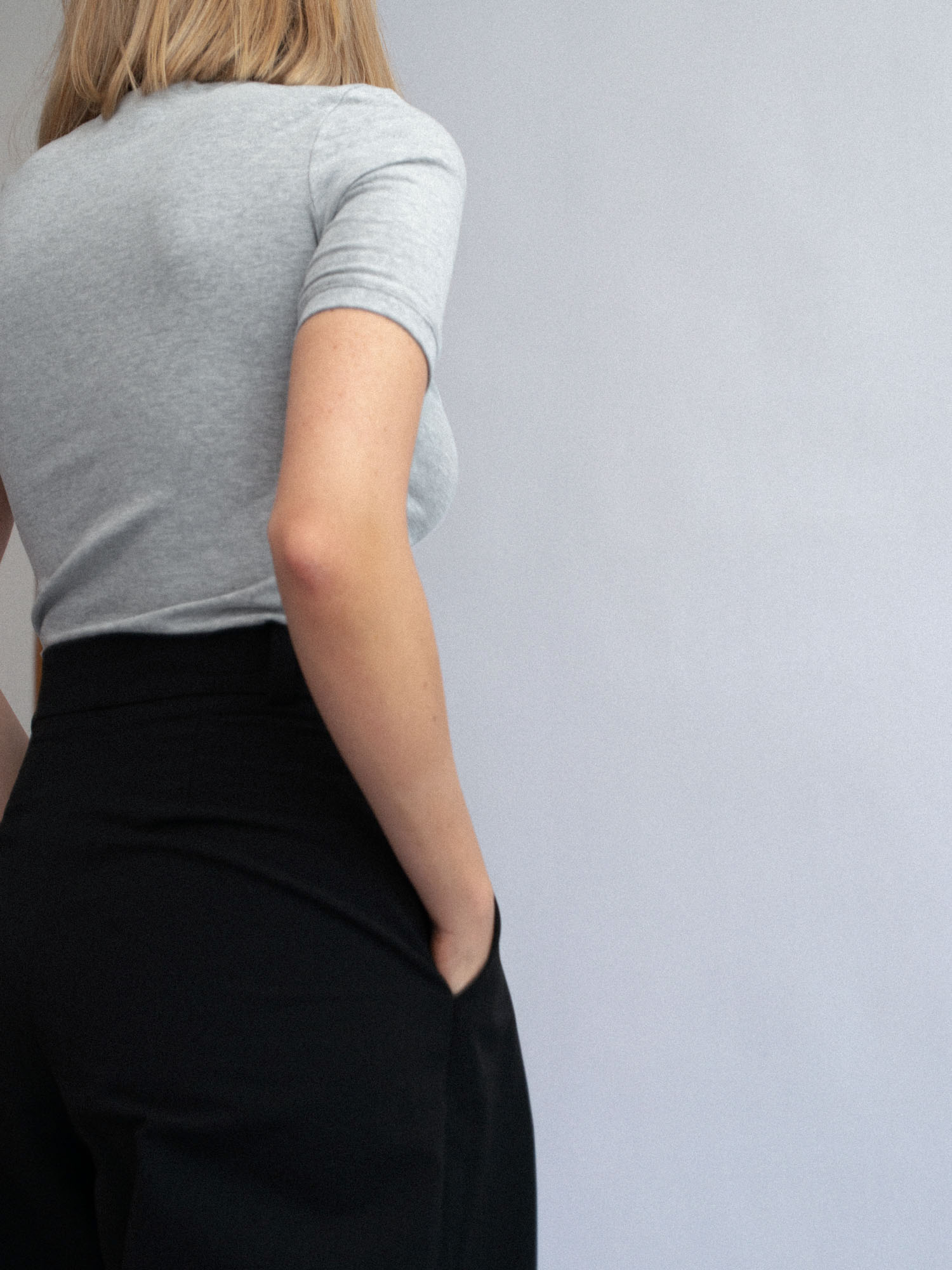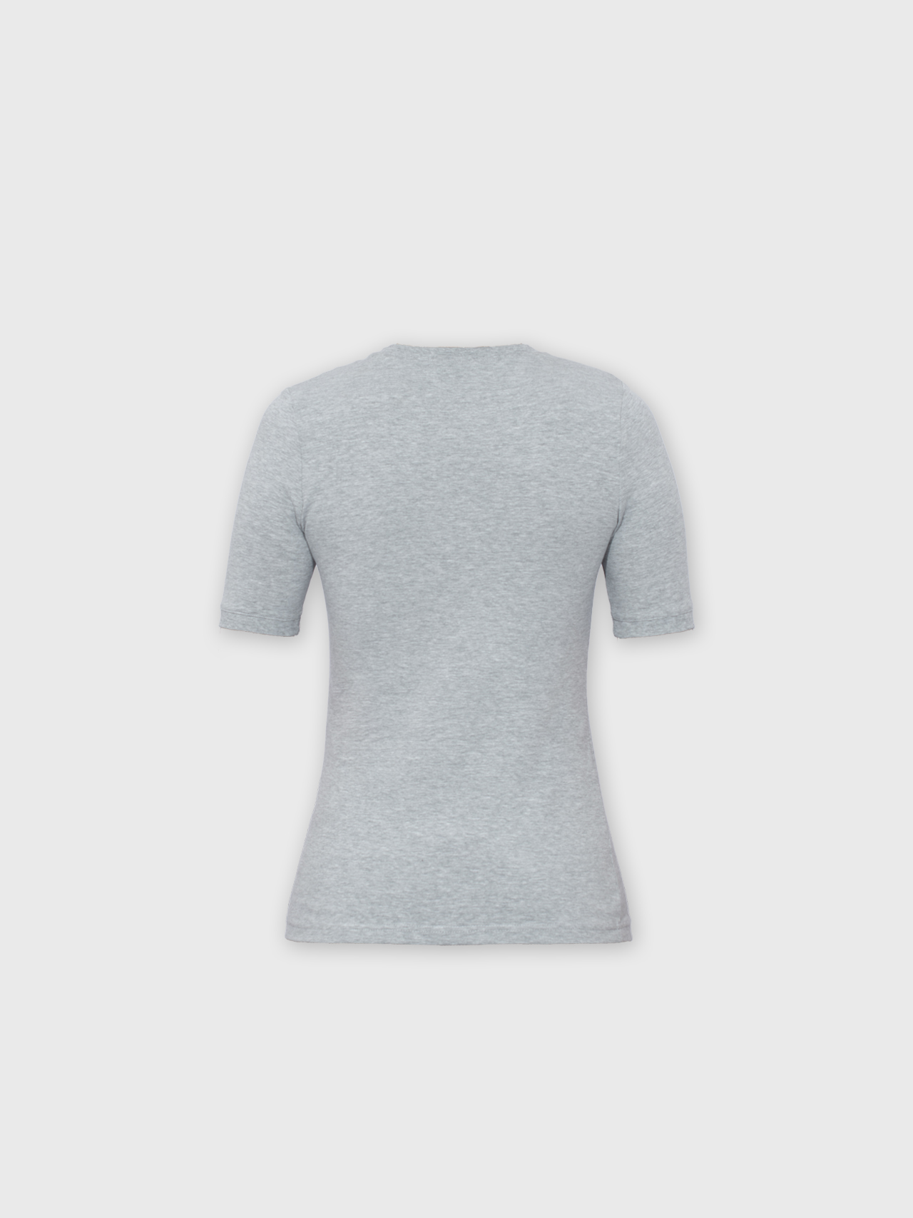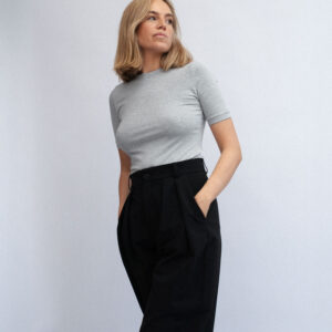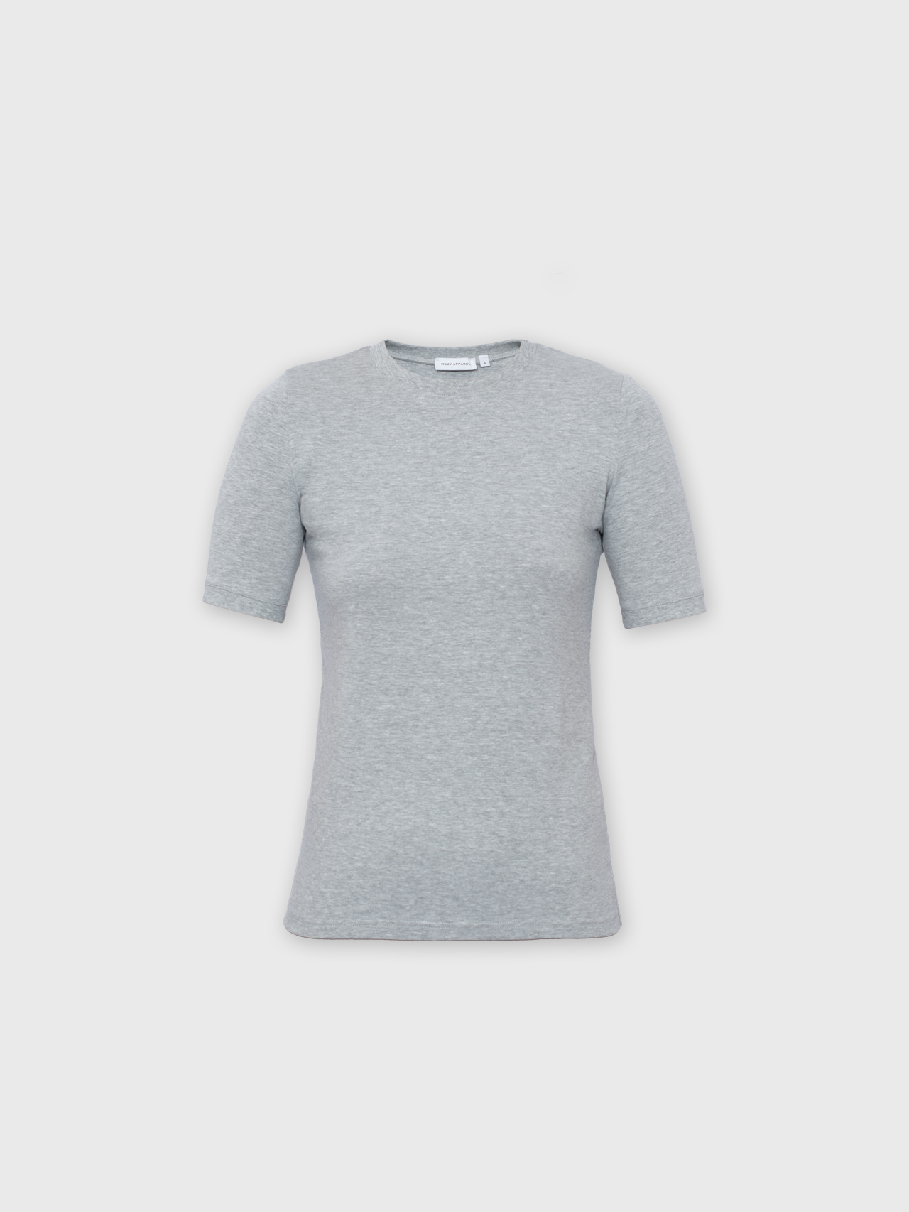 Bluzka z dopasowanym, krótkim rękawem. Idealny basic o klasycznym kroju z lekko zabudowanym dekoltem. Koszulka doskonale sprawdzi się zarówno do eleganckich spodni jak i jeansów. Może być też noszona jako dodatek pod sweter, koszulę czy marynarkę.