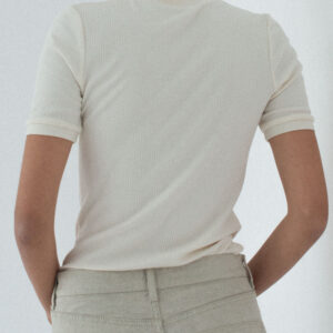 Bluzka z dopasowanym, krótkim rękawem. Idealny basic o klasycznym kroju z lekko zabudowanym dekoltem. Bluzka doskonale sprawdzi się zarówno do eleganckich spodni, jak i jeansów. Może być też noszona jako warstwa pod sweter, koszulę czy marynarkę.