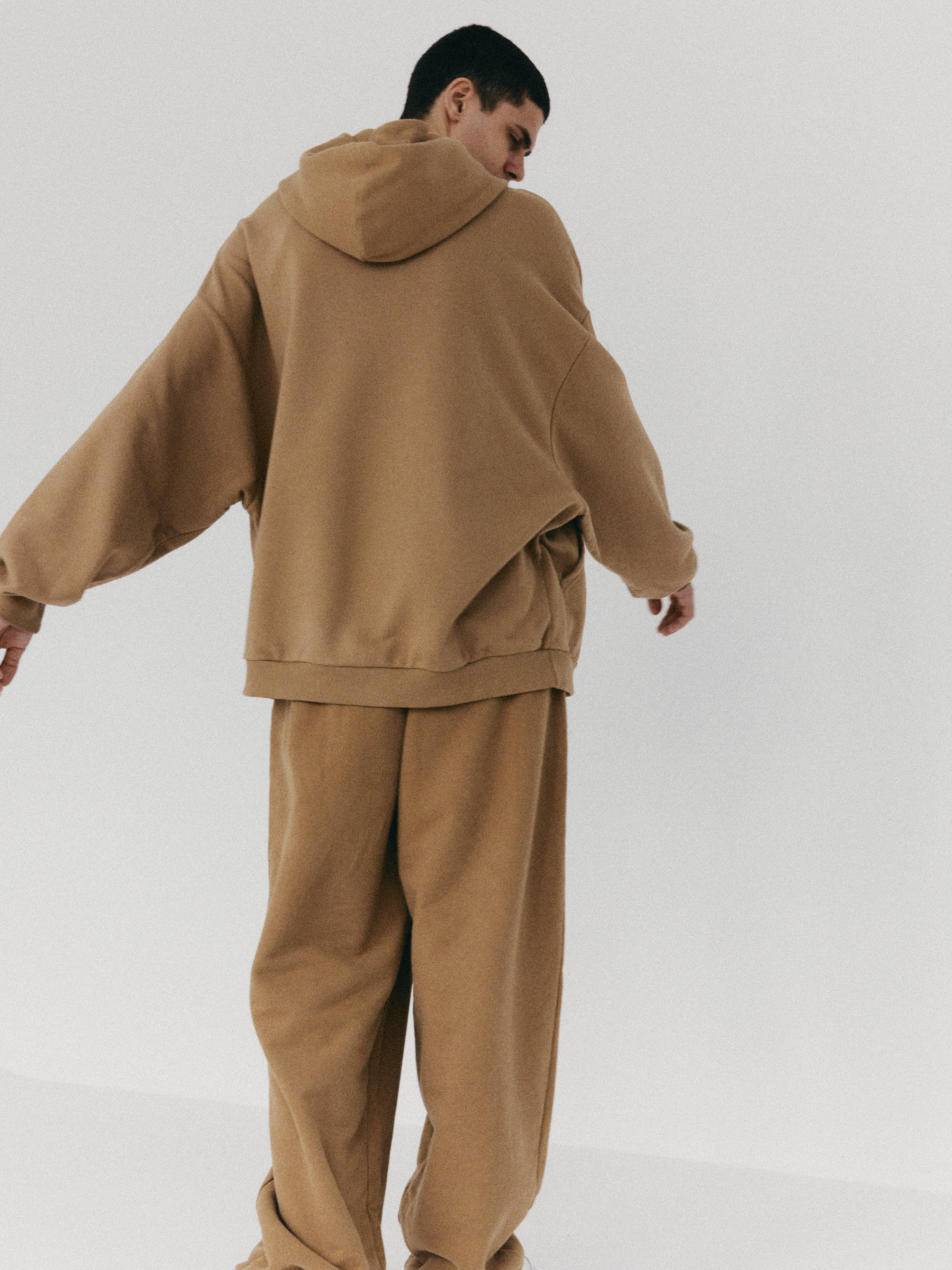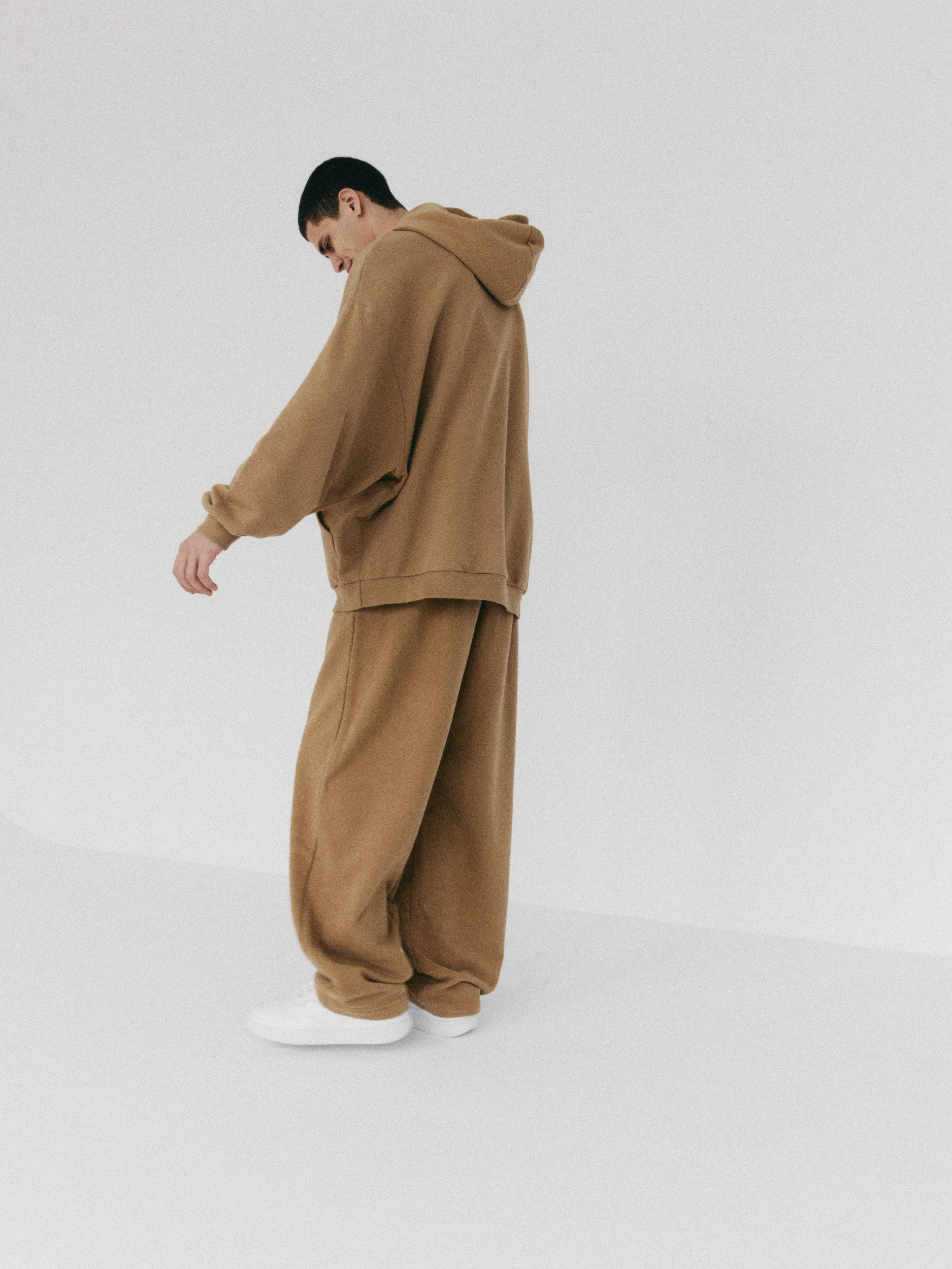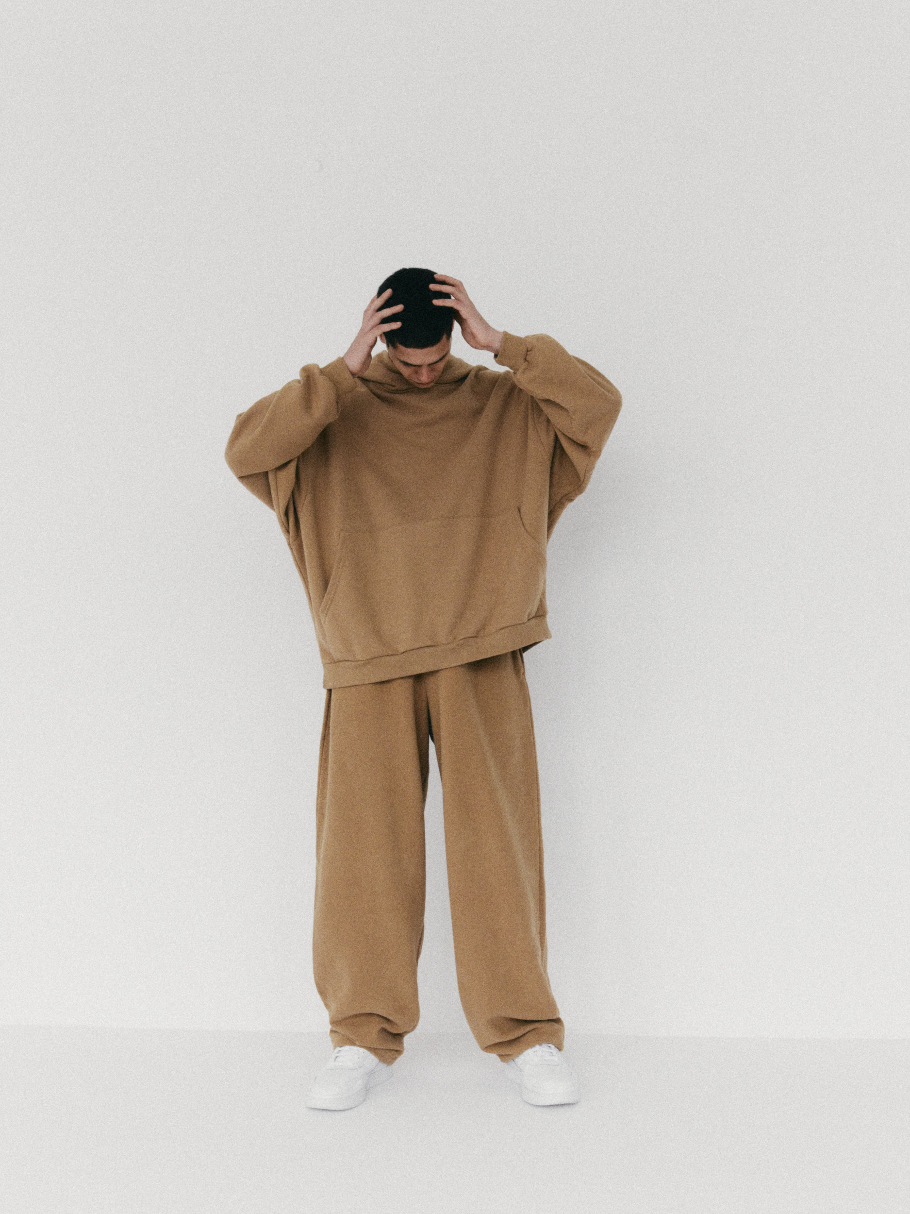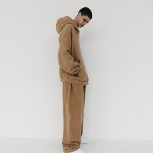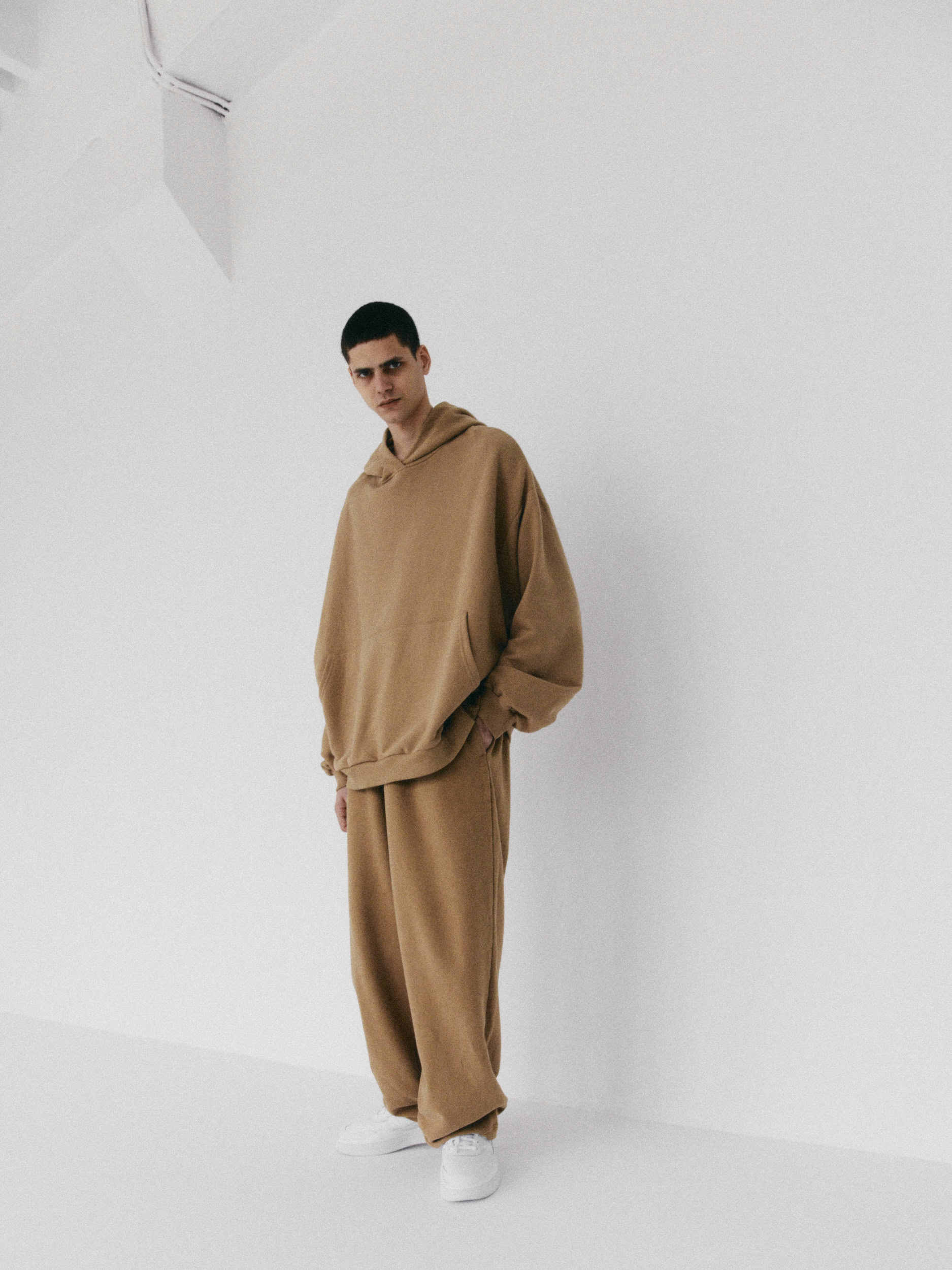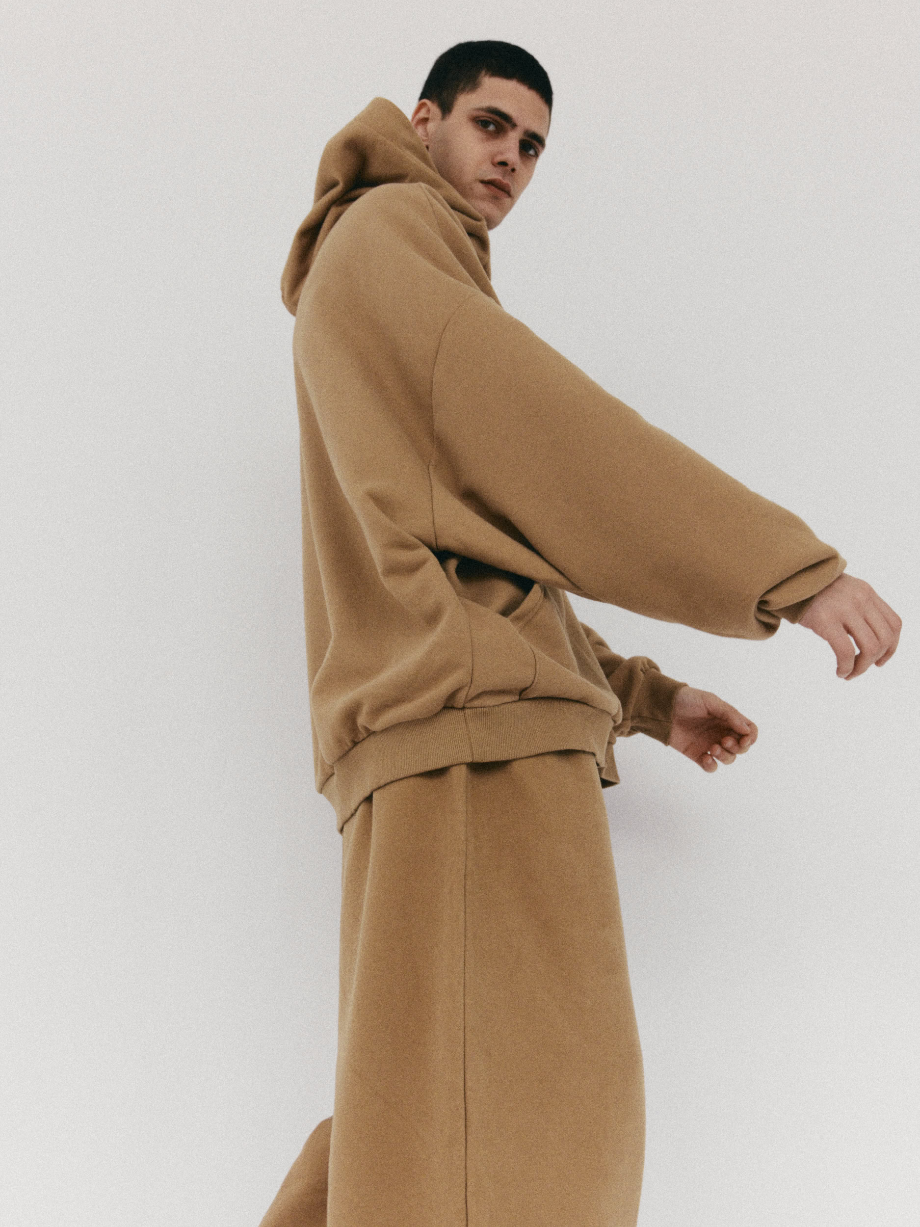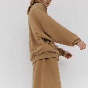 Oversize’owa bluza z kapturem o dłuższym kroju. Zaczepnie przydługie rękawy i obniżona linia ramion dopełniają całości. Długość bluzy jest odpowiednia do jeansów, leginsów i spodni dresowych z wysokim stanem. Kieszeń kangurka jest funkcjonalnym i wygodnym urozmaiceniem, a także dodaje jej przytulnego charakteru. Razem ze spodniami dresowymi z wysokim stanem LE PUMP stanowią zestaw doskonały.