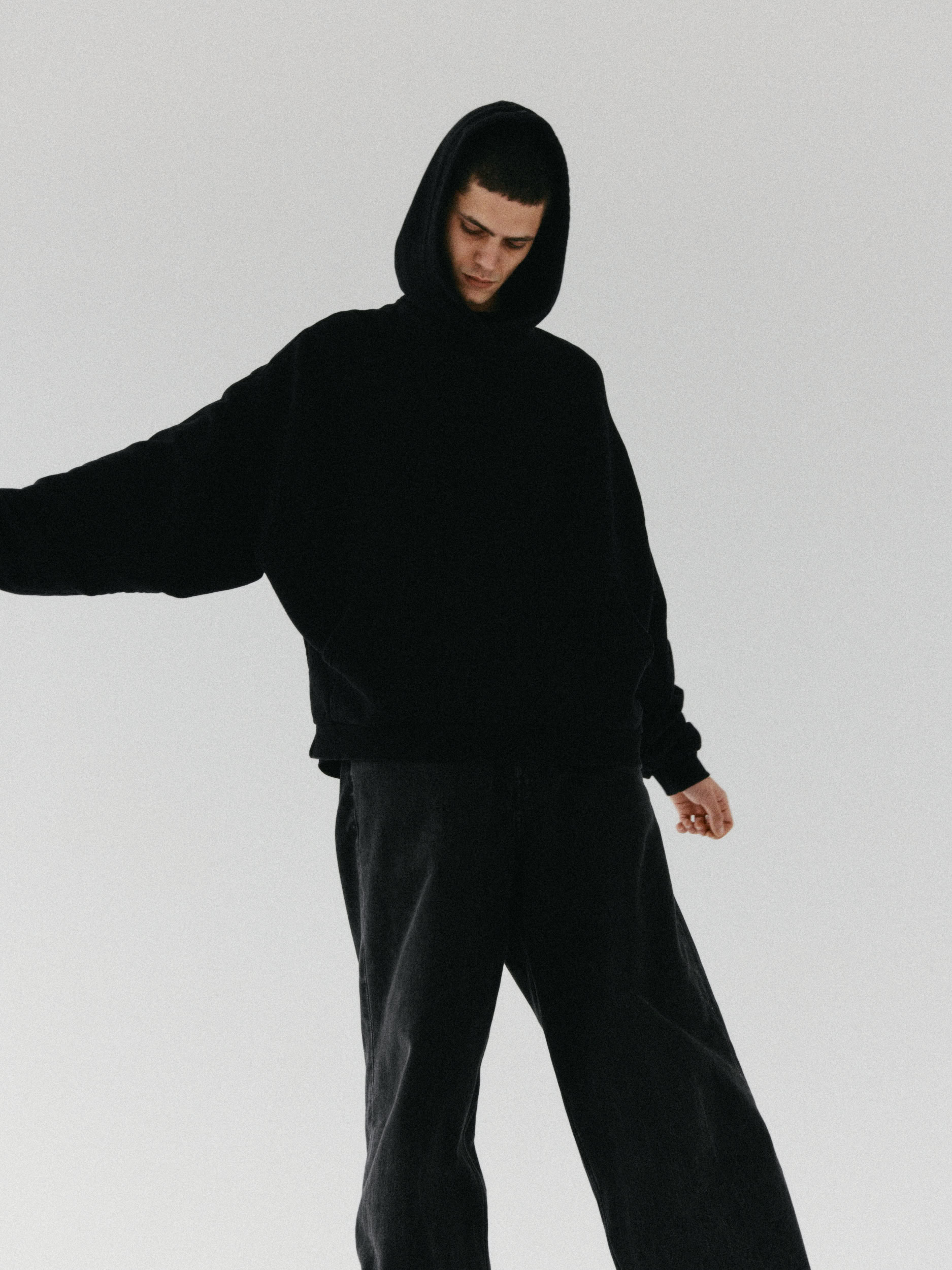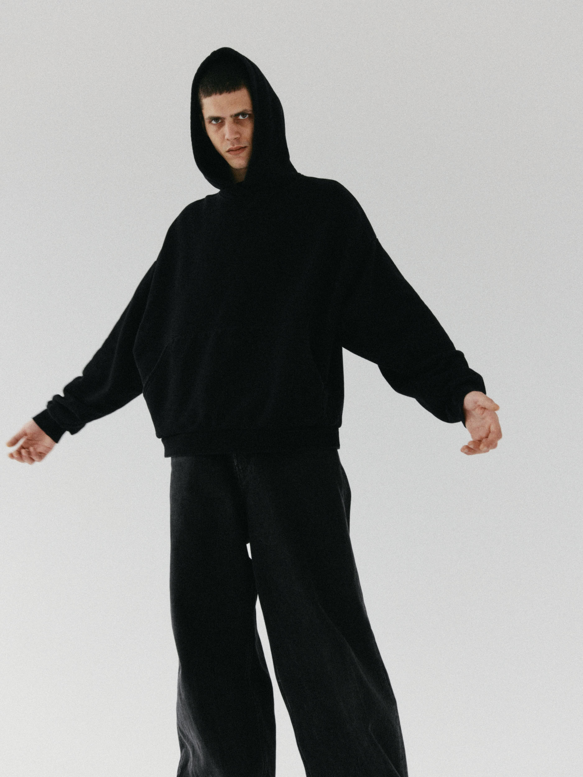 Oversize’owa bluza z kapturem o dłuższym kroju. Zaczepnie przydługie rękawy i obniżona linia ramion dopełniają całości. Długość bluzy jest odpowiednia do jeansów, leginsów i spodni dresowych z wysokim stanem. Kieszeń kangurka jest funkcjonalnym i wygodnym urozmaiceniem, a także dodaje jej przytulnego charakteru. Razem ze spodniami dresowymi z wysokim stanem LE PUMP stanowią zestaw doskonały.