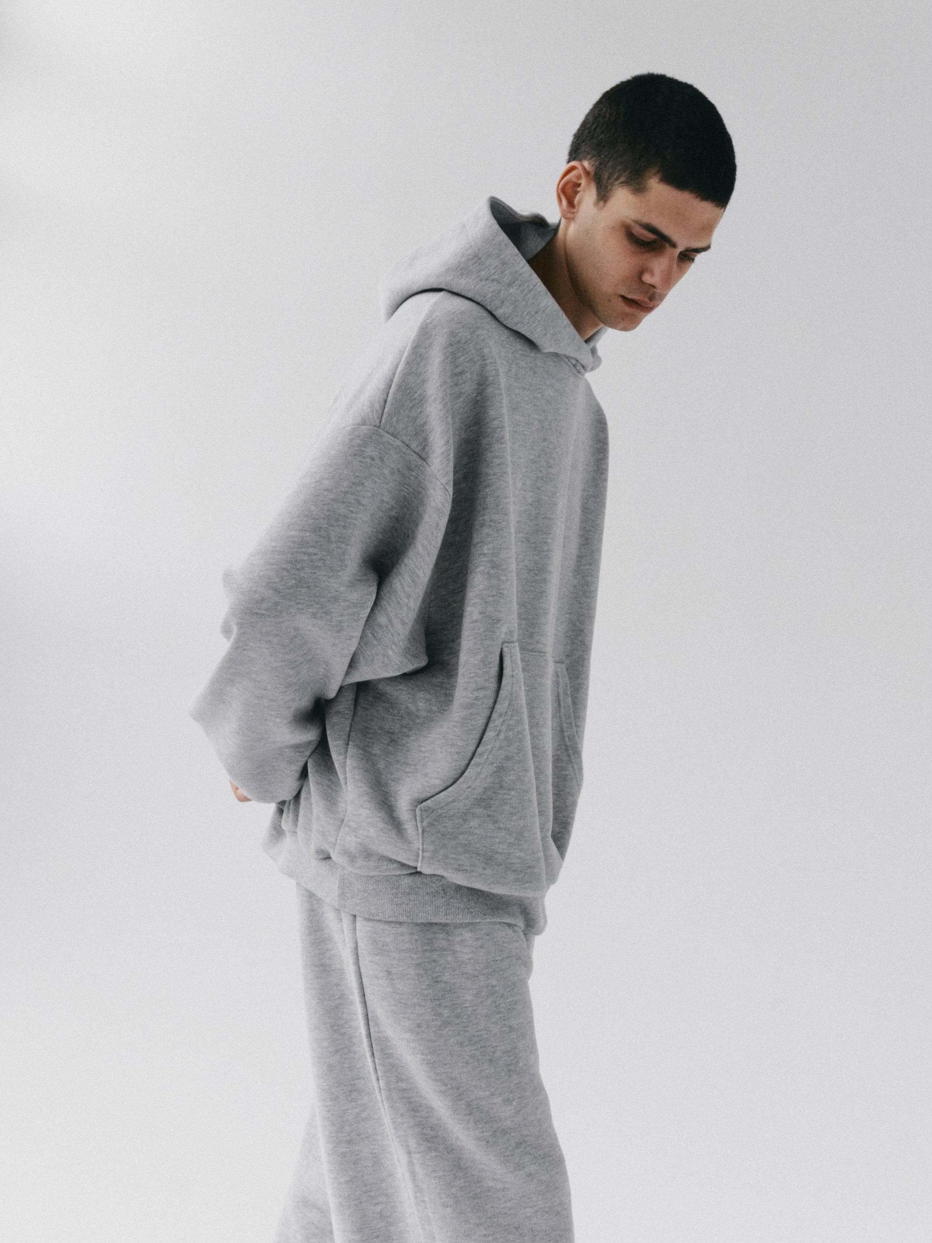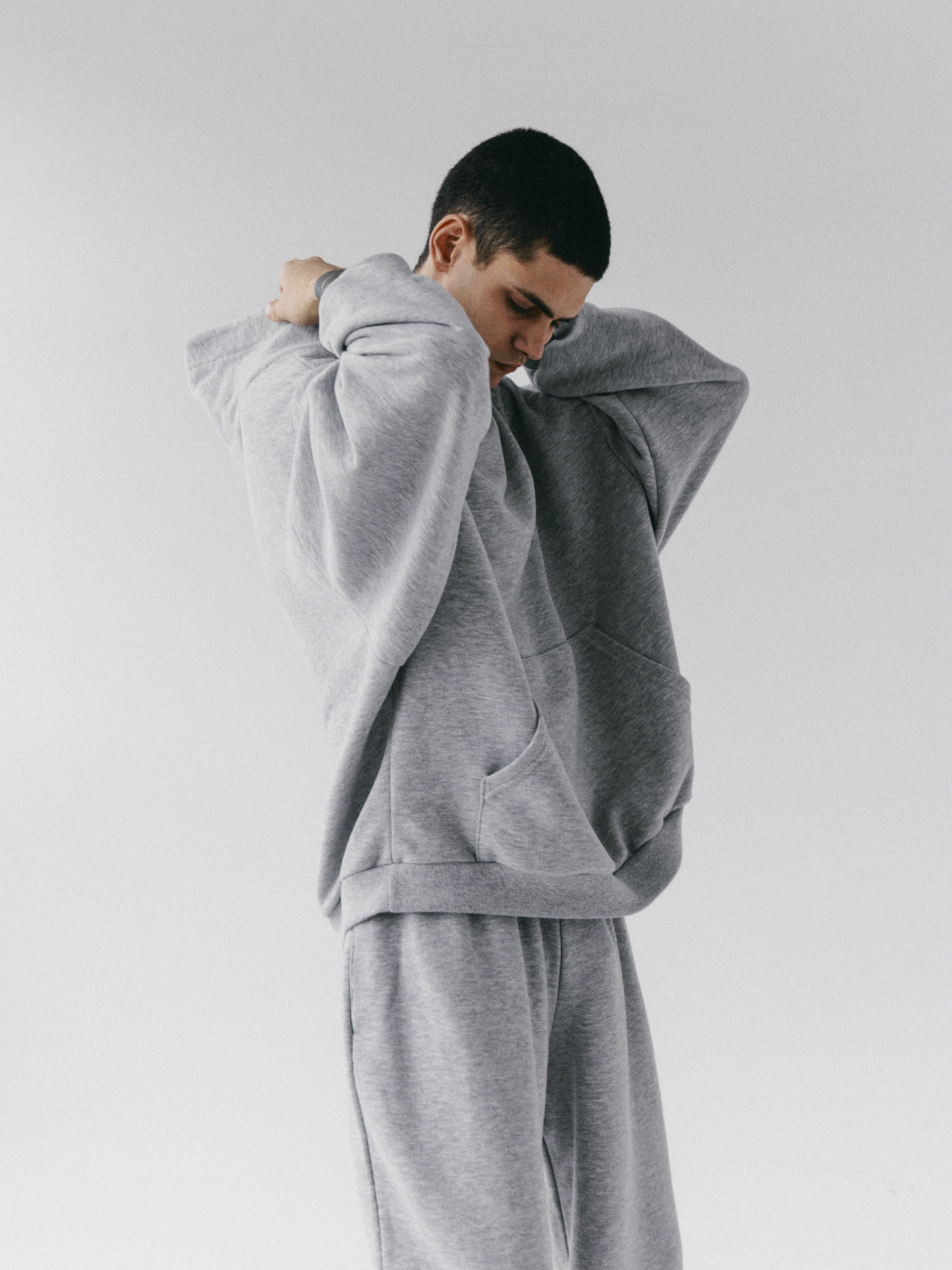 Oversize’owa bluza z kapturem o dłuższym kroju. Zaczepnie przydługie rękawy i obniżona linia ramion dopełniają całości. Długość bluzy jest odpowiednia do jeansów, leginsów i spodni dresowych z wysokim stanem. Kieszeń kangurka jest funkcjonalnym i wygodnym urozmaiceniem, a także dodaje jej przytulnego charakteru. Razem ze spodniami dresowymi z wysokim stanem LE PUMP stanowią zestaw doskonały.