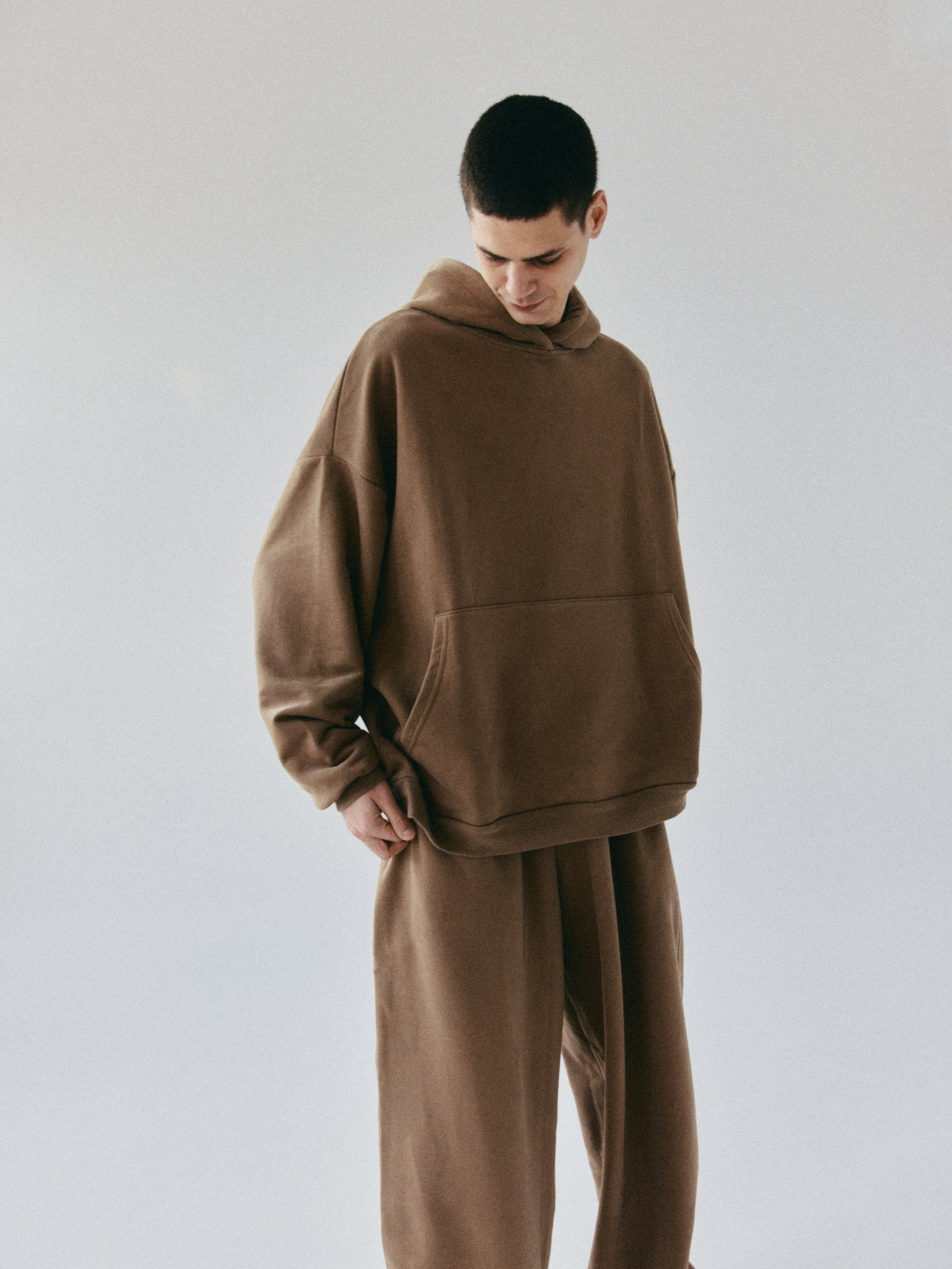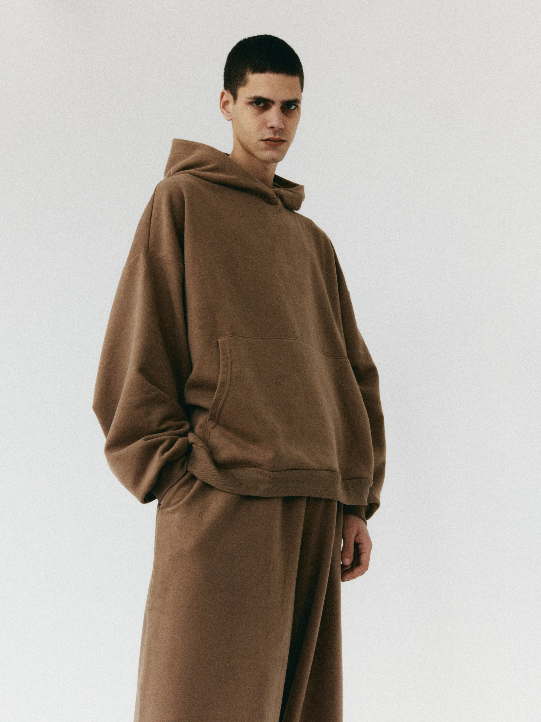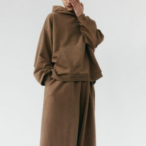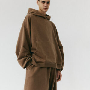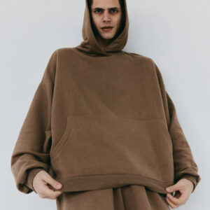 Oversize’owa bluza z kapturem o dłuższym kroju. Zaczepnie przydługie rękawy i obniżona linia ramion dopełniają całości. Długość bluzy jest odpowiednia do jeansów, leginsów i spodni dresowych z wysokim stanem. Kieszeń kangurka jest funkcjonalnym i wygodnym urozmaiceniem, a także dodaje jej przytulnego charakteru. Razem ze spodniami dresowymi z wysokim stanem LE PUMP stanowią zestaw doskonały.