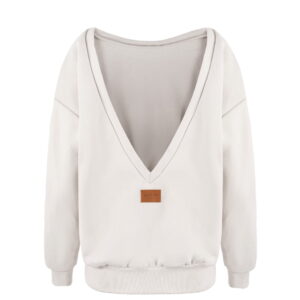 Dół bluzy, rękawy i dekolt wykończone są ściągaczem typu ribb w kolorze materiału. Długość bluzy jest delikatnie krótsza niż w standardowych sportowych bluzach po to, by ładnie zatrzymywała się na linii bioder i przez to estetycznie wyglądała zarówno do spodni dresowych, leginsów jak i wysokich jeansów. Model wykończony jest beżową wszywką z eko skóry na karku. Idealnie sprawdza się do zestawów casualowych i na sali treningowej.