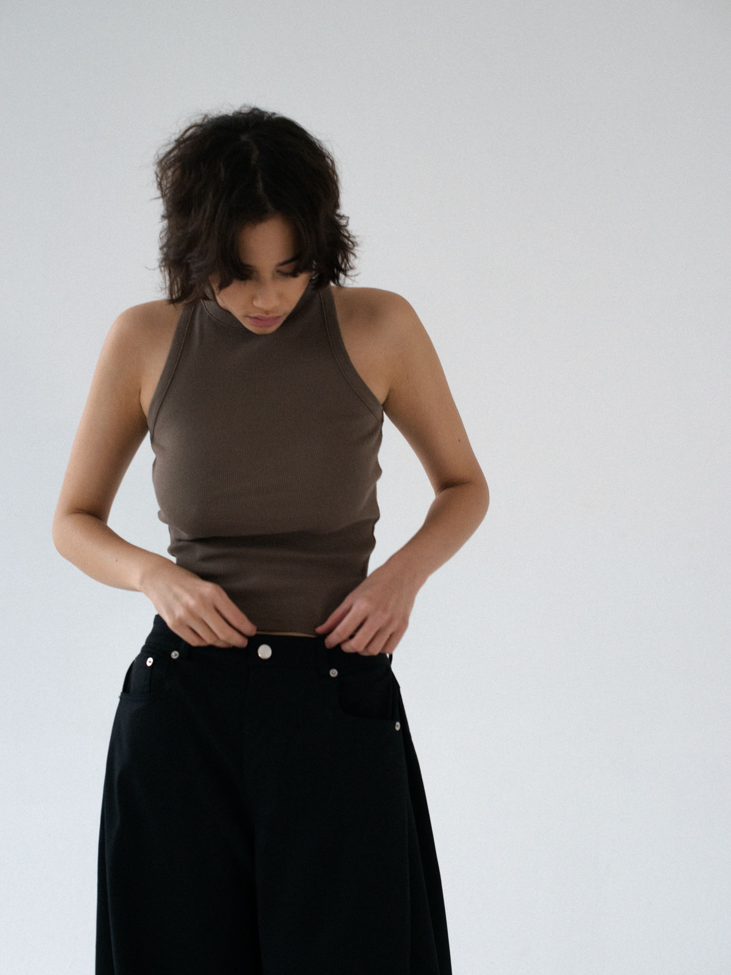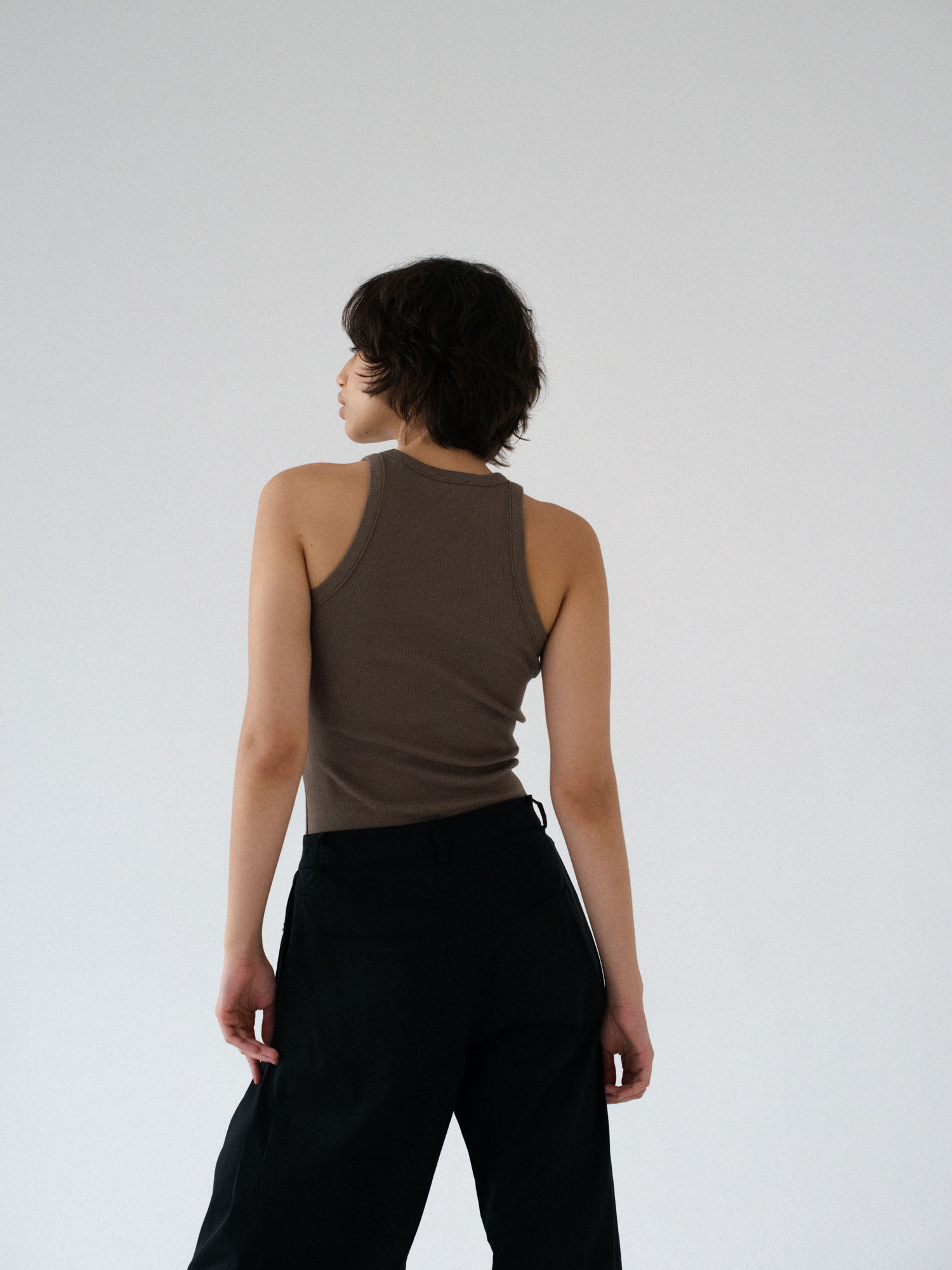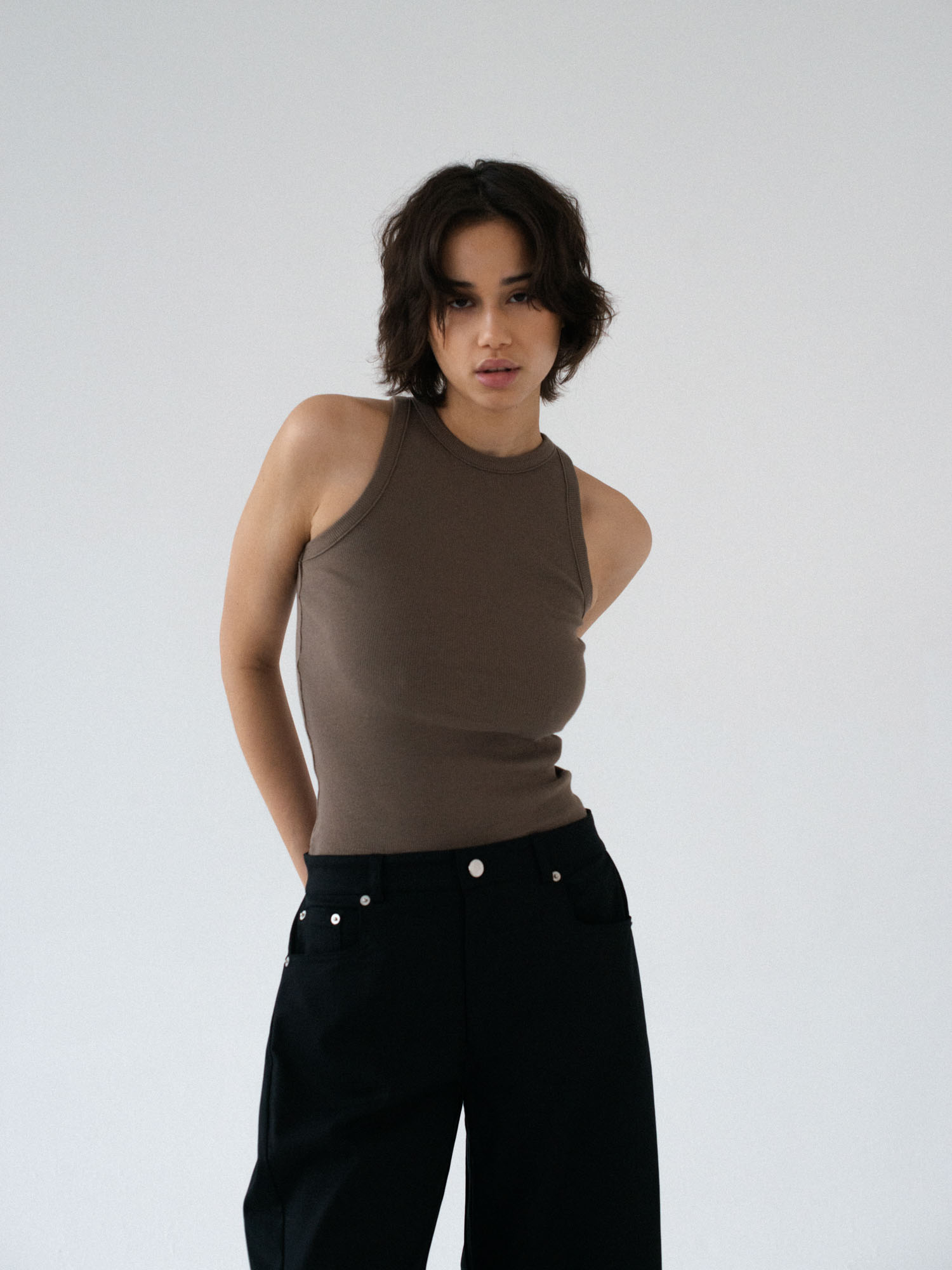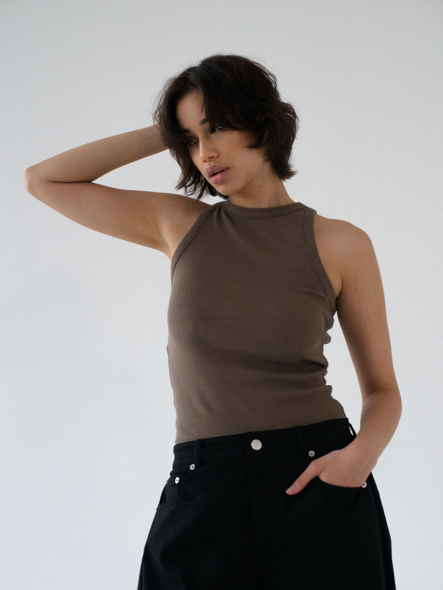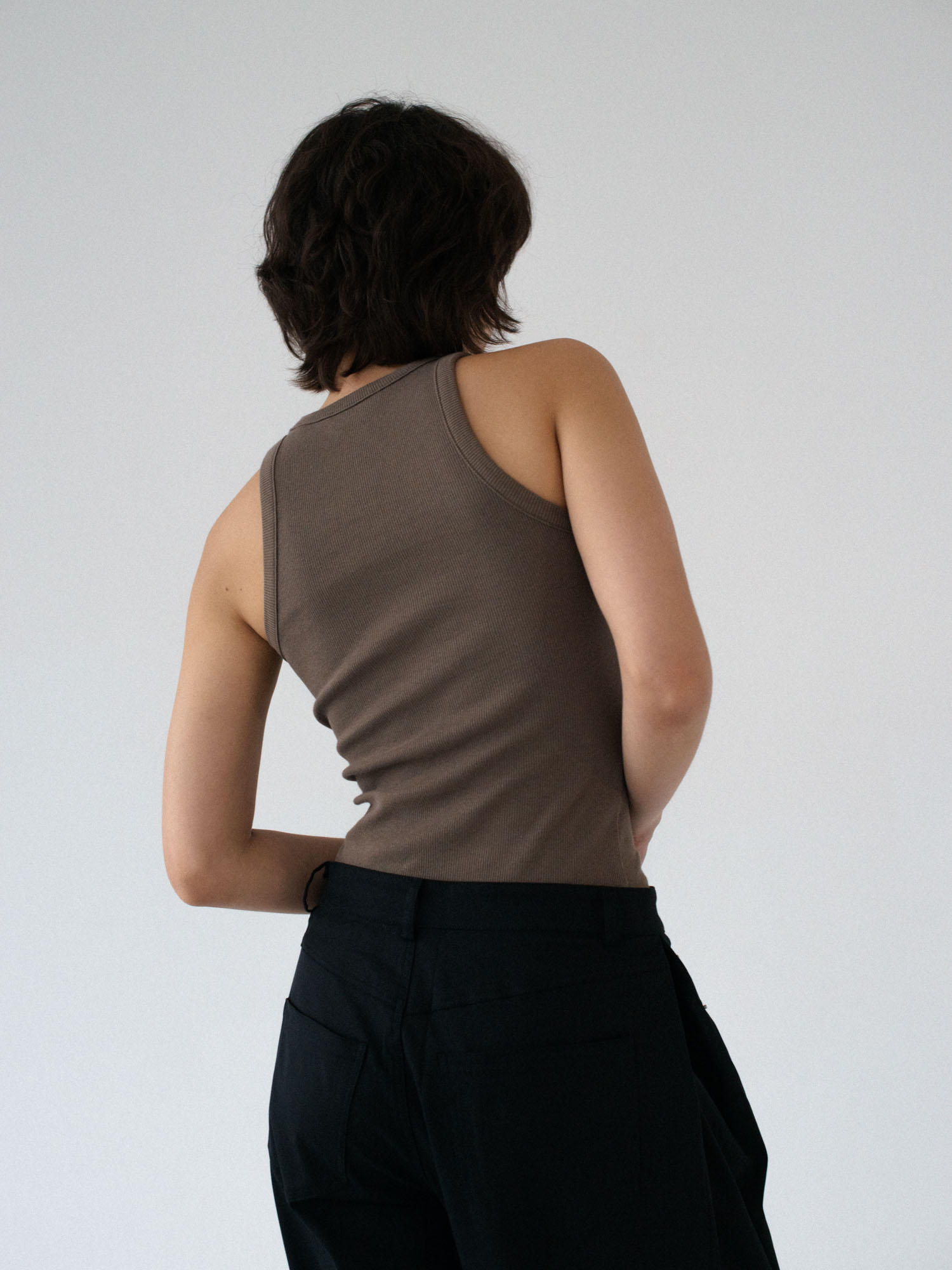 Klasyczny tanktop uszyty z bawełnianego dżerseju w prążki. Prosty krój idealnie dopasowuje się do sylwetki. Świetnie sprawdzi się jako baza pod każdą stylizacje. Idealny basic o klasycznym kroju.