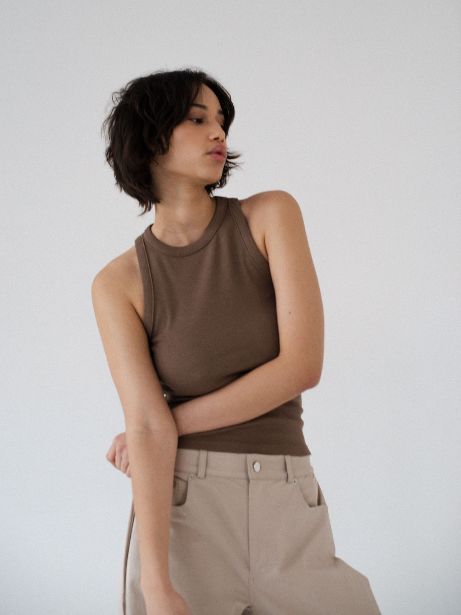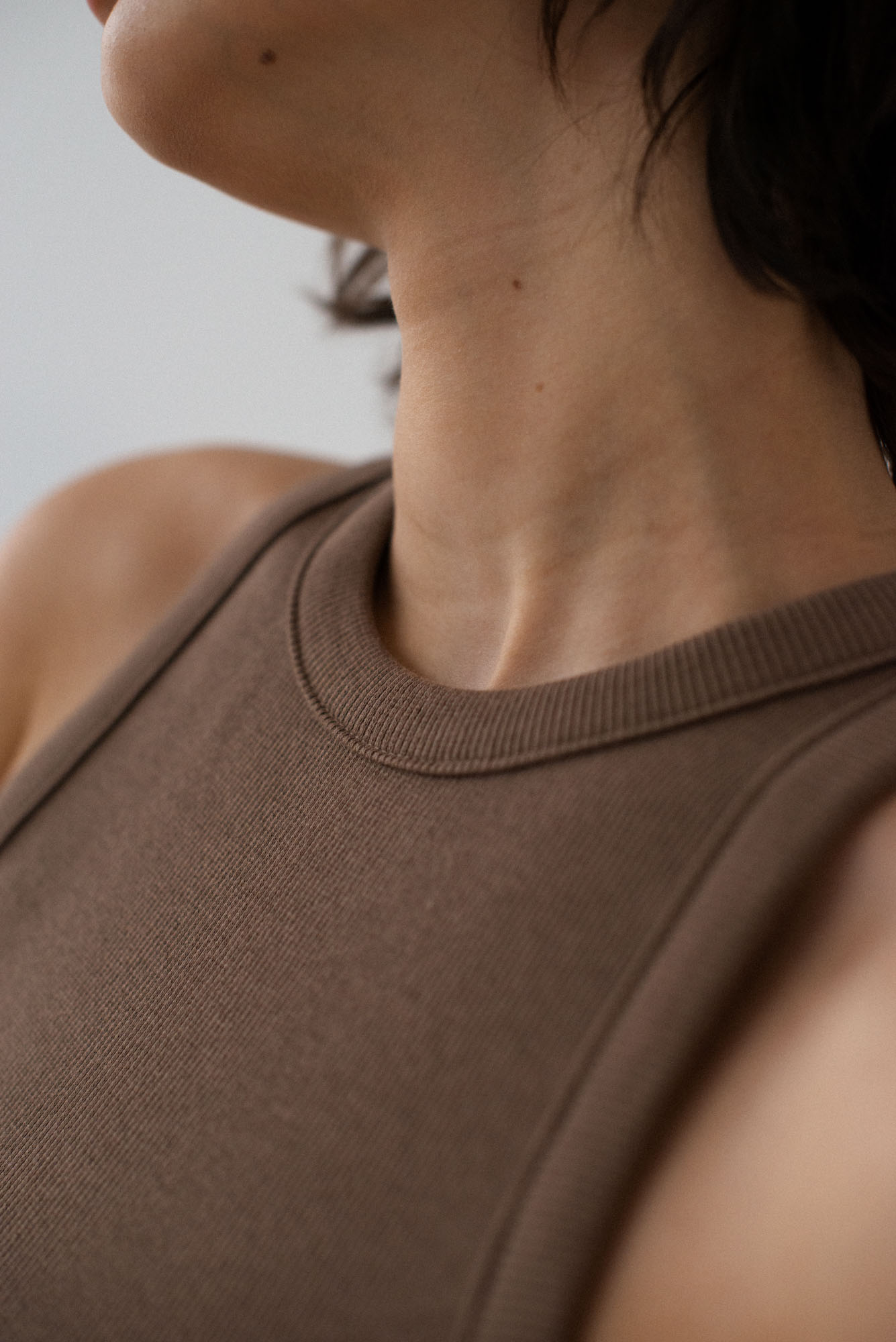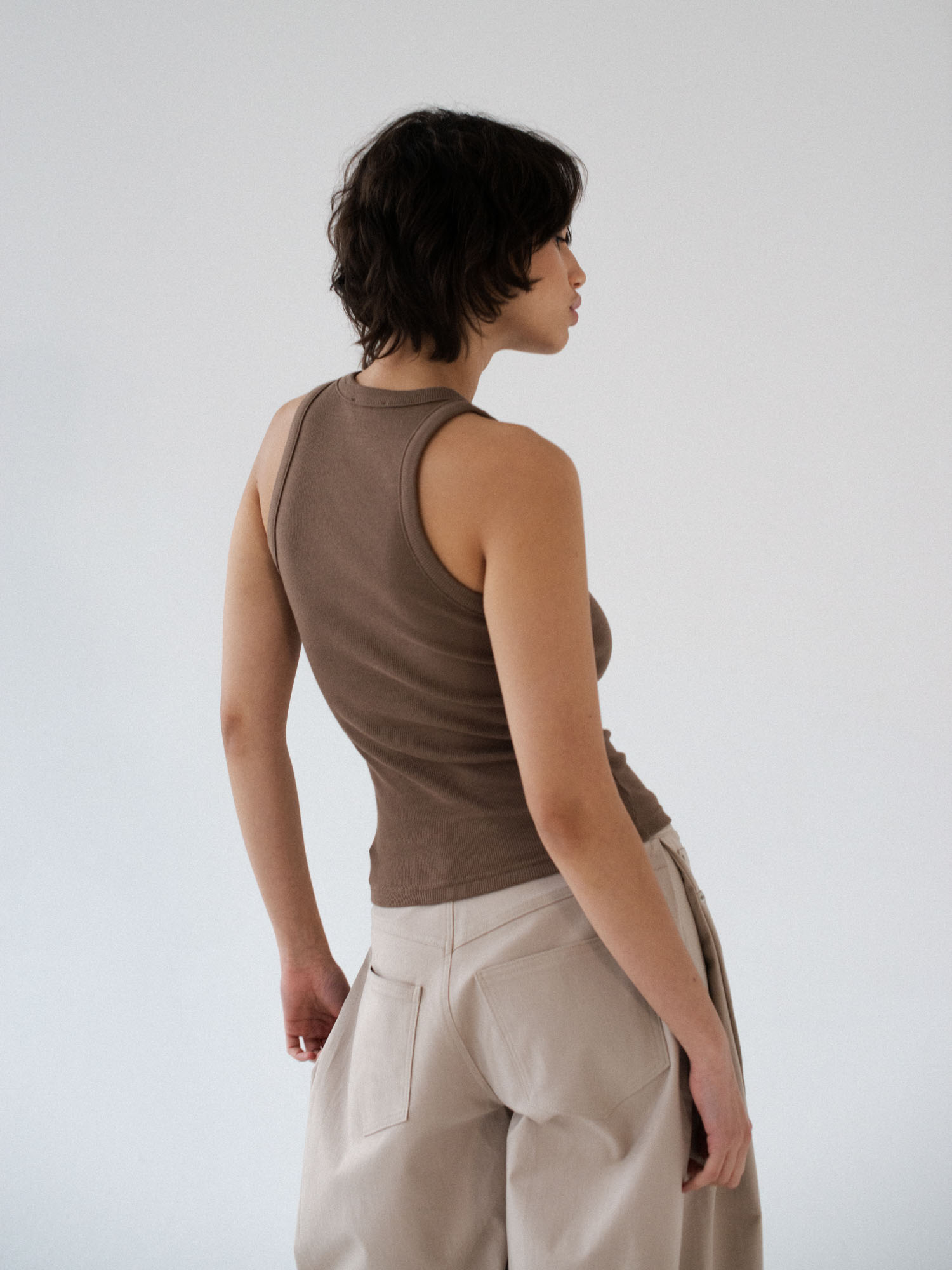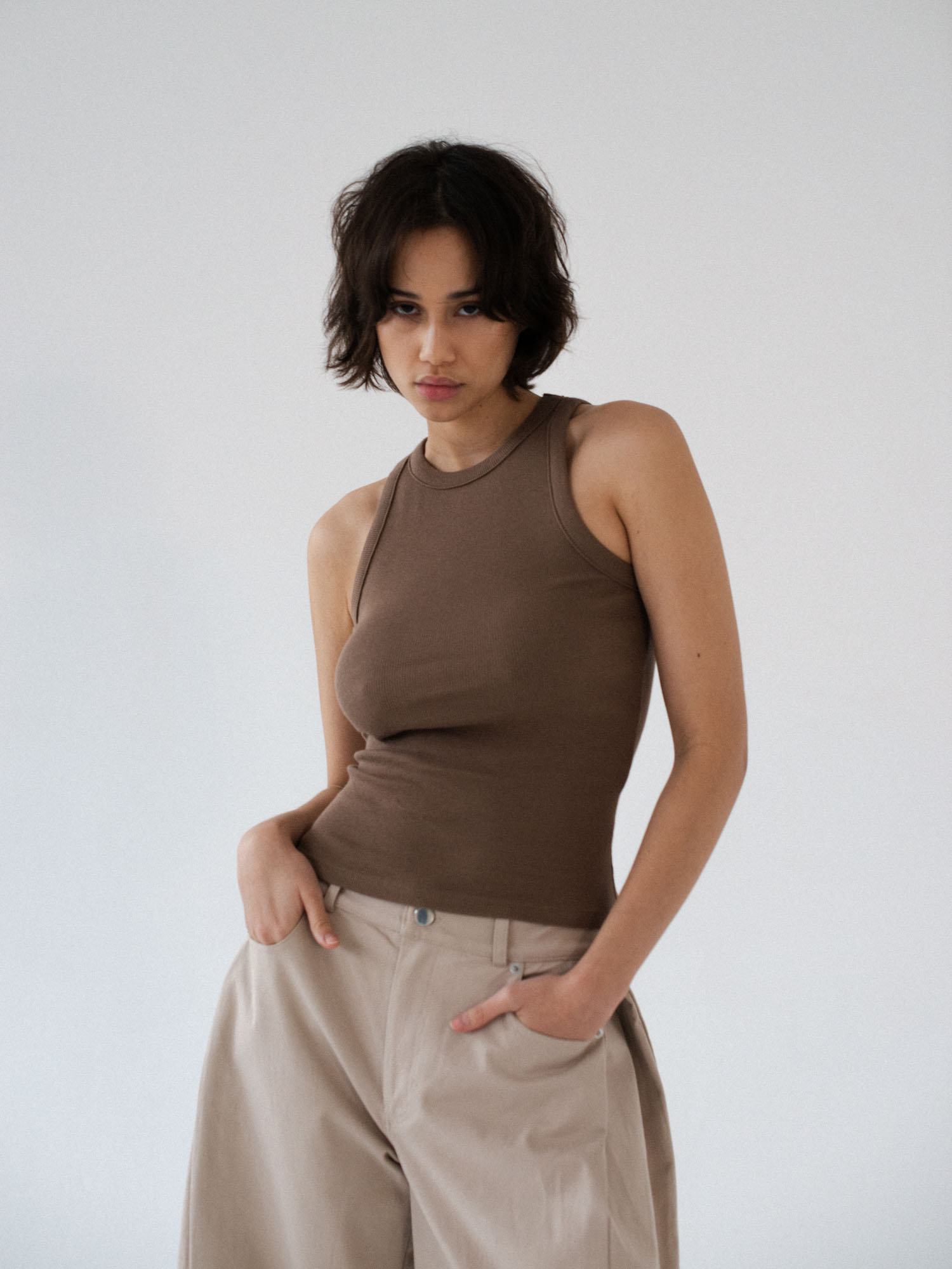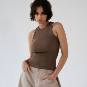 Klasyczny tanktop uszyty z bawełnianego dżerseju w prążki. Prosty krój idealnie dopasowuje się do sylwetki. Świetnie sprawdzi się jako baza pod każdą stylizacje. Idealny basic o klasycznym kroju.