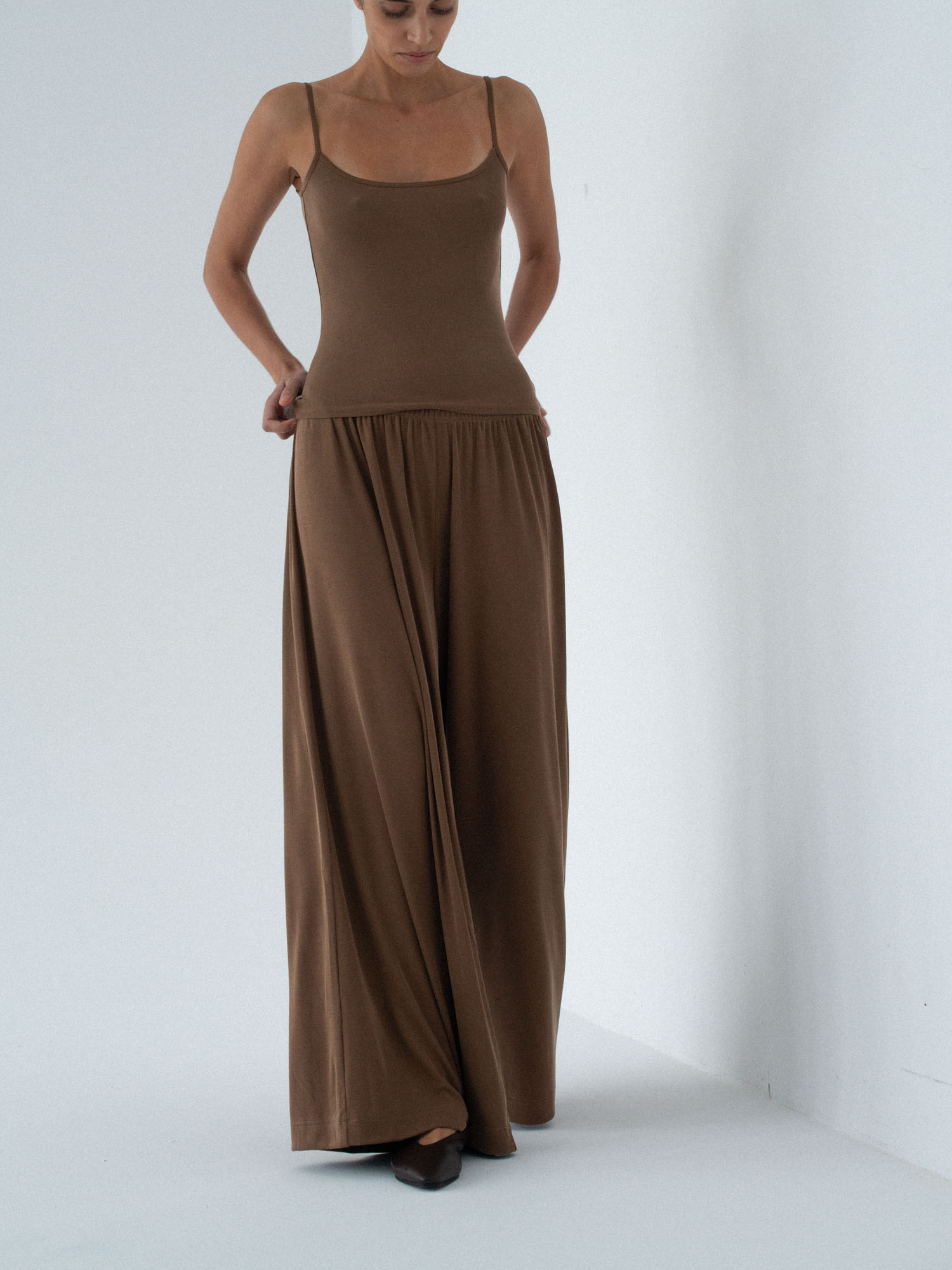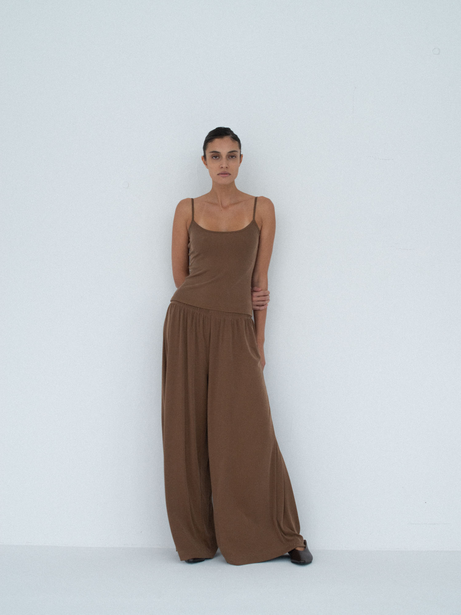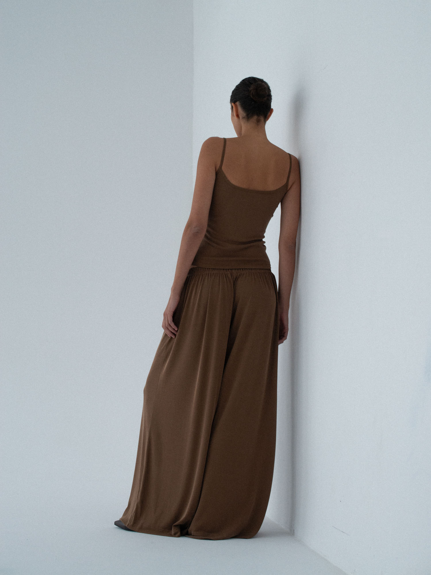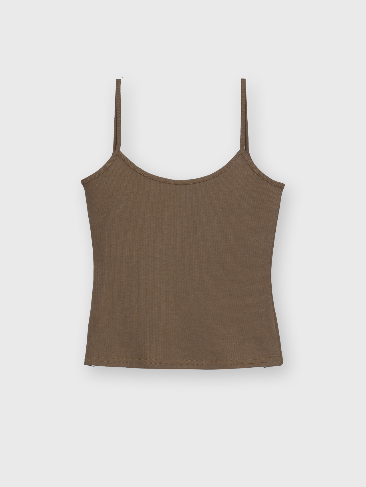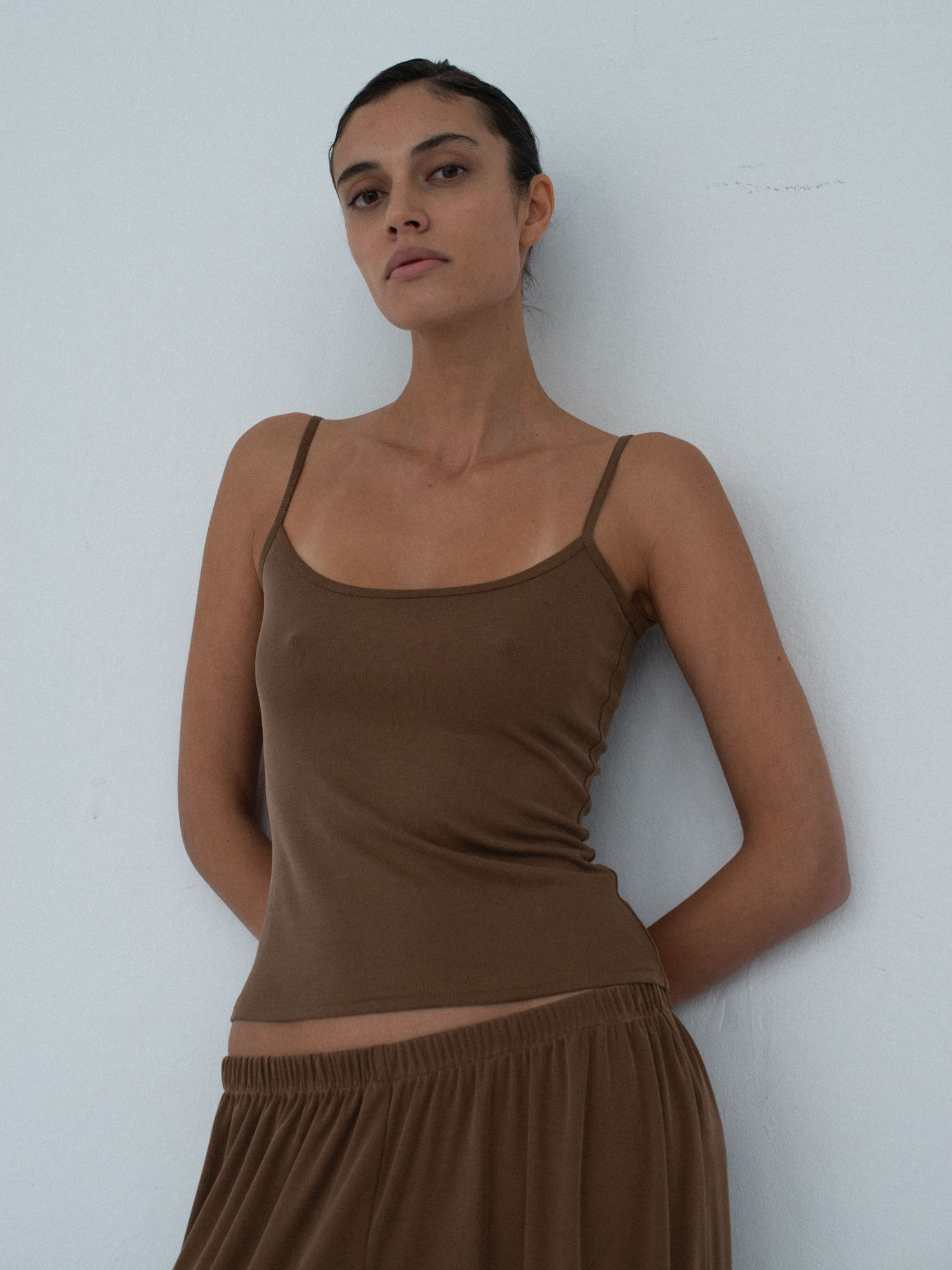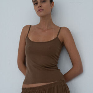 Minimalistyczna koszulka na cienkich ramiączkach o dopasowanym kroju. Wykonana z wyjątkowo miękkiej i elastycznej prążkowanej dzianiny, która zapewnia pełną swobodę ruchów. Idealny basic o klasycznym kroju z wyciętym dekoltem.