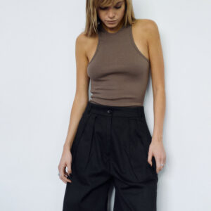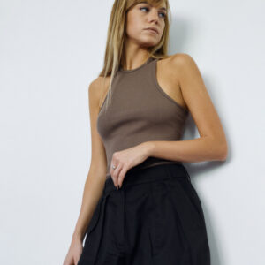 Dopasowana koszulka na ramiączkach typu bokserka. Po bokach zaczepne i mocne wycięcia. Prosty krój idealnie dopasowuje się do sylwetki i delikatnie podkreśla linię ramion. Zabudowany dekolt dopełnia całości. Można ją zestawić zarówno z jeansami jak i z dresami. Świetnie sprawdzi się jako baza pod marynarkę czy kardigan.