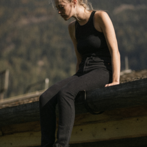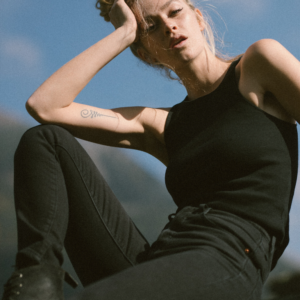 Dopasowana koszulka typu basic o nieoczywistym, odważnym kroju. Doskonale nadaje się zarówno do spodni dresowych jak i jeansów.