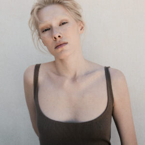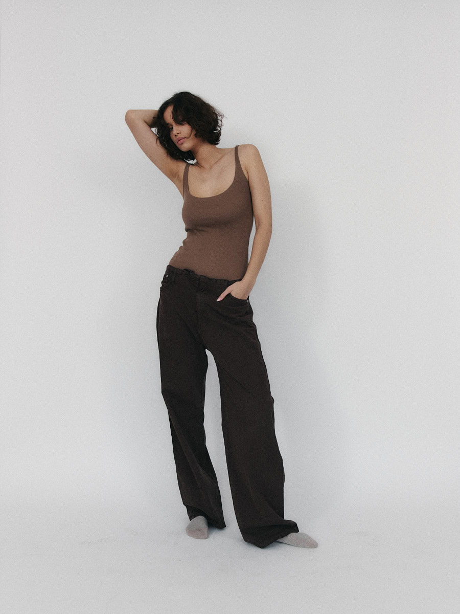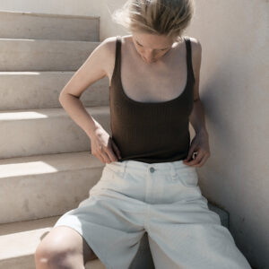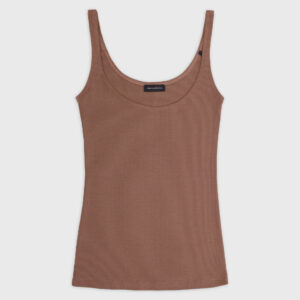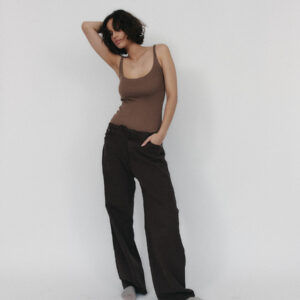 Dopasowana koszulka na cienkich ramiączkach. Idealny basic o klasycznym kroju, z głęboko wyciętym dekoltem w kształcie litery U podkreślający biust. Koszulka doskonale sprawdzi się zarówno do spodni dresowych jak i jeansów. Może być też noszona jako baza pod marynarkę czy kardigan.