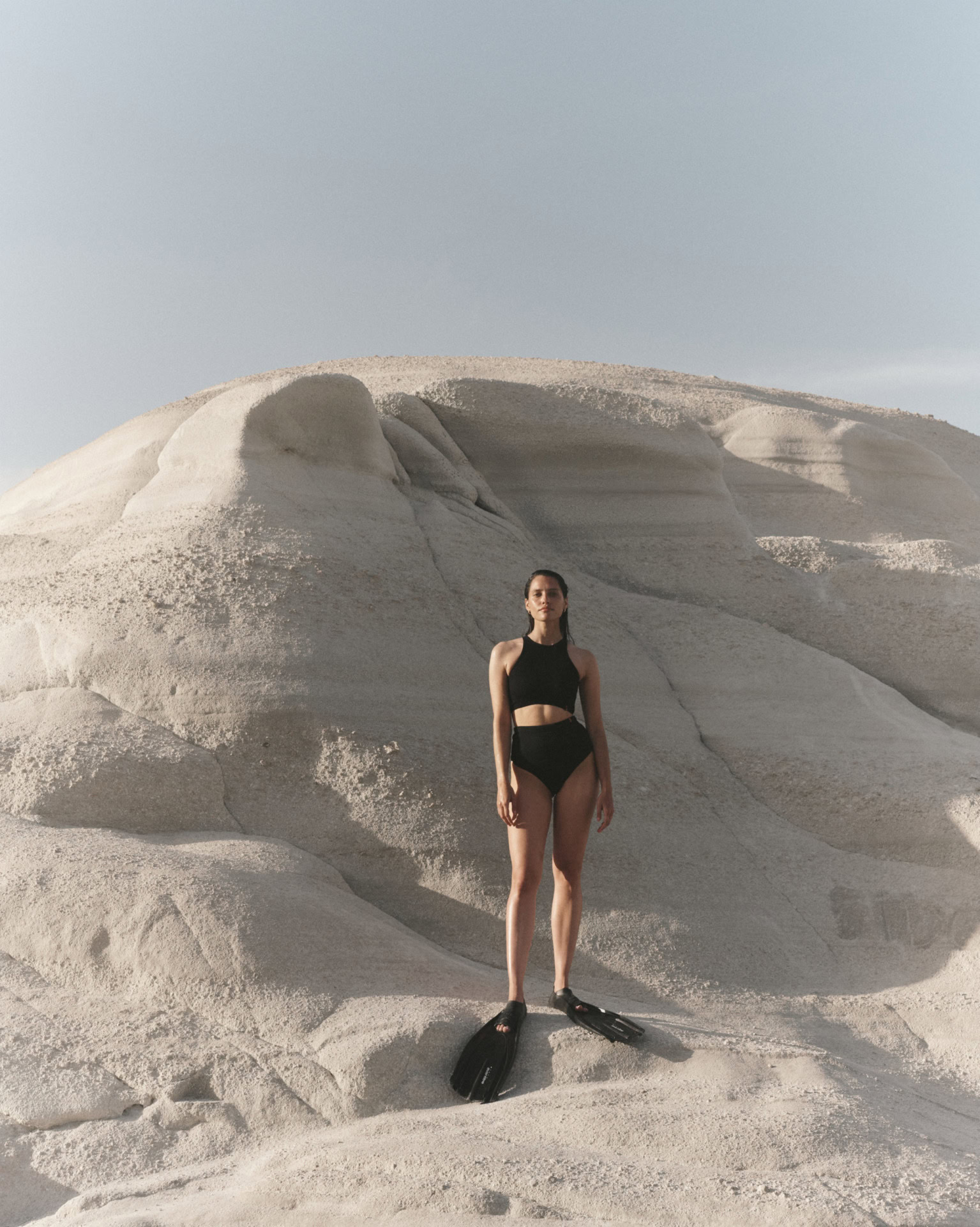 Krótki, dopasowany top typu basic. Zaczepne wycięcia po obu stronach pięknie eksponują ramiona. Wszyta gumka idealnie podtrzymuje biust i jednocześnie nie krępuje ruchów. Delikatna, prążkowana struktura dopełnia całości. Nieoczywisty, odważny krój zestawiamy ze spodniami dresowymi z wysokim stanem SMOOTH COTTON.