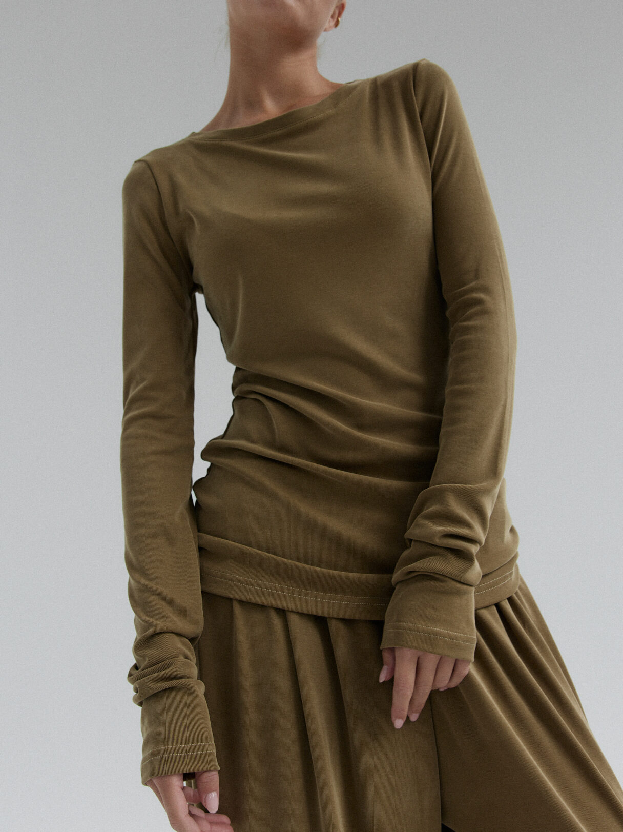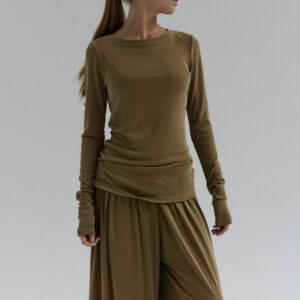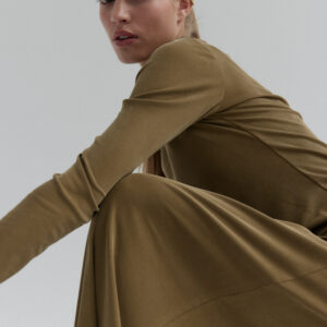 Minimalistyczny longsleeve o dopasowanym kroju. Uszyty z niezwykle miękkiej, elastycznej prążkowanej dzianiny co gwarantuje swobodę noszenia. Stanowi idealną bazę codziennych stylizacji. Najlepiej prezentuje się w secie z naszymi spodniami CIEO w tym samym odcieniu.