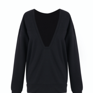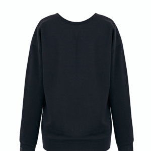 Longsleeve z kolekcji LCR/16 uszyta ręcznie z jakościowej bawełnianej dzianiny. Krój typu oversize zapewnia swobodę ruchów i poczucie komfortu. Ma bardzo głębokie, kobiece wycięcie w kształcie wąskiego trapezu. Longsleeve jest dwustronny – zaprojektowany w taki sposób, aby dekolt można było nosić z zarówno z przodu jak i z tyłu, dzięki czemu założona dzień po dniu wygląda jak zupełnie inny produkt. Na mankietach umieszczone są małe otwory na kciuki żeby zapewnić komfort w zimne dni. Jej długość jest odpowiednia do spodni dresowych, spodenek i jeansów: w naturalny sposób zatrzymuje się na biodrach, tworząc kształtną bryłę. Szwy nie przekręcają się po praniu, a z czasem nie robią się na niej kuleczki. Model wykończony jest czarną wszywką z eko skóry na mankiecie.