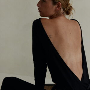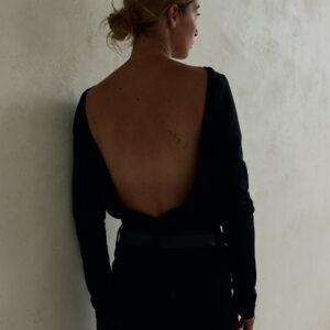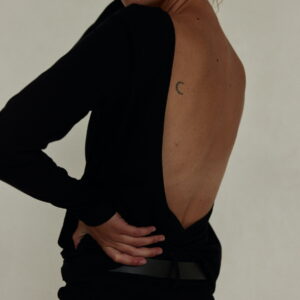 Lekko oversize’owy longsleeve, z głębokim wycięciem na plecach w kształcie litery V. Wygodny, minimalistyczny. Doskonały zarówno na co dzień jak i na wieczór. Długość longsleeve’u jest odpowiednia dla każdego rodzaju spodni, jeansów i leginsów. Najlepiej prezentuje się w monochromatycznych zestawach.