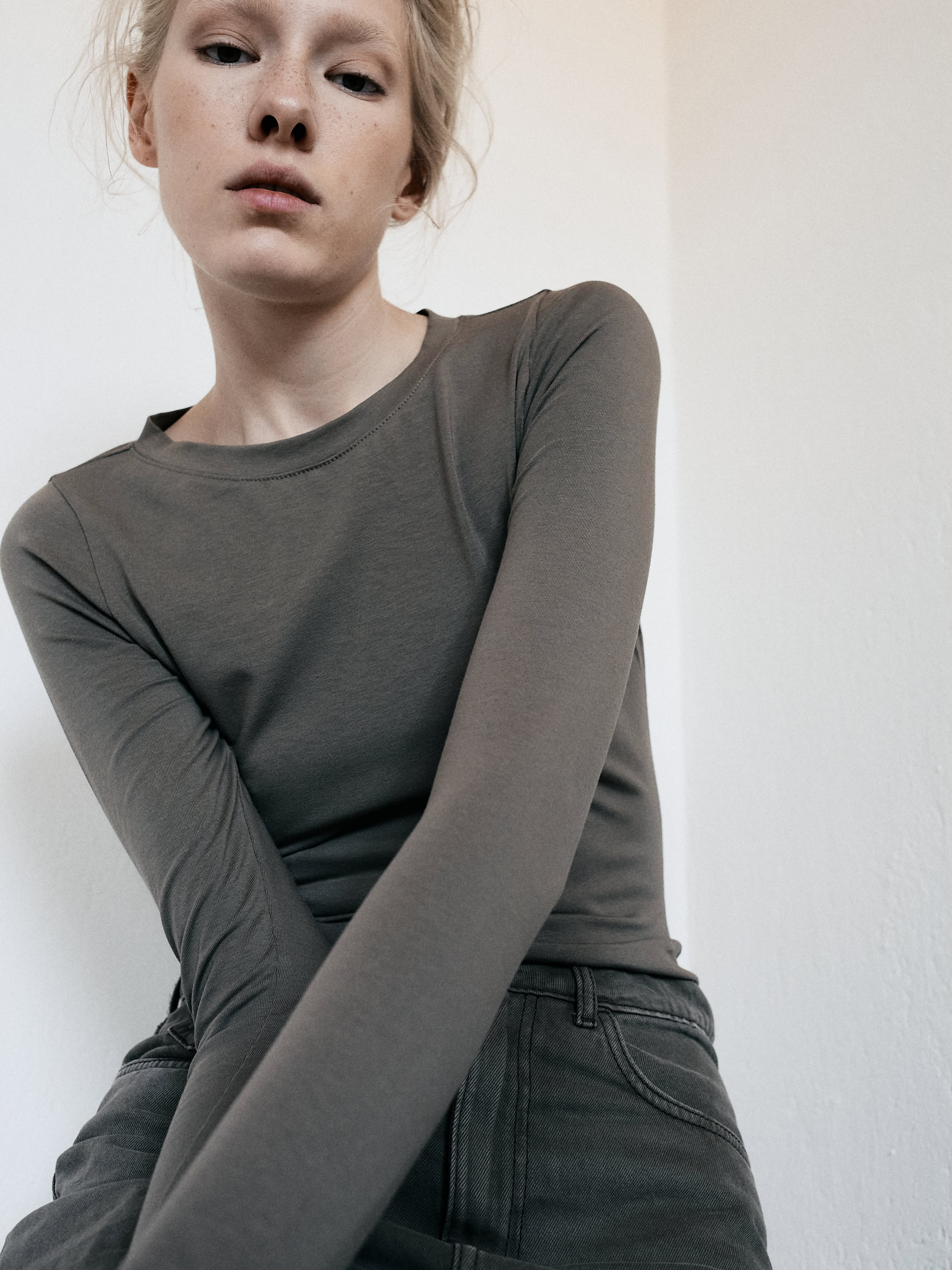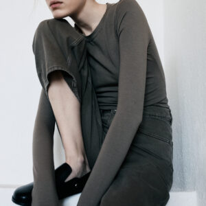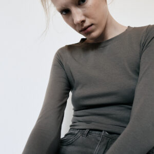 Lekko dopasowany longsleeve o klasycznym kroju. Wygodny, minimalistyczny, z zaczepnie przydługimi rękawami. Absolutna baza każdego zestawu. Model doskonały zarówno na co dzień jak i na wieczór. Długość longsleeve’u jest odpowiednia dla każdego rodzaju spodni, jeansów i leginsów. Najlepiej prezentuje się w monochromatycznych zestawach.