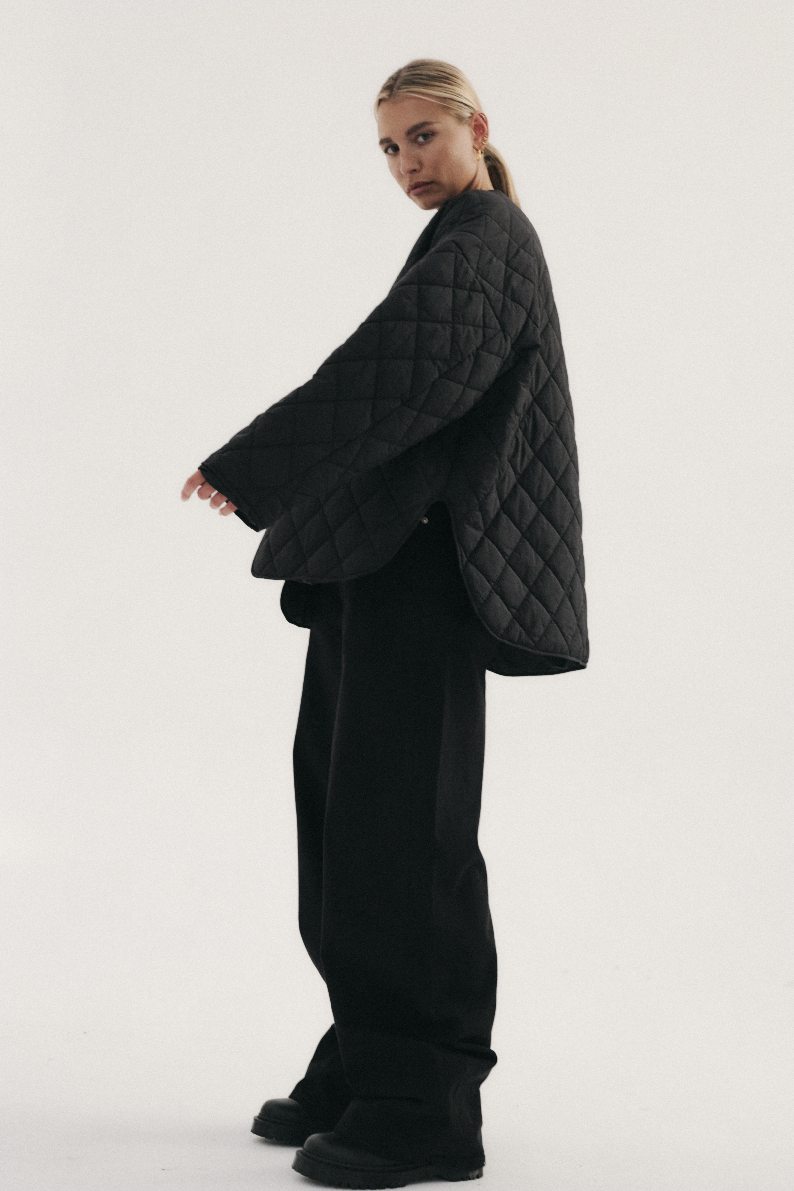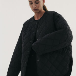 Pikowana, lekka kurtka o minimalistycznej formie. Oversize’owy, pudełkowy krój i obniżona linia ramion. Zapinana na zatrzaski w kolorze materiału z wytłoczonym logo. Wykończona pikowaniem w romby. Po bokach dwie funkcjonalne, wkładane kieszenie. Kurtka idealnie sprawdzi się jako dopełnienie lub baza każdej stylizacji. Sprawdzi się zarówno z masywnymi botkami, kowbojkami jak i ze sportowym obuwiem.